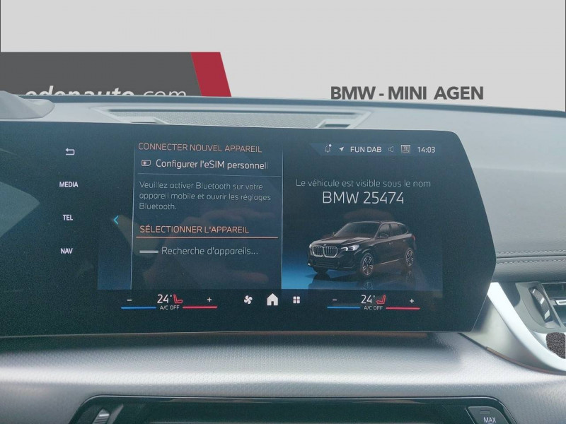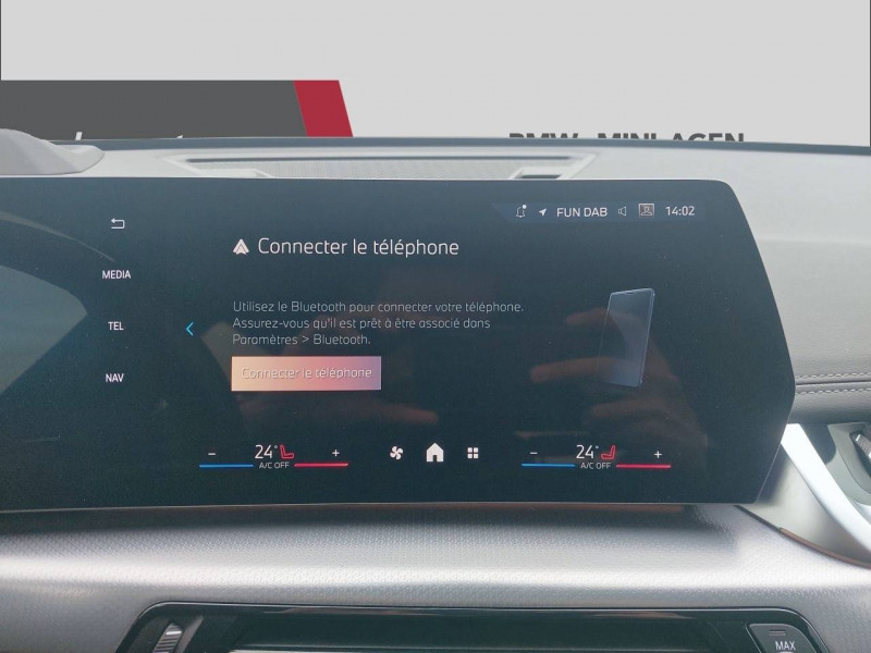 2 porte-gobelets sur la console centrale / 3ème feu stop LED intégré au spoiler AR / 5 places / Accoudoir central AV avec panneau de commande intégré / Active Guard Avertissement de franchissement de ligne avec impulsion sur la direction (>70km/h).Avertisseur de collision frontale avec intervention de freinage (3-210km/h).Avertisseur de présence d'un véhicule lors d'un changement de direction vers la gauche avec action sur les freins (3-35km/h).Avertisseur d'intersection (détection risque collision latérale 3-85km/h).Avertisseur présence piéton/cycliste lors d'un virage en intersection (3-35km/h).Assistance de limitation de vitesse. / Airbag entre les deux sièges AV en cas de collision latérale / Airbag passager AV désactivable via la clé / Airbags de tête à l'AV et aux places latérales AR / Alarme antivol / Appel d'Urgence Intelligent (durée de vie de la voiture) / Assistant dynamique de motricité (DTC) / BMW Digital (BMW Maps, RTTI sur itinéraire, Apple CarPlay, Android Auto, BMW Intelligent Personal Assistant) / BMW EfficientDynamics Système de récupération de l'énergie au freinage, Fonction d'arrêt et de redémarrage automatique du moteur, Direction à assistance électrique Servotronic (assistance variable selon la vitesse) / BMW Live Cockpit Navigation Plus avec Ecran Widescreen / BMW Live Cockpit Plus / Boîte de vitesses automatique 7 rapports avec palettes au volant / Buse de lave-glace pour caméra de recul / Câble de recharge Professionnel Mode 3 (T2-T2) pour la recharge publique - 5 mètres Câble de recharge Professionnel de Mode 3 triphasé avec prises Type 2 - Type 2 destinéà la recharge sur bornes publiques ou privées. Peut être utilisé sur une borne de recharge raccordée en courant monophasé ou triphasé avec des puissances de charge maximales : 7,4 kW / 32 A (en monophasé) et de 22 kW / 32 A (en triphasé). Rangement dans le coffret à câbles sous le cache du compartiment à bagages. Couleur Gris basalte. / Capteur d'impact (Activation de l'airbag, des feux de détresse, de l'éclairage intérieur, Déverrouillage des portes, Activation de la borne batterie de sécurité) / Carte SIM 4G LTE pour les Services ConnectedDrive / Ceintures de sécurité 3 points pour toutes les places / Chargeur courant alternatif AC Plus 11kW / Ciel de pavillon M Anthracite / Clés radiocommandées à mémorisation automatique des réglages "Personal Profile" (x 2) / Clignotants LED intégrés aux feux de jour / Climatisation automatique 2 zones Contrôle de la température et du volume d'air distribué avec 5 niveaux d'intensité, réglables séparément entre le conducteur et le passager. Fonctionnalité SYNC pour que les réglages du conducteur s'appliquent à l'ensemble de l'habitacle. Contrôle commun de la température à l'AR. Capteur d'humidité et d'ensoleillement, filtre à charbon actif et microfiltre. / Commande électrique du hayon de coffre / Compartiment à bagages : 2 crochets de sac, filet sur panneau garuche, prise 12V, rangement additionel au modèle) sous plancher amovible / Compatible Plug&Charge sur certaines bornes publiques / Console centrale avec insert noir brillant / Contour de vitres noir mat / Contrôle de freinage en courbe CBC / Contrôle dynamique du freinage (DBC) / Désignation du modèle à droite du hayon / Détecteur de pluie et allumage automatique des projecteurs / Double VANOS (système de distribution variable) / Eclairage de bienvenue autour du véhicule / Eclairage de plaque d'immatriculation à LED / Eléments extérieurs M Sport / Eléments intérieur M / Equipements supplémentaires Pack M Sport / Feux AR à LED intégrant les clignotants / Feux de sortie de porte AV (porte ouverte) / Fixations ISOFIX / i-Size pour les deux sièges AR extérieurs / Fonction cargo : Réglage de l'inclinaison de la banquette AR à 12 degrés (volume de chargement supplémentaire d' environ 85-100 litres) / Fonctionnalité "Follow Me Home" (éclairage d'accompagnement) : les feux de croisement restent allumés quelques instants une fois le contact coupé / Fonction Start&Stop automatique / Freinage de séchage / Frein de parking électromécanique avec fonction "Automatic Hold" / Grilles de calandre cerclées de chrome avec barreaux verticaux noirs / HotSpot Wi-Fi / Injection haute pression / Inserts décoratifs Aluminium M Hexacube / Jantes en alliage léger 18" style 838 M Gris foncé. Bicolore 7.5 J x 18 pneus 225/55 R 18. Montage chaînes à neige impossible. / Kit de mobilité Plus - Bouteille avec liquide anti-crevaison - Compresseur avec alimentation autonome via batterie rechargeable - Système se fixant au centre de la jante avec maintient de pression automatique du pneu crevé durant la conduite - Simple d'utilisation et réduction du temps passé sur le lieu de la panne / Kit éclairage / Kit rangement / Lève-vitres AV/AR électriques avec commande par impulsion et sécurité enfants / Mesure individuelle de pression des pneumatiques / Moteur TwinPower Turbo essence 3 cylindres - Turbocompresseur - Valvetronic (modification de la profondeur d'ouverture des soupapes d'admission) - Double VANOS (système de distribution variable) - Injection haute pression - Filtre à particules / My Modes: 5 modes de conduite (Personnel, Efficient, Sport, Relax, Expressive) / Norme General Safety Regulation 2 (GSR2) / Notice d'utilisation de la voiture intégrée et carnet d'entretien électronique avec BMW Service History / Ordinateur de bord avec Check-Control et indicateur de température extérieure / Pare-choc AR avec inserts chromés en L / Pare-choc AV avec air curtains en noir mat / Parking Assistant Comprend l'option Caméra de recul. Manoeuvres de stationnemment en créneau et en bataille facilitées par mesure automatique, Assistant de marche AR/Auto-reverse / Performance control : contrôle du moteur et interventions freinage pour améliorer l'agilité et la neutralité en virage / Personal eSIM Personal eSIM est la version