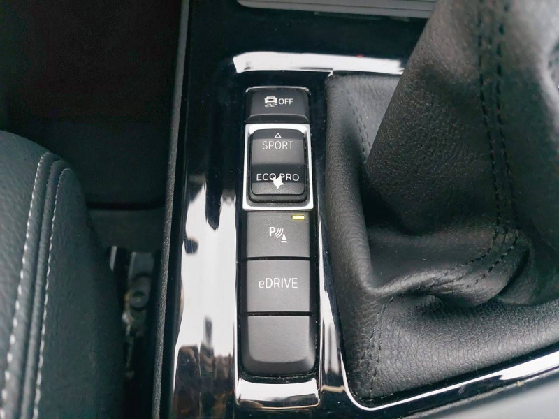 3ème feu stop / 6 haut-parleurs dont 2 caissons de basse sous les sièges avant, amplification 4 x 25w / Accès Confort (ouverture et fermeture sans clé) / Accoudoir central AV réglable sur 5 positions avec compartiment de rangement / Airbags de tête AV et AR avec voile de protection contre les débris de verre / Aluminium Line satiné / Antenne aileron de requin / Antibrouillard LED (3 LEDs horizontales) / Appui lombaire ajustable électriquement pour sièges AV / Attention Assist: Signale la perte de vigilance du conducteur / Autoradio BMW Professional avec écran couleur 6,5", 8 touches de favoris programmables et "Controller" iDrive avec touches de raccourci, compatibilité MP3, double Tuner RDS FM, info-route (TP), 6 HP dont 2 caissons de basse sous les sièges, amplification 4 x 25w / Avertisseur de risque de collision / Avertisseur sonore pour piétons / Batterie lithium-ion haute performance (10 kWh) / Boîte à gants verrouillable éclairée / Boîte de vitesses automatique à 6 rapports / Buses de lave-glace chauffantes / Câble de recharge T2-T2 (1 phase - 5 mètres) / Ceintures de sécuritéà 3 points d'ancrage à toutes les places avec limiteur d'effort / Clé radiocommandée à mémorisation automatique des réglages "Personal Profil" / Commande électrique du hayon / Construction allégée intelligente BMW Efficient Dynamics / Contrôle de la transmission / Contrôle Dynamique de Stabilité DSC+ avec fonctionnalités étendues (y compris assistant de démarrage en côte) / Crochets de fixation pour cintre (2 à l'AR) / Designation du modèle / Détecteur de pluie et allumage automatique des projecteurs / Déverrouillage électrique du hayon via la poignée ou la clé radiotélécommandée / Diffuseurs aérodynamiques AV "Air Curtain" / Direction à assistance électrique BMW Efficient Dynamics / Direction Servotronic à assistance variable en fonction de la vitesse / Eclairage de l'habitacle à l'AV, à l'AR et dans le coffre / Ecrous de roues antivol / Eléments extérieurs (poignées de portes) couleur carrosserie / Feux de stop dynamiques clignotants / Fonction d'arrêt et de redémarrage automatique du moteur BMW Efficient Dynamics / Fonction eDrive Connected (3 ans) / Indicateur de limitation de vitesse / Inserts décoratifs "Pearl" foncé soulignés de chrome perlé / Interface Bluetooth avec fonction streaming audio / Jantes en alliage léger 18" (46 cm) style 579 Bicolores à rayons en Y 7.5Jx18" avec pneus 225/50 R18 / Kit de rangement / Kit éclairage / Lève-vitres AV/AR électriques avec commande par impulsion et sécurité enfants / Ligne xLine / Limiteur et régulateur de vitesse avec maintien de la vitesse en descente / Mesure individuelle de pression des pneumatiques / Mode ECO PRO sur le sélecteur de mode de conduite BMW EfficientDynamics / Montant B en noir brillant / Motorisations BMW TwinPower Turbo: Essence : composé d'une suralimentation Twin Scroll, de l'injection directe d'essence High Precision Injection, de la levée variable des soupapes Valvetronic (brevetée par BMW) ainsi que de la commande variable des arbres à cames Double VANOS (BMW EfficientDynamics) / Navigation multimédia Business / Notice d'utilisation de la voiture intégrée et carnet d'entretien électronique avec BMW Service History / Ordinateur de bord, Check Control et indicateur de température extérieure / Pack SimpliCity / Park Assist / Port USB avec connectivité iPod et prise AUX IN / Projecteurs AV halogènes avec feux de jour à LED / Rails de toit Aluminium Line satiné / Respect de la norme EU6 BMW Efficient Dynamics / Rétroviseur intérieur électrochrome / Rétroviseurs extérieurs couleur carrosserie à réglages électriques et dégivrants, miroir asphérique côté conducteur, rappels de clignotants intégrés / Sellerie Tissu/Cuir Cross Track / Services Après-vente connectés BMW TeleServices / Seuils de porte avec inscription BMW / Sièges AV électriques à mémoires conducteur / Sortie d'échappement simple à gauche, ronde et chromée, diamètre de 90 mm / Système anti-collision à basse vitesse / Système de récuperation de l'énergie au freinage BMW Efficient Dynamics / Tapis de sol en velours / Touches multifonctions sur le volant / Triangle de présignalisation avec kit de premiers secours / Tuner DAB / Verrouillage automatique des portes dès 15km/h environ
