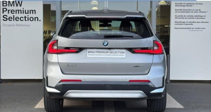 EQUIPEMENTS ================== - Accès Confort - Aides au stationnement Parking Assistant - Appel d'Urgence Intelligent - Avertisseur de risque de collision et système anti collision à basse vitesse - Avertisseur sonore pour piétons - BMW IconicSounds Electric - Câble BMW Flexible Charger 2.0 Mode 2 pour la recharge à domicile - Câble Professional Mode 3 (T2-T2) pour la recharge publique - Compte-tours - Dalle de recharge par induction pour smartphone - Ecrous antivol de roues - Equipements spécifiques UE - Exterieur Aluminium Line satiné - Feux de route anti-éblouissement - Finition xLine - Fixation i-Size ou Isofix à l'avant avec désactivation de l'airbag passager - Inserts décoratifs brillants Schwarz - Kit de mobilité - Mesure individuelle de pression de pneumatiques - Pack Premium - Planche de bord Sensatec - Projecteurs Advanced Full LED - Rétroviseur intérieur anti-éblouissement - Rétroviseurs rabattables et intérieur et extérieur gauche antiéblouissement - Sellerie Veganza perforé Schwarz - Service Inclusive - 4 ans - Services Apres-Vente connectes et ConnectedDrive - Services ConnectedDrive - Spacesilber métallisé - Suspension Adaptative M - Triangle de présignalisation et trousse de premiers secours - Tuner radio numerique DAB - Welcome Pack BMW (avec Carte BMW Charging)