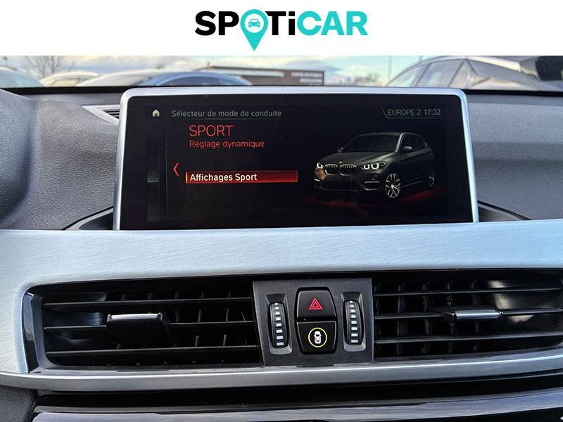 3ème feu stop / Accès Confort (ouverture et fermeture sans clé) / Accoudoir central AV réglable sur 5 positions avec compartiment de rangement / Airbags de tête AV et AR avec voile de protection contre les débris de verre / Aluminium Line satiné / Antenne aileron de requin / Appui lombaire ajustable électriquement pour sièges AV / Attention Assist: Signale la perte de vigilance du conducteur / Autoradio BMW Professional avec écran couleur 6,5", 8 touches de favoris programmables et "Controller" iDrive avec touches de raccourci, compatibilité MP3, double Tuner RDS FM, info-route (TP), 6 HP dont 2 caissons de basse sous les sièges, amplification 4 x 25w / Avertisseur de risque de collision / Boîte à gants verrouillable éclairée / Boîte automatique à 8 rapports / Buses de lave-glace chauffantes / Ceintures de sécuritéà 3 points d'ancrage à toutes les places avec limiteur d'effort / Clé radiocommandée à mémorisation automatique des réglages "Personal Profil" / Commande électrique du hayon / Construction allégée intelligente BMW Efficient Dynamics / Contrôle de la Transmission / Contrôle Dynamique de Stabilité DSC+ avec fonctionnalités étendues (y compris assistant de démarrage en côte) / Crochets de fixation pour cintre (2 à l'AR) / Designation du modèle / Détecteur de pluie et allumage automatique des projecteurs / Déverrouillage électrique du hayon via la poignée ou la clé radiotélécommandée / Diffuseurs aérodynamiques AV "Air Curtain" / Direction à assistance électrique BMW Efficient Dynamics / Direction Servotronic à assistance variable en fonction de la vitesse / Eclairage de l'habitacle à l'AV, à l'AR et dans le coffre / Eléments extérieurs (poignées de portes) couleur carrosserie / Feux de stop dynamiques clignotants / Fonction d'arrêt et de redémarrage automatique du moteur BMW Efficient Dynamics / Fonction "Ma BMW à distance" (à vie) / Fonction "roue libre" du mode ECO PRO BMW EfficientDynamics / Indicateur de changement de rapport BMW Efficient Dynamics / Indicateur de limitation de vitesse / Inserts décoratifs "Pearl" foncé soulignés de chrome perlé / Interface Bluetooth avec fonction streaming audio / Jantes en alliage léger 18" style 569 à rayons en Y 7.5Jx18" avec pneus 225/50 R18 / Kit de mobilité BMW / Kit de rangement / Kit éclairage / Lève-vitres AV/AR électriques avec commande par impulsion et sécurité enfants / Ligne xLine / Limiteur et régulateur de vitesse avec maintien de la vitesse en descente / Mesure individuelle de pression des pneumatiques / Mode ECO PRO sur le sélecteur de mode de conduite BMW EfficientDynamics / Montant B en noir brillant / Motorisations BMW TwinPower Turbo: Essence : composé d'une suralimentation Twin Scroll, de l'injection directe d'essence High Precision Injection, de la levée variable des soupapes Valvetronic (brevetée par BMW) ainsi que de la commande variable des arbres à cames Double VANOS (BMW EfficientDynamics) / Navigation multimédia Business / Notice d'utilisation de la voiture intégrée et carnet d'entretien électronique avec BMW Service History / Ordinateur de bord, Check Control et indicateur de température extérieure / Pack SimpliCity / Port USB avec connectivité iPod et prise AUX IN / Projecteurs AV halogènes avec feux de jour à LED / Rails de toit Aluminium Line satiné / Respect de la norme EU6 BMW Efficient Dynamics / Rétroviseur intérieur électrochrome / Rétroviseurs extérieurs couleur carrosserie à réglages électriques et dégivrants, miroir asphérique côté conducteur, rappels de clignotants intégrés / Sellerie Tissu/Cuir Cross Track / Services Après-vente connectés BMW TeleServices / Seuils de porte avec inscription BMW / Sièges AV électriques à mémoires conducteur / Sortie d'échappement simple à gauche ronde et chromée, diamètre de 75 mm / Système anti-collision à basse vitesse / Système de manoeuvres automatiques "Park Assist" avec radars de stationnement AV/AR PDC / Système de récuperation de l'énergie au freinage BMW Efficient Dynamics / Tapis de sol en velours / Teinte de carrosserie unie (Schwarz) / Touches multifonctions sur le volant / Triangle de présignalisation avec trousse de premiers secours / Verrouillage automatique des portes dès 15km/h environ