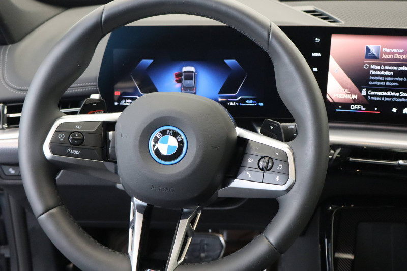 2 porte-gobelets sur la console centrale / 3ème feu stop LED intégré au spoiler AR / 5 places / Accoudoir central AV avec panneau de commande intégré / Active Guard Avertissement de franchissement de ligne avec impulsion sur la direction (>70km/h).Avertisseur de collision frontale avec intervention de freinage (3-210km/h).Avertisseur de présence d'un véhicule lors d'un changement de direction vers la gauche avec action sur les freins (3-35km/h).Avertisseur d'intersection (détection risque collision latérale 3-85km/h).Avertisseur présence piéton/cycliste lors d'un virage en intersection (3-35km/h).Assistance de limitation de vitesse. / Airbag entre les deux sièges AV en cas de collision latérale / Airbag passager AV désactivable via la clé / Airbags de tête à l'AV et aux places latérales AR / Alarme antivol / Appel d'Urgence Intelligent (durée de vie de la voiture) / BMW Digital (BMW Maps, RTTI sur itinéraire, Apple CarPlay, Android Auto, BMW Intelligent Personal Assistant) / BMW EfficientDynamics Système de récupération de l'énergie au freinage, Fonction d'arrêt et de redémarrage automatique du moteur, Direction à assistance électrique Servotronic (assistance variable selon la vitesse) / BMW Live Cockpit Navigation Plus avec Ecran Widescreen / BMW Live Cockpit Plus / Boîte de vitesses automatique 7 rapports avec palettes au volant / Buse de lave-glace pour caméra de recul / Câble de recharge Professionnel Mode 3 (T2-T2) pour la recharge publique - 5 mètres Câble de recharge Professionnel de Mode 3 triphasé avec prises Type 2 - Type 2 destinéà la recharge sur bornes publiques ou privées. Peut être utilisé sur une borne de recharge raccordée en courant monophasé ou triphasé avec des puissances de charge maximales : 7,4 kW / 32 A (en monophasé) et de 22 kW / 32 A (en triphasé). Rangement dans le coffret à câbles sous le cache du compartiment à bagages. Couleur Gris basalte. / Capteur d'impact (Activation de l'airbag, des feux de détresse, de l'éclairage intérieur, Déverrouillage des portes, Activation de la borne batterie de sécurité) / Carte SIM 4G LTE pour les Services ConnectedDrive / Ceintures de sécurité 3 points pour toutes les places / Ciel de pavillon M Anthracite / Clés radiocommandées à mémorisation automatique des réglages "Personal Profile" (x 2) / Clignotants LED intégrés aux feux de jour / Climatisation automatique 2 zones Contrôle de la température et du volume d'air distribué avec 5 niveaux d'intensité, réglables séparément entre le conducteur et le passager. Fonctionnalité SYNC pour que les réglages du conducteur s'appliquent à l'ensemble de l'habitacle. Contrôle commun de la température à l'AR. Capteur d'humidité et d'ensoleillement, filtre à charbon actif et microfiltre. / Commande électrique du hayon de coffre / Compartiment à bagages : 2 crochets de sac, filet sur panneau garuche, prise 12V, rangement additionel au modèle) sous plancher amovible / Connectivité téléphone Bluetooth avec interface USB / Console centrale avec insert noir brillant / Contour de vitres noir mat / Contrôle de freinage en courbe CBC / Contrôle dynamique du freinage (DBC) / Désignation du modèle à droite du hayon / Détecteur de pluie et allumage automatique des projecteurs / Double VANOS (système de distribution variable) / Eclairage de bienvenue autour du véhicule / Eclairage de plaque d'immatriculation à LED / Eléments extérieurs M Sport / Eléments intérieur M / Equipements supplémentaires Pack M Sport / Feux AR à LED intégrant les clignotants / Feux de sortie de porte AV (porte ouverte) / Fixations ISOFIX / i-Size pour les deux sièges AR extérieurs / Fonction cargo : Réglage de l'inclinaison de la banquette AR à 12 degrés (volume de chargement supplémentaire d' environ 85-100 litres) / Fonctionnalité "Follow Me Home" (éclairage d'accompagnement) : les feux de croisement restent allumés quelques instants une fois le contact coupé / Fonction Start&Stop automatique / Freinage de séchage / Frein de parking électromécanique avec fonction "Automatic Hold" / Grilles de calandre cerclées de chrome avec barreaux verticaux noirs / HotSpot Wi-Fi / Injection haute pression / Inserts décoratifs Aluminium M Hexacube / Jantes en alliage léger 18" style 838 M Gris foncé. Bicolore 7.5 J x 18 pneus 225/55 R 18. Montage chaînes à neige impossible. / Kit de mobilité Plus - Bouteille avec liquide anti-crevaison - Compresseur avec alimentation autonome via batterie rechargeable - Système se fixant au centre de la jante avec maintient de pression automatique du pneu crevé durant la conduite - Simple d'utilisation et réduction du temps passé sur le lieu de la panne / Kit éclairage / Kit rangement / Lève-vitres AV/AR électriques avec commande par impulsion et sécurité enfants / Mesure individuelle de pression des pneumatiques / My Modes: 5 modes de conduite (Personnel, Efficient, Sport, Relax, Expressive) / Norme General Safety Regulation 2 (GSR2) / Notice d'utilisation de la voiture intégrée et carnet d'entretien électronique avec BMW Service History / Ordinateur de bord avec Check-Control et indicateur de température extérieure / Pare-choc AR avec inserts chromés en L / Pare-choc AV avec air curtains en noir mat / Parking Assistant Comprend l'option Caméra de recul. Manoeuvres de stationnemment en créneau et en bataille facilitées par mesure automatique, Assistant de marche AR/Auto-reverse / Performance control : contrôle du moteur et interventions freinage pour améliorer l'agilité et la neutralité en virage / Personal eSIM Personal eSIM est la version électronique, intégrée au véhicule, de la carte SIM traditionnelle. Vous l'utilisez via un abonnement souscrit auprès d'un opérateur téléphonique et transformez ainsi votre BMW en périphérique mobile supplémentaire : - Connectivité en 5G - Meilleure qualité de connexion grâce aux antennes de la voiture - Connexion H