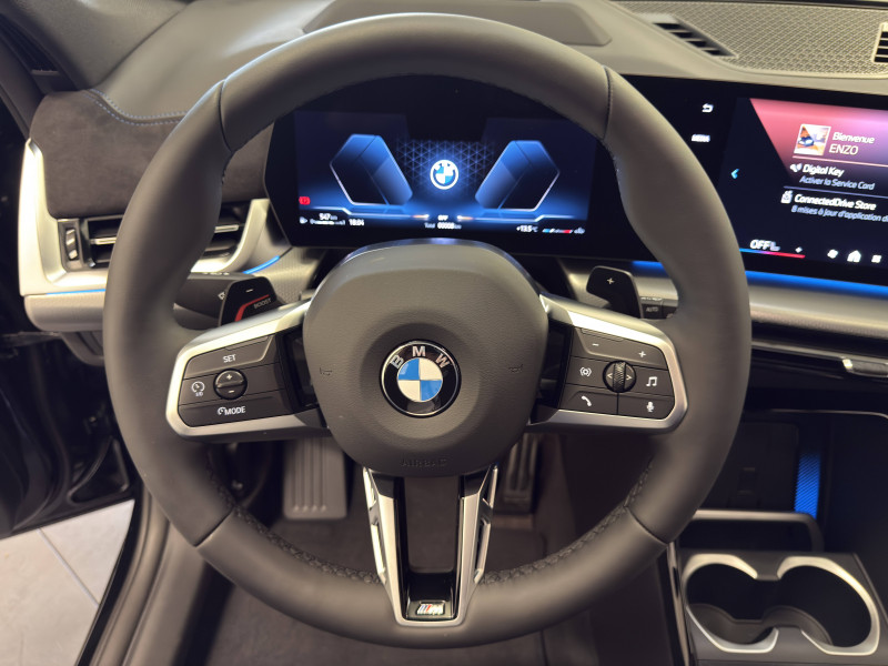 2 porte-gobelets sur la console centrale / 3ème feu stop LED intégré au spoiler AR / 5 places / Accoudoir central AV avec panneau de commande intégré / Active Guard Avertissement de franchissement de ligne avec impulsion sur la direction (>70km/h).Avertisseur de collision frontale avec intervention de freinage (3-210km/h).Avertisseur de présence d'un véhicule lors d'un changement de direction vers la gauche avec action sur les freins (3-35km/h).Avertisseur d'intersection (détection risque collision latérale 3-85km/h).Avertisseur présence piéton/cycliste lors d'un virage en intersection (3-35km/h).Assistance de limitation de vitesse. / Airbag entre les deux sièges AV en cas de collision latérale / Airbag passager AV désactivable via la clé / Airbags de tête à l'AV et aux places latérales AR / Alarme antivol / Appel d'Urgence Intelligent (durée de vie de la voiture) / Assistant dynamique de motricité (DTC) / BMW Digital (BMW Maps, RTTI sur itinéraire, Apple CarPlay, Android Auto, BMW Intelligent Personal Assistant) / BMW EfficientDynamics Système de récupération de l'énergie au freinage, Fonction d'arrêt et de redémarrage automatique du moteur, Direction à assistance électrique Servotronic (assistance variable selon la vitesse) / BMW Live Cockpit Navigation Plus avec Ecran Widescreen / BMW Live Cockpit Plus / Boîte de vitesses automatique 7 rapports avec palettes au volant / Buse de lave-glace pour caméra de recul / Capacité du reservoir augmentée / Capteur d'impact (Activation de l'airbag, des feux de détresse, de l'éclairage intérieur, Déverrouillage des portes, Activation de la borne batterie de sécurité) / Carte SIM 4G LTE pour les Services ConnectedDrive / Ceintures de sécurité 3 points pour toutes les places / Ciel de pavillon M Anthracite / Clés radiocommandées à mémorisation automatique des réglages "Personal Profile" (x 2) / Clignotants LED intégrés aux feux de jour / Climatisation automatique 2 zones Contrôle de la température et du volume d'air distribué avec 5 niveaux d'intensité, réglables séparément entre le conducteur et le passager. Fonctionnalité SYNC pour que les réglages du conducteur s'appliquent à l'ensemble de l'habitacle. Contrôle commun de la température à l'AR. Capteur d'humidité et d'ensoleillement, filtre à charbon actif et microfiltre. / Commande électrique du hayon de coffre / Compartiment à bagages : 2 crochets de sac, filet sur panneau garuche, prise 12V, rangement additionel au modèle) sous plancher amovible / Console centrale avec insert noir brillant / Contour de vitres noir mat / Contrôle de freinage en courbe CBC / Contrôle dynamique du freinage (DBC) / Désignation du modèle à droite du hayon / Détecteur de pluie et allumage automatique des projecteurs / Eclairage de bienvenue autour du véhicule / Eclairage de plaque d'immatriculation à LED / Eléments extérieurs M Sport / Eléments intérieur M / Equipements supplémentaires Pack M Sport / Feux AR à LED intégrant les clignotants / Feux de sortie de porte AV (porte ouverte) / Filtre à particules et catalyseur à oxydation / Fixations ISOFIX / i-Size pour les deux sièges AR extérieurs / Fonction cargo : Réglage de l'inclinaison de la banquette AR à 12 degrés (volume de chargement supplémentaire d' environ 85-100 litres) / Fonctionnalité "Follow Me Home" (éclairage d'accompagnement) : les feux de croisement restent allumés quelques instants une fois le contact coupé / Fonction Start&Stop automatique / Freinage de séchage / Frein de parking électromécanique avec fonction "Automatic Hold" / Grilles de calandre cerclées de chrome avec barreaux verticaux noirs / HotSpot Wi-Fi / Hybridation légère 48V - Fonctionnalité e-Boost via moteur électrique de 19ch situé dans la boite de vitesse / Injection directe Common Rail / Inserts décoratifs Aluminium M Hexacube / Jantes en alliage léger 18" style 838 M Gris foncé. Bicolore 7.5 J x 18 pneus 225/55 R 18. Montage chaînes à neige impossible. / Kit de mobilité Plus - Bouteille avec liquide anti-crevaison - Compresseur avec alimentation autonome via batterie rechargeable - Système se fixant au centre de la jante avec maintient de pression automatique du pneu crevé durant la conduite - Simple d'utilisation et réduction du temps passé sur le lieu de la panne / Kit éclairage / Kit rangement / Lève-vitres AV/AR électriques avec commande par impulsion et sécurité enfants / Mesure individuelle de pression des pneumatiques / Moteur TwinPower Turbo diesel 4 cylindres Turbocompresseur Injection directe Common Rail Filtre à particule et catalyseur à oxydation. Réduction catalytique via injection d'AdBlue (SCR) Réservoir 14L / My Modes: 5 modes de conduite (Personnel, Efficient, Sport, Relax, Expressive) / Norme General Safety Regulation 2 (GSR2) / Notice d'utilisation de la voiture intégrée et carnet d'entretien électronique avec BMW Service History / Ordinateur de bord avec Check-Control et indicateur de température extérieure / Pare-choc AR avec inserts chromés en L / Pare-choc AV avec air curtains en noir mat / Parking Assistant Comprend l'option Caméra de recul. Manoeuvres de stationnemment en créneau et en bataille facilitées par mesure automatique, Assistant de marche AR/Auto-reverse / Performance control : contrôle du moteur et interventions freinage pour améliorer l'agilité et la neutralité en virage / Personal eSIM Personal eSIM est la version électronique, intégrée au véhicule, de la carte SIM traditionnelle. Vous l'utilisez via un abonnement souscrit auprès d'un opérateur téléphonique et transformez ainsi votre BMW en périphérique mobile supplémentaire : - Connectivité en 5G - Meilleure qualité de connexion grâce aux antennes de la voiture - Connexion Hotspot Wi-Fi avec la possibilité de connecter jusqu'à 10 appareils (ex : tablette numérique, smartphone, ordinateur, ...) / Planche de bord en similicuir Sensatec Habillage de 