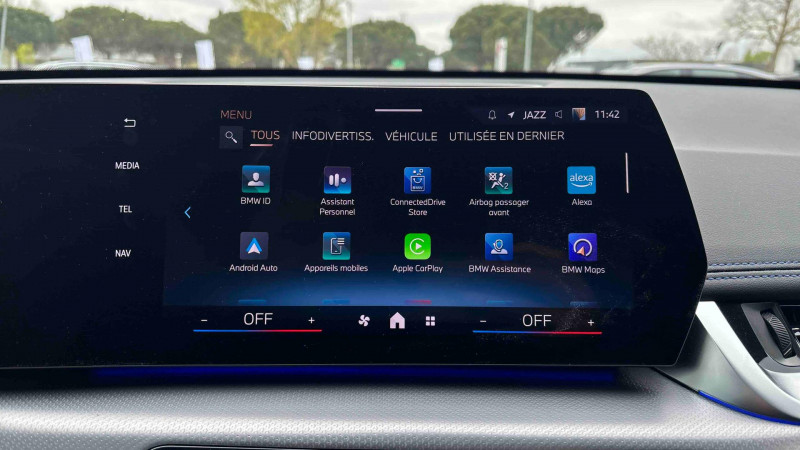 3ème feu stop LED intégré au spoiler AR / BMW EfficientDynamics Système de récupération de l'énergie au freinage, Fonction d'arrêt et de redémarrage automatique du moteur, Direction à assistance électrique Servotronic (assistance variable selon la vitesse) / BMW Live Cockpit Navigation Plus avec Ecran Widescreen / Boîte de vitesses automatique 7 rapports avec palettes au volant / Clignotants LED intégrés aux feux de jour / Climatisation automatique 2 zones Contrôle de la température et du volume d'air distribué avec 5 niveaux d'intensité, réglables séparément entre le conducteur et le passager. Fonctionnalité SYNC pour que les réglages du conducteur s'appliquent à l'ensemble de l'habitacle. Contrôle commun de la température à l'AR. Capteur d'humidité et d'ensoleillement, filtre à charbon actif et microfiltre. / Clés radiocommandées à mémorisation automatique des réglages "Personal Profile" (x 2) / Détecteur de pluie et allumage automatique des projecteurs / Eclairage de plaque d'immatriculation à LED / Equipements supplémentaires Pack M Sport / Feux AR à LED intégrant les clignotants / Fonction Start&Stop automatique / Inserts décoratifs Aluminium M Hexacube / Jantes en alliage léger 18" style 838 M Gris foncé. Bicolore 7.5 J x 18 pneus 225/55 R 18. Montage chaînes à neige impossible. / Parking Assistant Comprend l'option Caméra de recul. Manoeuvres de stationnemment en créneau et en bataille facilitées par mesure automatique, Assistant de marche AR/Auto-reverse / Planche de bord en similicuir Sensatec Habillage de la planche de bord en Sensatec noir avec surpiqûres grise (surpiqûres bleues en combinaison avec une sellerie Alcantara / Sensatec), Parties supérieures du tableau de bord et du panneau de porte / Projecteurs LED (Feux de route et feux de croisement à technologie LED) / Services Après-vente connectés BMW TeleServices (durée de vie de la voiture) - Appel Automatique - Appel Manuel - Appel "BMW Assistance - Teleservice Battery Guard - Appel Hotline / Volant M gainé cuir avec palettes pour changement de rapport Trois branches. Jante en cuir noir 'Walknappa' , inserts chrome mat perlé et repose-pouce dans le volant. Logo M sur la base du volant. / 2 porte-gobelets sur la console centrale / 5 places / Accoudoir central AV avec panneau de commande intégré / Active Guard Avertissement de franchissement de ligne avec impulsion sur la direction (>70km/h).Avertisseur de collision frontale avec intervention de freinage (3-210km/h).Avertisseur de présence d'un véhicule lors d'un changement de direction vers la gauche avec action sur les freins (3-35km/h).Avertisseur d'intersection (détection risque collision latérale 3-85km/h).Avertisseur présence piéton/cycliste lors d'un virage en intersection (3-35km/h).Assistance de limitation de vitesse. / Airbag entre les deux sièges AV en cas de collision latérale / Airbag passager AV désactivable via la clé / Airbags de tête à l'AV et aux places latérales AR / Appel d'Urgence Intelligent (durée de vie de la voiture) / BMW Digital (BMW Maps, RTTI sur itinéraire, Apple CarPlay, Android Auto, BMW Intelligent Personal Assistant) / BMW Live Cockpit Plus / Buse de lave-glace pour caméra de recul / Capacité du reservoir augmentée / Capteur d'impact (Activation de l'airbag, des feux de détresse, de l'éclairage intérieur, Déverrouillage des portes, Activation de la borne batterie de sécurité) / Carte SIM 4G LTE pour les Services ConnectedDrive / Ceintures de sécurité 3 points pour toutes les places / Ciel de pavillon M Anthracite / Commande électrique du hayon de coffre / Compartiment à bagages : 2 crochets de sac, filet sur panneau garuche, prise 12V, rangement additionel au modèle) sous plancher amovible / Connectivité téléphone Bluetooth avec interface USB / Console centrale avec insert noir brillant / Contour de vitres noir mat / Contrôle de freinage en courbe CBC / Contrôle dynamique du freinage (DBC) / Double VANOS (système de distribution variable) / Désignation du modèle à droite du hayon / Eclairage de bienvenue autour du véhicule / Ecrous de roues antivol / Eléments extérieurs M Sport / Eléments intérieur M / Feux de sortie de porte AV (porte ouverte) / Fixations ISOFIX / i-Size pour les deux sièges AR extérieurs / Fonction cargo : Réglage de l'inclinaison de la banquette AR à 12 degrés (volume de chargement supplémentaire d' environ 85-100 litres) / Fonctionnalité "Follow Me Home" (éclairage d'accompagnement) : les feux de croisement restent allumés quelques instants une fois le contact coupé / Frein de parking électromécanique avec fonction "Automatic Hold" / Freinage de séchage / Grilles de calandre cerclées de chrome avec barreaux verticaux noirs / HotSpot Wi-Fi / Injection haute pression / Lève-vitres AV/AR électriques avec commande par impulsion et sécurité enfants / Mesure individuelle de pression des pneumatiques / My Modes: 5 modes de conduite (Personnel, Efficient, Sport, Relax, Expressive) / Norme General Safety Regulation 2 (GSR2) / Notice d'utilisation de la voiture intégrée et carnet d'entretien électronique avec BMW Service History / Ordinateur de bord avec Check-Control et indicateur de température extérieure / Pare-choc AR avec inserts chromés en L / Pare-choc AV avec air curtains en noir mat / Performance control : contrôle du moteur et interventions freinage pour améliorer l'agilité et la neutralité en virage / Personal eSIM Personal eSIM est la version électronique, intégrée au véhicule, de la carte SIM traditionnelle. Vous l'utilisez via un abonnement souscrit auprès d'un opérateur téléphonique et transformez ainsi votre BMW en périphérique mobile supplémentaire : - Connectivité en 5G - Meilleure qualité de connexion grâce aux antennes de la voiture - Connexion Hotspot Wi-Fi avec la possibilité de connecter jusqu'à 10 appareils (ex : tablette numérique, smartphone, ordinateur, ...) 
