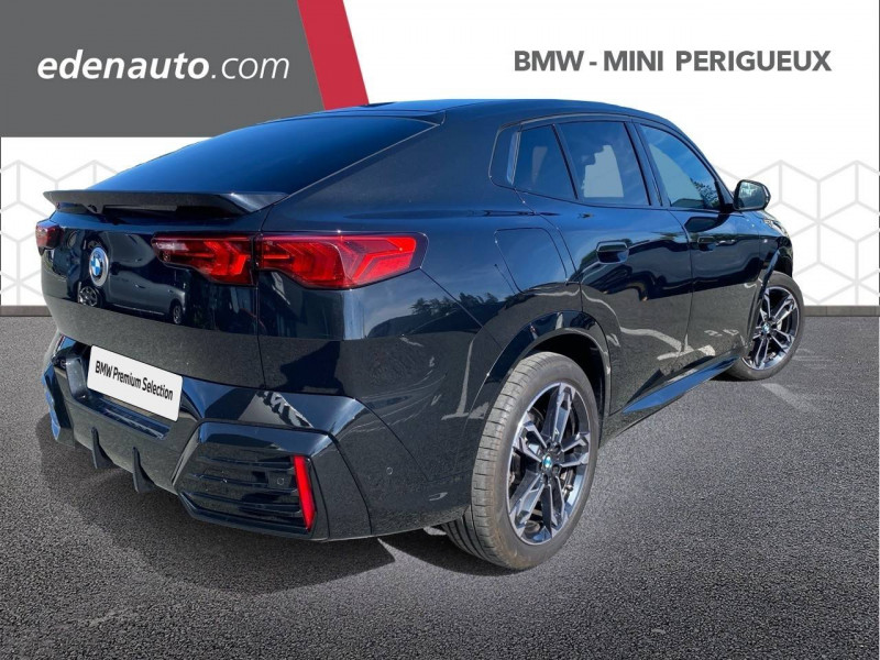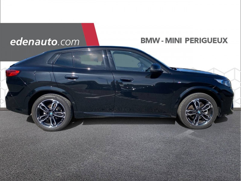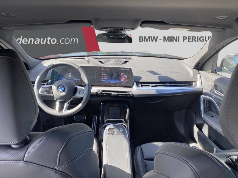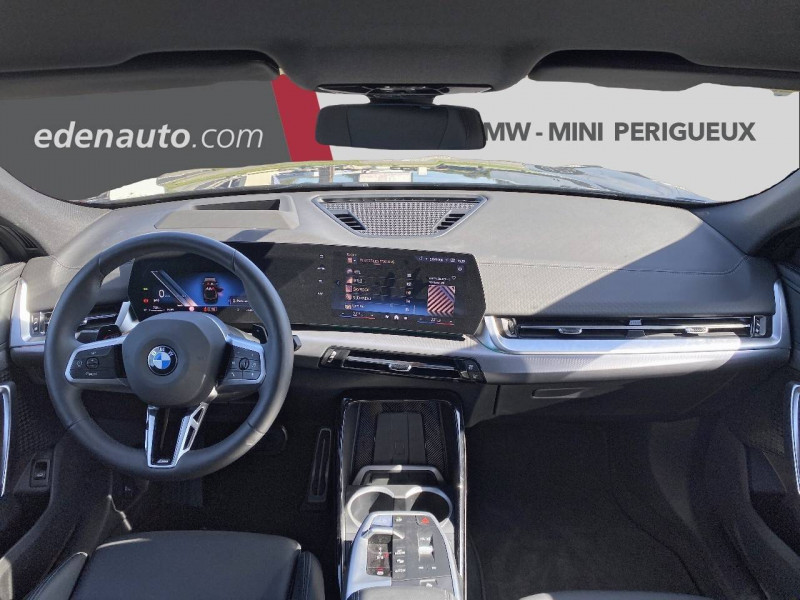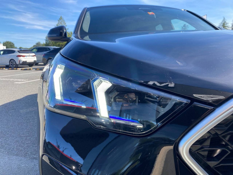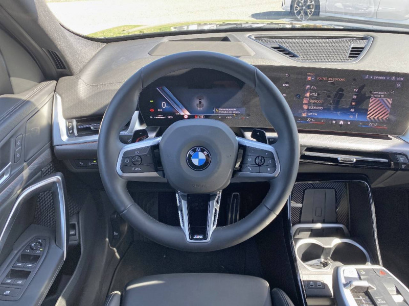 2 porte-gobelets sur la console centrale / 3ème feu stop LED intégré au hayon AR / 5 places / Accoudoir central AV avec panneau de commande intégré / Active Guard Avertissement de franchissement de ligne. Avertisseur de collision frontale. Avertisseur de présence d'un véhicule lors d'un changement de direction vers la gauche. Avertisseur d'intersection. Avertisseur présence piéton/cycliste lors d'un virage en intersection. Assistance de limitation de vitesse. Assistance d'évitement en cas de risque de collision frontale / Airbag entre les deux sièges AV en cas de collision latérale / Airbag passager AV désactivable via la clé / Airbags de tête à l'AV et aux places latérales AR / Alarme antivol Surveillance des portes, coffre et capot moteur, protection de l'habitacle, détecteur de soulèvement et sirène. / Appel d'Urgence Intelligent (durée de vie de la voiture) Appel automatique vers le centre d'assistance BMW en cas d'accident. Touche SOS pour Appel d'Urgence manuel. Les données importantes sont automatiquement transmises aux secours : identification et localisation de la voiture, nombre de passagers à bord, statuts des airbags. Ce service utilise la carte SIM montée d'usine et ne requiert pas l'utilisation du smartphone. / Assistant dynamique de motricité (DTC) / BMW Digital (BMW Maps, RTTI sur itinéraire, Apple CarPlay, Android Auto, BMW Intelligent Personal Assistant) / BMW EfficientDynamics Système de récupération de l'énergie au freinage, Fonction d'arrêt et de redémarrage automatique du moteur, Direction à assistance électrique Servotronic (assistance variable selon la vitesse) / BMW Live Cockpit Navigation Plus avec Écran BMW Curved Display / Boîte de vitesses automatique 7 rapports avec palettes au volant / Buse de lave-glace pour caméra de recul / Capacité du reservoir augmentée Capacité augmentée de 9L / Capteur d'impact (Activation de l'airbag, des feux de détresse, de l'éclairage intérieur, Déverrouillage des portes, Activation de la borne batterie de sécurité) / Carte SIM 4G LTE pour les Services BMW ConnectedDrive / Ceintures de sécurité 3 points pour toutes les places / Ciel de pavillon M Anthracite / Clés radiocommandées à mémorisation automatique des réglages "Personal Profile" (x 2) / Clignotants LED intégrés aux feux de jour / Commande électrique du hayon / Compartiment à bagages : 2 crochets de sac, filet sur panneau gauche, prise 12V rangement additionel (volume spécifique au modèle) sous plancher amovible / Console centrale avec insert noir brillant / Contrôle de freinage en courbe CBC / Contrôle de stabilité dynamique (DSC) avec dotation élargie / Contrôle dynamique du freinage (DBC) / Désignation du modèle "X2" sur le hayon à gauche et version à droite / Détecteur de pluie et allumage automatique des projecteurs / Eclairage de bienvenue autour du véhicule / Eclairage de plaque d'immatriculation à LED / Ecran BMW Curved Display / Eléments extérieurs M Sport / Eléments intérieurs M Sport / Feux AR à LED intégrant les clignotants / Feux de sortie de porte AV (porte ouverte) / Fixations ISOFIX / i-Size pour les deux sièges AR extérieurs / Fonction cargo : Réglage de l'inclinaison de la banquette AR à 12 degrés (volume de chargement supplémentaire d' environ 85-100 litres) / Fonctionnalité "Follow Me Home" (éclairage d'accompagnement) : les feux de croisement restent allumés quelques instants une fois le contact coupé / Fonction Start&Stop automatique / Freinage de séchage / Frein de parking électromécanique avec fonction "Automatic Hold" / Grilles de calandre façon Mesh Effect avec contour cerclées de chrome / Hybridation légère (48V) / Inserts décoratifs Aluminium M Hexacube clair / Jantes en alliage léger 19" style 871 M 8 J x 19 / pneus 245/45 R 19 Gris foncé. Bicolore Montage chaînes à neige impossible. / Kit de mobilité Plus - Bouteille avec liquide anti-crevaison - Compresseur avec alimentation autonome via batterie rechargeable - Système se fixant au centre de la jante avec maintient de pression automatique du pneu crevé durant la conduite - Simple d'utilisation et réduction du temps passé sur le lieu de la panne / Kit éclairage : Lampes de courtoisie, Eclairage intérieur de l'accoudoir central AV, Eclairage habitacle AV et AR, éclairage plancher AV et AR, éclairage du miroir de courtoisie , lampes de lecture centrales, éclairage du coffre à bagages sur un côté / Kit rangement - bac de rangement dans les portes AV et AR avec porte-bouteille - compartiment de rangement central - compartiment de rangement avec couvercle rabattable sous l'accoudoir central AV - crochets de vêtements AR / Lève-vitres AV/AR électriques avec commande par impulsion et sécurité enfants / Mesure individuelle de pression des pneumatiques / Moteur TwinPower Turbo essence 3 cylindres Turbocompresseur.Valvetronic (modification de la profondeur d'ouverture des soupapes d'admission). Double VANOS (système de distribution variable) .Injection haute pression.Filtre à particules / My Modes: 5 modes de conduite (Personnel, Efficient, Sport, Relax, Expressive) / Norme General Safety Regulation 2 (GSR2) / Notice d'utilisation de la voiture intégrée et carnet d'entretien électronique avec BMW Service History / Ordinateur de bord avec Check-Control et indicateur de température extérieure / Parking Assistant Système de manoeuvres de stationnemment en créneau et en bataille automatique, Caméra de recul avec lignes interactives de trajectoires. Fonction zoom pour attelage, Radars de recul AV & AR (PDC). Fonction PDC actif et aide au parking latéral, Assistant de marche AR "Auto-Reverse" sur 50m / Performance control : contrôle du moteur et interventions freinage pour améliorer l'agilité et la neutralité en virage / Personal eSIM Personal eSIM est la version électronique, intégrée au véhicule, de la carte SIM traditionnelle. Vous l'utilisez via un abonnement souscrit a
