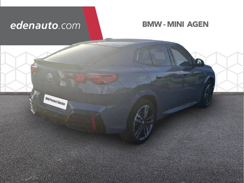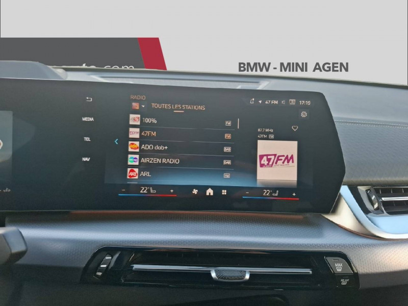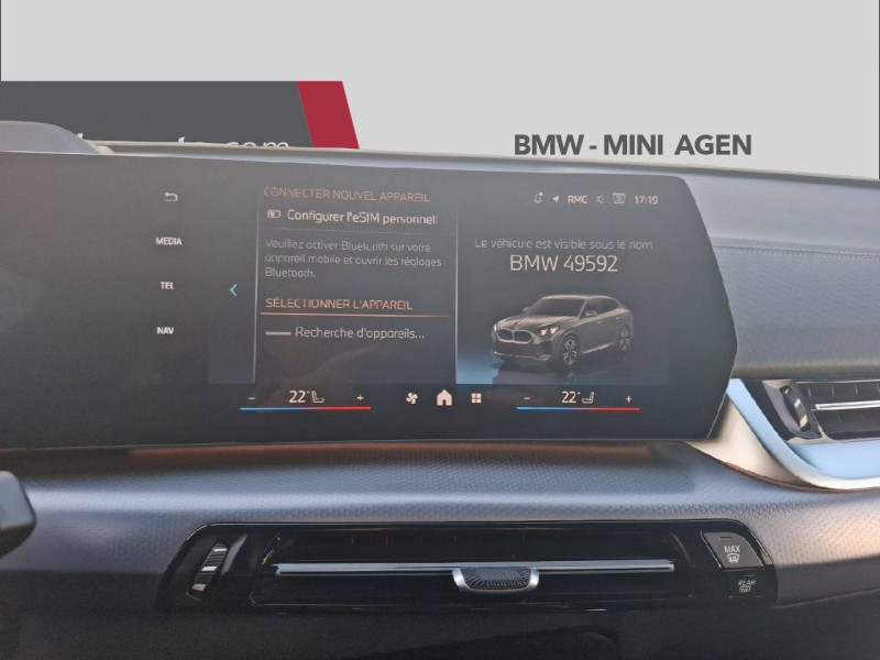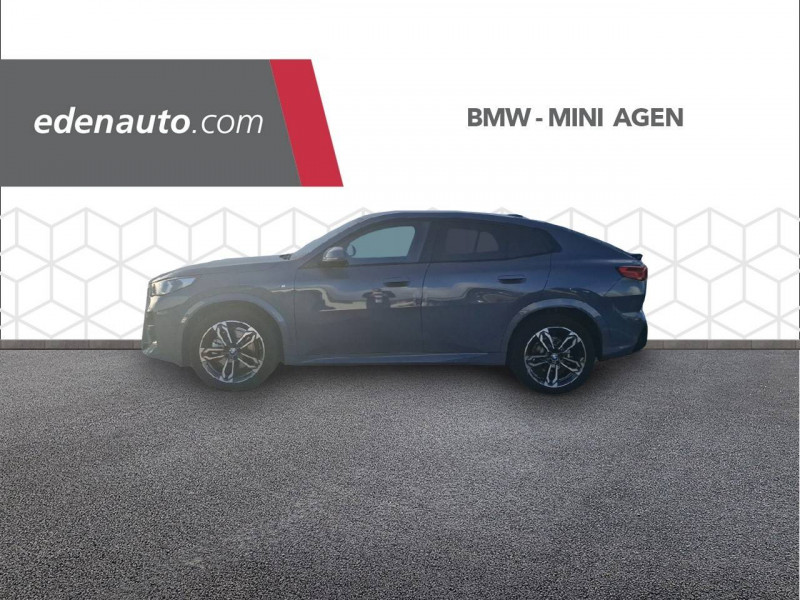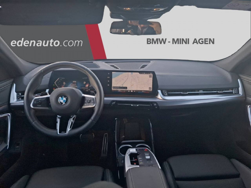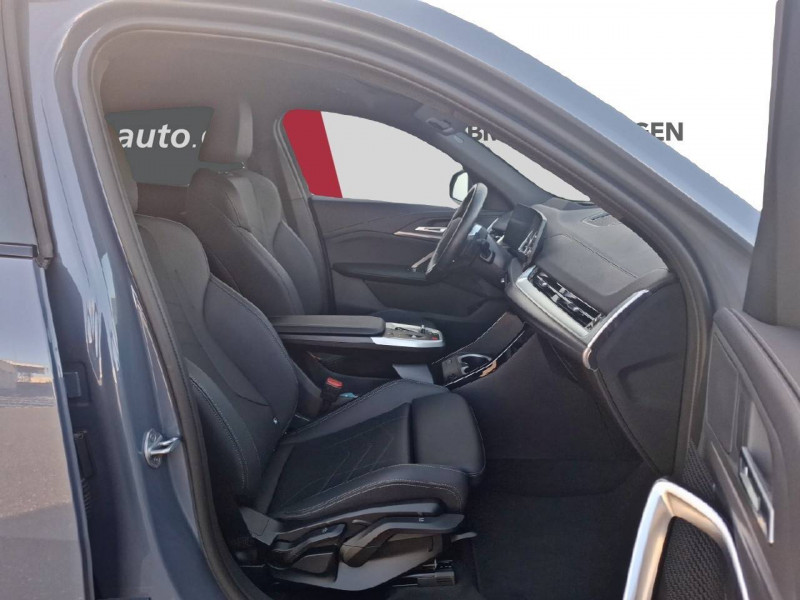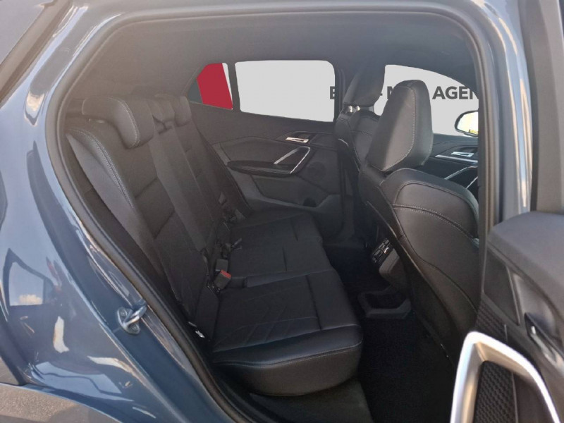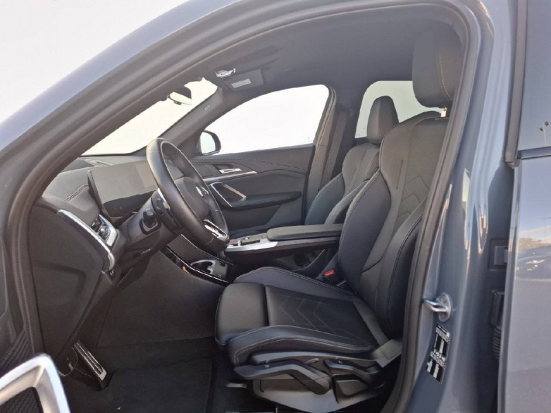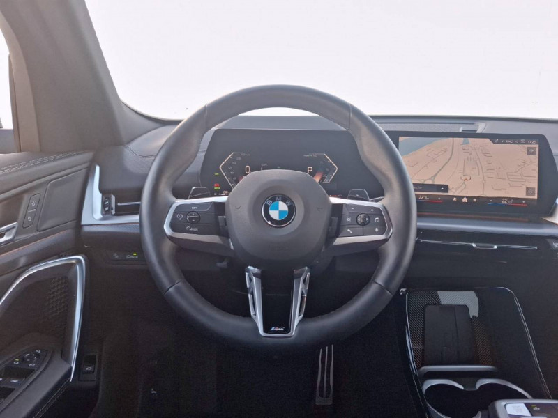 2 porte-gobelets sur la console centrale / 3ème feu stop LED intégré au hayon AR / 5 places / Accoudoir central AV avec panneau de commande intégré / Active Guard Avertissement de franchissement de ligne. Avertisseur de collision frontale. Avertisseur de présence d'un véhicule lors d'un changement de direction vers la gauche. Avertisseur d'intersection. Avertisseur présence piéton/cycliste lors d'un virage en intersection. Assistance de limitation de vitesse. Assistance d'évitement en cas de risque de collision frontale / Aides au stationnement Parking Assistant - Radars de stationnement AV et AR - Caméra de recul - Manoeuvres de stationnemment automatique en créneau et en bataille - Freinage automatique en marche AR - Assistant de marche AR/Auto-reverse / Airbag entre les deux sièges AV en cas de collision latérale / Airbag passager AV désactivable via la clé / Airbags de tête à l'AV et aux places latérales AR / Alarme antivol Surveillance des portes, coffre et capot moteur, protection de l'habitacle, détecteur de soulèvement et sirène. / Appel d'Urgence Intelligent (durée de vie de la voiture) Appel automatique vers le centre d'assistance BMW en cas d'accident. Touche SOS pour Appel d'Urgence manuel. Les données importantes sont automatiquement transmises aux secours : identification et localisation de la voiture, nombre de passagers à bord, statuts des airbags. Ce service utilise la carte SIM montée d'usine et ne requiert pas l'utilisation du smartphone. / Assistant dynamique de motricité (DTC) / BMW Digital (BMW Maps, RTTI sur itinéraire, Apple CarPlay, Android Auto, BMW Intelligent Personal Assistant) / BMW EfficientDynamics Système de récupération de l'énergie au freinage, Fonction d'arrêt et de redémarrage automatique du moteur, Direction à assistance électrique Servotronic (assistance variable selon la vitesse) / BMW Live Cockpit Navigation Plus avec Écran BMW Curved Display / Boîte de vitesses automatique 7 rapports avec palettes au volant / Buse de lave-glace pour caméra de recul / Capacité du reservoir augmentée Capacité augmentée de 9L / Capteur d'impact (Activation de l'airbag, des feux de détresse, de l'éclairage intérieur, Déverrouillage des portes, Activation de la borne batterie de sécurité) / Carte SIM 4G LTE pour les Services BMW ConnectedDrive / Ceintures de sécurité 3 points pour toutes les places / Ciel de pavillon M Anthracite / Clés radiocommandées à mémorisation automatique des réglages "Personal Profile" (x 2) / Clignotants LED intégrés aux feux de jour / Commande électrique du hayon / Compartiment à bagages : 2 crochets de sac, filet sur panneau gauche, prise 12V rangement additionel (volume spécifique au modèle) sous plancher amovible / Console centrale avec insert noir brillant / Contrôle de freinage en courbe CBC / Contrôle de stabilité dynamique (DSC) avec dotation élargie / Contrôle dynamique du freinage (DBC) / Désignation du modèle "X2" sur le hayon à gauche et version à droite / Détecteur de pluie et allumage automatique des projecteurs / Eclairage de bienvenue autour du véhicule / Eclairage de plaque d'immatriculation à LED / Ecran BMW Curved Display / Eléments extérieurs M Sport / Eléments intérieurs M Sport / Feux AR à LED intégrant les clignotants / Feux de sortie de porte AV (porte ouverte) / Fixations ISOFIX / i-Size pour les deux sièges AR extérieurs / Fonction cargo : Réglage de l'inclinaison de la banquette AR à 12 degrés (volume de chargement supplémentaire d' environ 85-100 litres) / Fonctionnalité "Follow Me Home" (éclairage d'accompagnement) : les feux de croisement restent allumés quelques instants une fois le contact coupé / Fonction Start&Stop automatique / Freinage de séchage / Frein de parking électromécanique avec fonction "Automatic Hold" / Grilles de calandre façon Mesh Effect avec contour cerclées de chrome / Hybridation légère (48V) / Inserts décoratifs Aluminium M Hexacube clair / Jantes en alliage léger 19" style 871 M 8 J x 19 / pneus 245/45 R 19 Gris foncé. Bicolore Montage chaînes à neige impossible. / Kit de mobilité Plus - Bouteille avec liquide anti-crevaison - Compresseur avec alimentation autonome via batterie rechargeable - Système se fixant au centre de la jante avec maintient de pression automatique du pneu crevé durant la conduite - Simple d'utilisation et réduction du temps passé sur le lieu de la panne / Kit éclairage : Lampes de courtoisie, Eclairage intérieur de l'accoudoir central AV, Eclairage habitacle AV et AR, éclairage plancher AV et AR, éclairage du miroir de courtoisie , lampes de lecture centrales, éclairage du coffre à bagages sur un côté / Kit rangement - bac de rangement dans les portes AV et AR avec porte-bouteille - compartiment de rangement central - compartiment de rangement avec couvercle rabattable sous l'accoudoir central AV - crochets de vêtements AR / Lève-vitres AV/AR électriques avec commande par impulsion et sécurité enfants / Mesure individuelle de pression des pneumatiques / Moteur TwinPower Turbo essence 3 cylindres - Turbocompresseur - Valvetronic (modification de la profondeur d'ouverture des soupapes d'admission) - Double VANOS (système de distribution variable) - Injection haute pression - Filtre à particules / My Modes: 5 modes de conduite (Personnel, Efficient, Sport, Relax, Expressive) / Norme General Safety Regulation 2 (GSR2) / Notice d'utilisation de la voiture intégrée et carnet d'entretien électronique avec BMW Service History / Ordinateur de bord avec Check-Control et indicateur de température extérieure / Performance control : contrôle du moteur et interventions freinage pour améliorer l'agilité et la neutralité en virage / Personal eSIM Personal eSIM est la version électronique, intégrée au véhicule, de la carte SIM traditionnelle. Vous l'utilisez via un abonnement souscrit auprès d'un opérateur téléphonique et transformez ainsi votre 