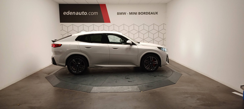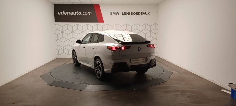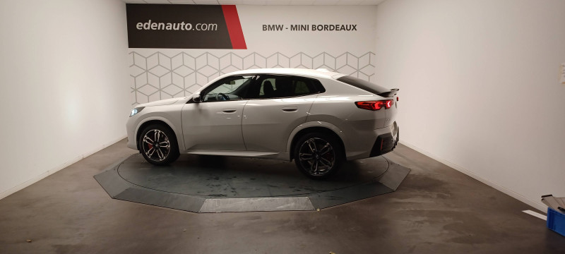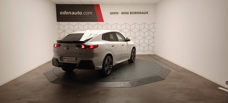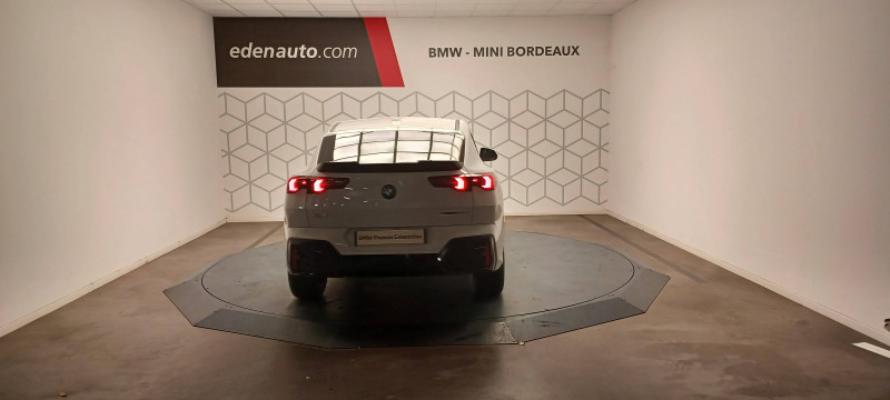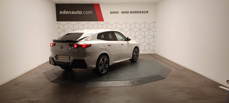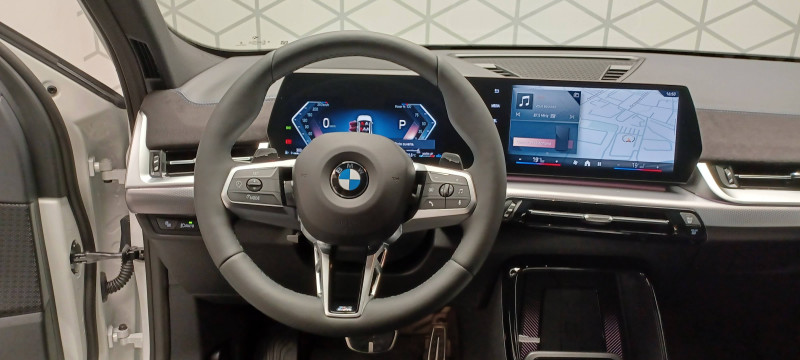 2 porte-gobelets sur la console centrale / 3ème feu stop LED intégré au hayon AR / 5 places / Accoudoir central AV avec panneau de commande intégré / Active Guard Avertissement de franchissement de ligne. Avertisseur de collision frontale. Avertisseur de présence d'un véhicule lors d'un changement de direction vers la gauche. Avertisseur d'intersection. Avertisseur présence piéton/cycliste lors d'un virage en intersection. Assistance de limitation de vitesse. Assistance d'évitement en cas de risque de collision frontale / Aides au stationnement Parking Assistant - Radars de stationnement AV et AR - Caméra de recul - Manoeuvres de stationnemment automatique en créneau et en bataille - Freinage automatique en marche AR - Assistant de marche AR/Auto-reverse / Airbag entre les deux sièges AV en cas de collision latérale / Airbag passager AV désactivable via la clé / Airbags de tête à l'AV et aux places latérales AR / Alarme antivol Surveillance des portes, coffre et capot moteur, protection de l'habitacle, détecteur de soulèvement et sirène. / Appel d'Urgence Intelligent (durée de vie de la voiture) Appel automatique vers le centre d'assistance BMW en cas d'accident. Touche SOS pour Appel d'Urgence manuel. Les données importantes sont automatiquement transmises aux secours : identification et localisation de la voiture, nombre de passagers à bord, statuts des airbags. Ce service utilise la carte SIM montée d'usine et ne requiert pas l'utilisation du smartphone. / Assistant dynamique de motricité (DTC) / BMW Digital (BMW Maps, RTTI sur itinéraire, Apple CarPlay, Android Auto, BMW Intelligent Personal Assistant) / BMW EfficientDynamics Système de récupération de l'énergie au freinage, Fonction d'arrêt et de redémarrage automatique du moteur, Direction à assistance électrique Servotronic (assistance variable selon la vitesse) / BMW Live Cockpit Navigation Plus avec Écran BMW Curved Display / Boîte de vitesses automatique 7 rapports avec palettes au volant / Buse de lave-glace pour caméra de recul / Capacité du reservoir augmentée Capacité augmentée de 9L / Capteur d'impact (Activation de l'airbag, des feux de détresse, de l'éclairage intérieur, Déverrouillage des portes, Activation de la borne batterie de sécurité) / Carte SIM 4G LTE pour les Services BMW ConnectedDrive / Ceintures de sécurité 3 points pour toutes les places / Ciel de pavillon M Anthracite / Clés radiocommandées à mémorisation automatique des réglages "Personal Profile" (x 2) / Clignotants LED intégrés aux feux de jour / Commande électrique du hayon / Compartiment à bagages : 2 crochets de sac, filet sur panneau gauche, prise 12V rangement additionel (volume spécifique au modèle) sous plancher amovible / Console centrale avec insert noir brillant / Contrôle de freinage en courbe CBC / Contrôle de stabilité dynamique (DSC) avec dotation élargie / Contrôle dynamique du freinage (DBC) / Désignation du modèle "X2" sur le hayon à gauche et version à droite / Détecteur de pluie et allumage automatique des projecteurs / Eclairage de bienvenue autour du véhicule / Eclairage de plaque d'immatriculation à LED / Ecran BMW Curved Display / Eléments extérieurs M Sport / Eléments intérieurs M Sport / Feux AR à LED intégrant les clignotants / Feux de sortie de porte AV (porte ouverte) / Fixations ISOFIX / i-Size pour les deux sièges AR extérieurs / Fonction cargo : Réglage de l'inclinaison de la banquette AR à 12 degrés (volume de chargement supplémentaire d' environ 85-100 litres) / Fonctionnalité "Follow Me Home" (éclairage d'accompagnement) : les feux de croisement restent allumés quelques instants une fois le contact coupé / Fonction Start&Stop automatique / Freinage de séchage / Frein de parking électromécanique avec fonction "Automatic Hold" / Grilles de calandre façon Mesh Effect avec contour cerclées de chrome / Hybridation légère (48V) / Inserts décoratifs Aluminium M Hexacube clair / Jantes en alliage léger 19" style 871 M 8 J x 19 / pneus 245/45 R 19 Gris foncé. Bicolore Montage chaînes à neige impossible. / Kit de mobilité Plus - Bouteille avec liquide anti-crevaison - Compresseur avec alimentation autonome via batterie rechargeable - Système se fixant au centre de la jante avec maintient de pression automatique du pneu crevé durant la conduite - Simple d'utilisation et réduction du temps passé sur le lieu de la panne / Kit éclairage : Lampes de courtoisie, Eclairage intérieur de l'accoudoir central AV, Eclairage habitacle AV et AR, éclairage plancher AV et AR, éclairage du miroir de courtoisie , lampes de lecture centrales, éclairage du coffre à bagages sur un côté / Kit rangement - bac de rangement dans les portes AV et AR avec porte-bouteille - compartiment de rangement central - compartiment de rangement avec couvercle rabattable sous l'accoudoir central AV - crochets de vêtements AR / Lève-vitres AV/AR électriques avec commande par impulsion et sécurité enfants / Mesure individuelle de pression des pneumatiques / My Modes: 5 modes de conduite (Personnel, Efficient, Sport, Relax, Expressive) / Norme General Safety Regulation 2 (GSR2) / Notice d'utilisation de la voiture intégrée et carnet d'entretien électronique avec BMW Service History / Ordinateur de bord avec Check-Control et indicateur de température extérieure / Performance control : contrôle du moteur et interventions freinage pour améliorer l'agilité et la neutralité en virage / Personal eSIM Personal eSIM est la version électronique, intégrée au véhicule, de la carte SIM traditionnelle. Vous l'utilisez via un abonnement souscrit auprès d'un opérateur téléphonique et transformez ainsi votre BMW en périphérique mobile supplémentaire : - Connectivité en 5G - Meilleure qualité de connexion grâce aux antennes de la voiture - Connexion Hotspot Wi-Fi avec la possibilité de connecter jusqu'à 10 appareils (ex : tablette numérique, sm