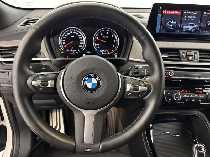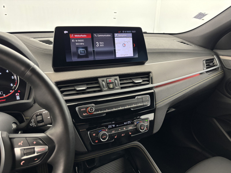 Clés radiocommandées à mémorisation automatique des réglages "Personal Profile": / Détecteur de pluie et allumage automatique des projecteurs: / Feux AR LED (design iconique 3D): / Feux de stop LED dynamiques clignotants: / Fonction d'arrêt et de redémarrage automatique du moteur BMW Efficient Dynamics: / Jantes en alliage léger 19" (48 cm) style 722 M à rayons en Y, "Orbitgrau" / RSC 8Jx19" avec pneus 225/45 R19: / Navigation multimédia Business: / Pack aérodynamique M: / Pack SimpliCity: / Système de manoeuvres automatiques "Park Assist" avec radars de stationnement AV/AR PDC: / 3ème feu stop: / 5 sièges: / Accès Confort (ouverture et fermeture sans clé): / Airbag central (siège conducteur): / Airbags de tête ajustable AV/AR: / Antenne aileron de requin: / Appel d'Urgence Intelligent (durée de vie de la voiture): / Appui lombaire ajustable Soutien lombaire à réglage électrique: / Attention Assist: Signale la perte de vigilance du conducteur: / Autoradio BMW Professional, 8 touches de favoris programmables et "Controller" iDrive avec touches de raccourci, 6 HP, Ecran 6,5" (800x480), Bluetooth avec streaming: / Avertisseur de risque de collision (détection par caméra): / Baguettes de seuil de porte avec l'inscription BMW à l'AV: / Bouton de démarrage Start/Stop sans manipulation de la clé: / Buses de lave-glace chauffantes: / Ciel de pavillon M anthracite: / Commande électrique du hayon: / Contrôle de la transmission: / Diffuseurs aérodynamiques AV "Air Curtain": / Direction M Sport: / Désignation du modèle: / Ecrous de roues antivol: / Eléments extérieurs (poignées de portes) couleur carrosserie: / Equipements Finition M Sport X: / Fonctions "Ma BMW à distance"* (durée de vie de la voiture): / Indicateur de limitation de vitesse: / Kit de rangement: / Kit éclairage: / Limiteur et régulateur de vitesse avec maintien de la vitesse en descente: / Logo BMW sur le capot moteur, le hayon et les montants de custode (gauche et droite): / Lève-vitres AV/AR électriques avec commande par impulsion et sécurité enfants: / Mesure individuelle de pression des pneumatiques: / Notice d'utilisation de la voiture intégrée et carnet d'entretien électronique avec BMW Service History: / Rétroviseur intérieur électrochrome: / Rétroviseurs extérieurs couleur carrosserie: / Rétroviseurs extérieurs à réglages électriques et dégivrants, miroir asphérique côté conducteur, rappels de clignotants intégrés: / Services Après-vente connectés BMW Teleservices (durée de vie de la voiture): / Seuil de chargement en acier inoxydable: / Shadow Line M brillant: / Sièges AV Sport Y compris joues de sièges plus relevées et longueur d'assise réglable manuellement. Gonflage électrique des joues du siège AV conducteur: / Sièges AV électriques à mémoires conducteur: / Sorties d'échappement doubles à gauche et à droite chromées 2x90mm: / Suspension DirectDrive: / Système de récuperation de l'énergie au freinage BMW Efficient Dynamics: / Sélecteur de mode de conduite - 3 modes : ECO PRO, Comfort, Sport: / Tapis de sol en velours: / Technologie BMW TwinPower Turbo avec injection directe common rail et turbocompresseur: / Teinte de carrosserie unie (Alpinweiss): / Touches multifonctions sur le volant: / Triangle de présignalisation avec kit de premiers secours: / Tuner DAB: / Sellerie Tissu Hexagon / Similicuir Sensatec: /