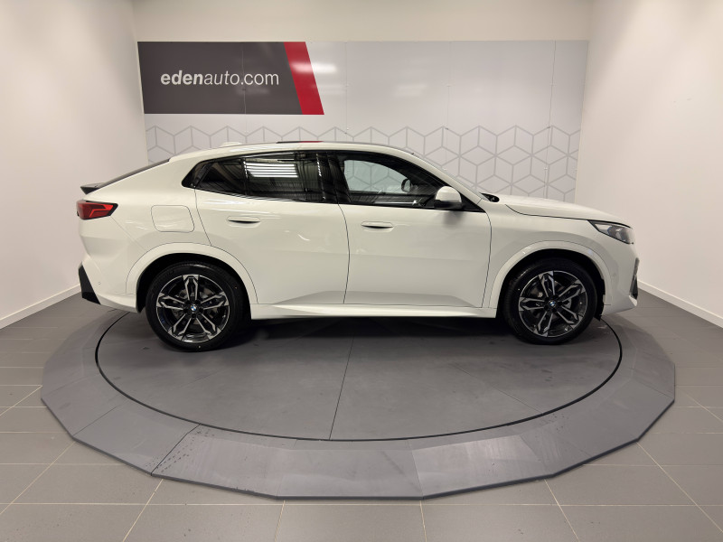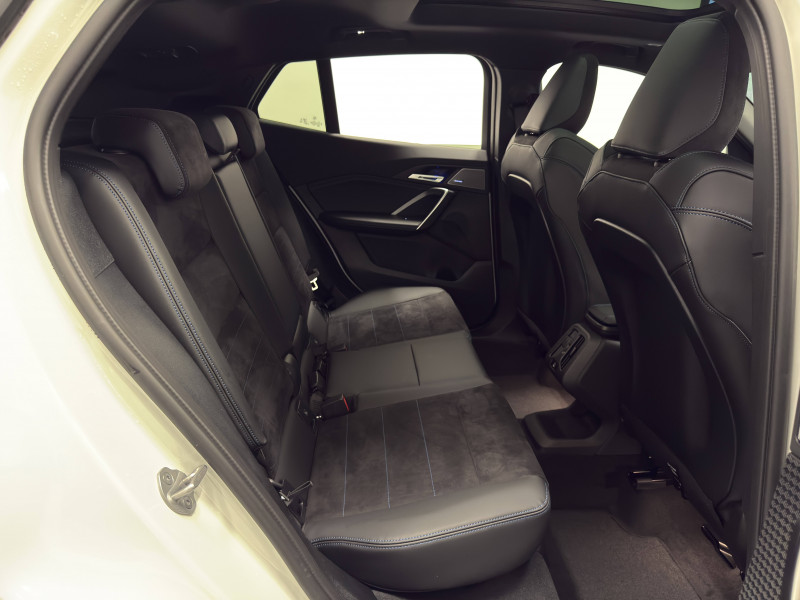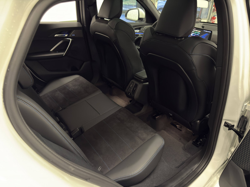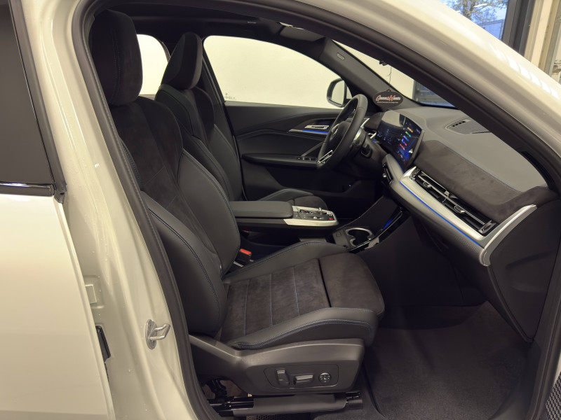 2 porte-gobelets sur la console centrale / 3ème feu stop LED intégré au hayon AR / 5 places / Accoudoir central AV avec panneau de commande intégré / Active Guard Avertissement de franchissement de ligne. Avertisseur de collision frontale. Avertisseur de présence d'un véhicule lors d'un changement de direction vers la gauche. Avertisseur d'intersection. Avertisseur présence piéton/cycliste lors d'un virage en intersection. Assistance de limitation de vitesse. Assistance d'évitement en cas de risque de collision frontale / Airbag entre les deux sièges AV en cas de collision latérale / Airbag passager AV désactivable via la clé / Airbags de tête à l'AV et aux places latérales AR / Alarme antivol Surveillance des portes, coffre et capot moteur, protection de l'habitacle, détecteur de soulèvement et sirène. / Appel d'Urgence Intelligent (durée de vie de la voiture) Appel automatique vers le centre d'assistance BMW en cas d'accident. Touche SOS pour Appel d'Urgence manuel. Les données importantes sont automatiquement transmises aux secours : identification et localisation de la voiture, nombre de passagers à bord, statuts des airbags. Ce service utilise la carte SIM montée d'usine et ne requiert pas l'utilisation du smartphone. / Assistant dynamique de motricité (DTC) / BMW Digital (BMW Maps, RTTI sur itinéraire, Apple CarPlay, Android Auto, BMW Intelligent Personal Assistant) / BMW EfficientDynamics Système de récupération de l'énergie au freinage, Fonction d'arrêt et de redémarrage automatique du moteur, Direction à assistance électrique Servotronic (assistance variable selon la vitesse) / BMW Live Cockpit Navigation Plus avec Écran BMW Curved Display / Boîte de vitesses automatique 7 rapports avec palettes au volant / Buse de lave-glace pour caméra de recul / Capacité du reservoir augmentée Capacité augmentée de 9L / Capteur d'impact (Activation de l'airbag, des feux de détresse, de l'éclairage intérieur, Déverrouillage des portes, Activation de la borne batterie de sécurité) / Carte SIM 4G LTE pour les Services BMW ConnectedDrive / Ceintures de sécurité 3 points pour toutes les places / Ciel de pavillon M Anthracite / Clés radiocommandées à mémorisation automatique des réglages "Personal Profile" (x 2) / Clignotants LED intégrés aux feux de jour / Commande électrique du hayon / Compartiment à bagages : 2 crochets de sac, filet sur panneau gauche, prise 12V rangement additionel (volume spécifique au modèle) sous plancher amovible / Console centrale avec insert noir brillant / Contrôle de freinage en courbe CBC / Contrôle de stabilité dynamique (DSC) avec dotation élargie / Contrôle dynamique du freinage (DBC) / Désignation du modèle "X2" sur le hayon à gauche et version à droite / Détecteur de pluie et allumage automatique des projecteurs / Eclairage de bienvenue autour du véhicule / Eclairage de plaque d'immatriculation à LED / Ecran BMW Curved Display / Eléments extérieurs M Sport / Eléments intérieurs M Sport / Feux AR à LED intégrant les clignotants / Feux de sortie de porte AV (porte ouverte) / Fixations ISOFIX / i-Size pour les deux sièges AR extérieurs / Fonction cargo : Réglage de l'inclinaison de la banquette AR à 12 degrés (volume de chargement supplémentaire d' environ 85-100 litres) / Fonctionnalité "Follow Me Home" (éclairage d'accompagnement) : les feux de croisement restent allumés quelques instants une fois le contact coupé / Fonction Start&Stop automatique / Freinage de séchage / Frein de parking électromécanique avec fonction "Automatic Hold" / Grilles de calandre façon Mesh Effect avec contour cerclées de chrome / Hybridation légère (48V) / Inserts décoratifs Aluminium M Hexacube clair / Jantes en alliage léger 19" style 871 M 8 J x 19 / pneus 245/45 R 19 Gris foncé. Bicolore Montage chaînes à neige impossible. / Kit de mobilité Plus - Bouteille avec liquide anti-crevaison - Compresseur avec alimentation autonome via batterie rechargeable - Système se fixant au centre de la jante avec maintient de pression automatique du pneu crevé durant la conduite - Simple d'utilisation et réduction du temps passé sur le lieu de la panne / Kit éclairage : Lampes de courtoisie, Eclairage intérieur de l'accoudoir central AV, Eclairage habitacle AV et AR, éclairage plancher AV et AR, éclairage du miroir de courtoisie , lampes de lecture centrales, éclairage du coffre à bagages sur un côté / Kit rangement - bac de rangement dans les portes AV et AR avec porte-bouteille - compartiment de rangement central - compartiment de rangement avec couvercle rabattable sous l'accoudoir central AV - crochets de vêtements AR / Lève-vitres AV/AR électriques avec commande par impulsion et sécurité enfants / Mesure individuelle de pression des pneumatiques / My Modes: 5 modes de conduite (Personnel, Efficient, Sport, Relax, Expressive) / Norme General Safety Regulation 2 (GSR2) / Notice d'utilisation de la voiture intégrée et carnet d'entretien électronique avec BMW Service History / Ordinateur de bord avec Check-Control et indicateur de température extérieure / Parking Assistant Système de manoeuvres de stationnemment en créneau et en bataille automatique, Caméra de recul avec lignes interactives de trajectoires. Fonction zoom pour attelage, Radars de recul AV & AR (PDC). Fonction PDC actif et aide au parking latéral, Assistant de marche AR "Auto-Reverse" sur 50m / Performance control : contrôle du moteur et interventions freinage pour améliorer l'agilité et la neutralité en virage / Personal eSIM Personal eSIM est la version électronique, intégrée au véhicule, de la carte SIM traditionnelle. Vous l'utilisez via un abonnement souscrit auprès d'un opérateur téléphonique et transformez ainsi votre BMW en périphérique mobile supplémentaire : - Connectivité en 5G - Meilleure qualité de connexion grâce aux antennes de la voiture - Connexion Hotspot Wi-Fi avec la poss