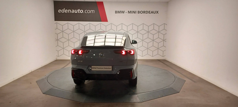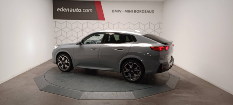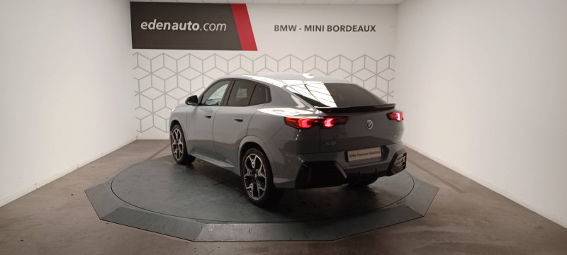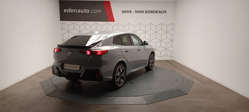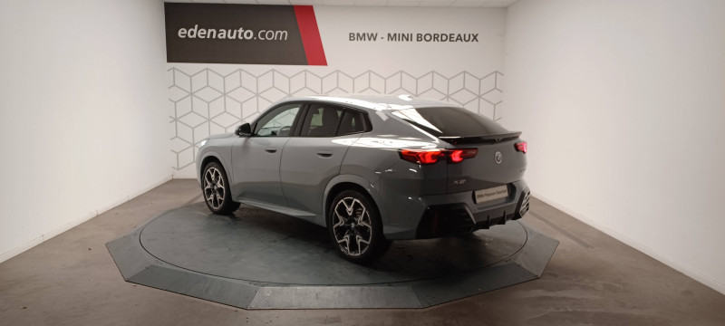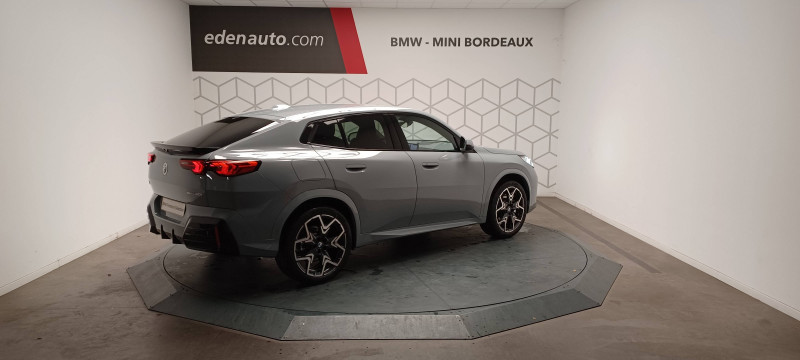 2 porte-gobelets sur la console centrale / 3ème feu stop LED intégré au hayon AR / 5 places / Accoudoir central AV avec panneau de commande intégré / Active Guard Avertissement de franchissement de ligne. Avertisseur de collision frontale. Avertisseur de présence d'un véhicule lors d'un changement de direction vers la gauche. Avertisseur d'intersection. Avertisseur présence piéton/cycliste lors d'un virage en intersection. Assistance de limitation de vitesse. Assistance d'évitement en cas de risque de collision frontale / Aides au stationnement Parking Assistant - Radars de stationnement AV et AR - Caméra de recul - Manoeuvres de stationnemment automatique en créneau et en bataille - Freinage automatique en marche AR - Assistant de marche AR/Auto-reverse / Airbag entre les deux sièges AV en cas de collision latérale / Airbag passager AV désactivable via la clé / Airbags de tête à l'AV et aux places latérales AR / Alarme antivol Surveillance des portes, coffre et capot moteur, protection de l'habitacle, détecteur de soulèvement et sirène. / Appel d'Urgence Intelligent (durée de vie de la voiture) Appel automatique vers le centre d'assistance BMW en cas d'accident. Touche SOS pour Appel d'Urgence manuel. Les données importantes sont automatiquement transmises aux secours : identification et localisation de la voiture, nombre de passagers à bord, statuts des airbags. Ce service utilise la carte SIM montée d'usine et ne requiert pas l'utilisation du smartphone. / Assistant dynamique de motricité (DTC) / BMW Digital (BMW Maps, RTTI sur itinéraire, Apple CarPlay, Android Auto, BMW Intelligent Personal Assistant) / BMW EfficientDynamics Système de récupération de l'énergie au freinage, Fonction d'arrêt et de redémarrage automatique du moteur, Direction à assistance électrique Servotronic (assistance variable selon la vitesse) / BMW Live Cockpit Navigation Plus avec Écran BMW Curved Display / Boîte de vitesses automatique 7 rapports avec palettes au volant / Buse de lave-glace pour caméra de recul / Capacité du reservoir augmentée Capacité augmentée de 9L / Capteur d'impact (Activation de l'airbag, des feux de détresse, de l'éclairage intérieur, Déverrouillage des portes, Activation de la borne batterie de sécurité) / Carte SIM 4G LTE pour les Services BMW ConnectedDrive / Ceintures de sécurité 3 points pour toutes les places / Ciel de pavillon M Anthracite / Clés radiocommandées à mémorisation automatique des réglages "Personal Profile" (x 2) / Clignotants LED intégrés aux feux de jour / Commande électrique du hayon / Compartiment à bagages : 2 crochets de sac, filet sur panneau gauche, prise 12V rangement additionel (volume spécifique au modèle) sous plancher amovible / Console centrale avec insert noir brillant / Contrôle de freinage en courbe CBC / Contrôle de stabilité dynamique (DSC) avec dotation élargie / Contrôle dynamique du freinage (DBC) / Désignation du modèle "X2" sur le hayon à gauche et version à droite / Détecteur de pluie et allumage automatique des projecteurs / Eclairage de bienvenue autour du véhicule / Eclairage de plaque d'immatriculation à LED / Ecran BMW Curved Display / Eléments extérieurs M Sport / Eléments intérieurs M Sport / Feux AR à LED intégrant les clignotants / Feux de sortie de porte AV (porte ouverte) / Fixations ISOFIX / i-Size pour les deux sièges AR extérieurs / Fonction cargo : Réglage de l'inclinaison de la banquette AR à 12 degrés (volume de chargement supplémentaire d' environ 85-100 litres) / Fonctionnalité "Follow Me Home" (éclairage d'accompagnement) : les feux de croisement restent allumés quelques instants une fois le contact coupé / Fonction Start&Stop automatique / Freinage de séchage / Frein de parking électromécanique avec fonction "Automatic Hold" / Grilles de calandre façon Mesh Effect avec contour cerclées de chrome / Hybridation légère (48V) / Inserts décoratifs Aluminium M Hexacube clair / Jantes en alliage léger 19" style 871 M 8 J x 19 / pneus 245/45 R 19 Gris foncé. Bicolore Montage chaînes à neige impossible. / Kit de mobilité Plus - Bouteille avec liquide anti-crevaison - Compresseur avec alimentation autonome via batterie rechargeable - Système se fixant au centre de la jante avec maintient de pression automatique du pneu crevé durant la conduite - Simple d'utilisation et réduction du temps passé sur le lieu de la panne / Kit éclairage : Lampes de courtoisie, Eclairage intérieur de l'accoudoir central AV, Eclairage habitacle AV et AR, éclairage plancher AV et AR, éclairage du miroir de courtoisie , lampes de lecture centrales, éclairage du coffre à bagages sur un côté / Kit rangement - bac de rangement dans les portes AV et AR avec porte-bouteille - compartiment de rangement central - compartiment de rangement avec couvercle rabattable sous l'accoudoir central AV - crochets de vêtements AR / Lève-vitres AV/AR électriques avec commande par impulsion et sécurité enfants / Mesure individuelle de pression des pneumatiques / Moteur TwinPower Turbo essence 3 cylindres - Turbocompresseur - Valvetronic (modification de la profondeur d'ouverture des soupapes d'admission) - Double VANOS (système de distribution variable) - Injection haute pression - Filtre à particules / My Modes: 5 modes de conduite (Personnel, Efficient, Sport, Relax, Expressive) / Norme General Safety Regulation 2 (GSR2) / Notice d'utilisation de la voiture intégrée et carnet d'entretien électronique avec BMW Service History / Ordinateur de bord avec Check-Control et indicateur de température extérieure / Performance control : contrôle du moteur et interventions freinage pour améliorer l'agilité et la neutralité en virage / Personal eSIM Personal eSIM est la version électronique, intégrée au véhicule, de la carte SIM traditionnelle. Vous l'utilisez via un abonnement souscrit auprès d'un opérateur téléphonique et transformez ainsi votre 