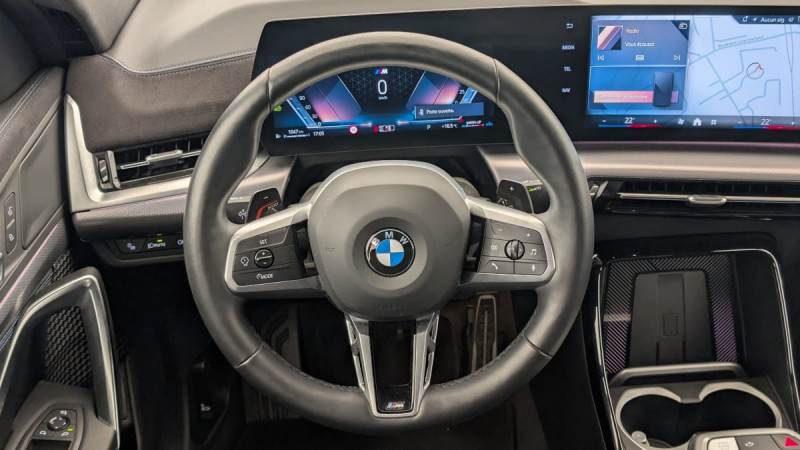 Teinte de carrosserie unie (Alpinweiss) / Frein de parking électromécanique avec fonction "Automatic Hold" / Airbag passager AV désactivable via la clé / Notice d'utilisation de la voiture intégrée et carnet d'entretien électronique avec BMW Service History / Lève-vitres AV/AR électriques avec commande par impulsion et sécurité enfants / Tuner DAB / Contrôle dynamique du freinage (DBC) / Spoiler AR noir brillant / 2 porte-gobelets sur la console centrale / Mesure individuelle de pression des pneumatiques / Triangle de présignalisation avec kit de premiers secours / Airbags de tête à l'AV et aux places latérales AR / Détecteur de pluie et allumage automatique des projecteurs / Ciel de pavillon M Anthracite / Eclairage de plaque d'immatriculation à LED / Feux AR à LED intégrant les clignotants / Contrôle de stabilité dynamique (DSC) avec dotation élargie / Volant M gainé cuir avec palettes pour changement de rapport / Boîte de vitesses automatique 7 rapports avec palettes au volant / Clignotants LED intégrés aux feux de jour / Eclairage de bienvenue autour du véhicule / Feux de sortie de porte AV (porte ouverte) / Sorties d'échappement non visibles / Accoudoir central AV avec panneau de commande intégré / Console centrale avec insert noir brillant / Fonction cargo : Réglage de l'inclinaison de la banquette AR à 12 degrés (volume de chargement supplémentaire d' environ 85-100 litres) / Buse de lave-glace pour caméra de recul / Prises de courant 12V dans la console centrale AV et dans le coffre / Stabilisation de remorque / Freinage de séchage / My Modes: 5 modes de conduite (Personnel, Efficient, Sport, Relax, Expressive) / Performance control : contrôle du moteur et interventions freinage pour améliorer l'agilité et la neutralité en virage / Capteur d'impact (Activation de l'airbag, des feux de détresse, de l'éclairage intérieur, Déverrouillage des portes, Activation de la borne batterie de sécurité) / Eléments extérieurs M Sport / Sélecteur de mode de conduite "Personal", "Efficient", "Sport", "Relax", "Expressive" / BMW EfficientDynamics Système de récupération de l'énergie au freinage, Fonction d'arrêt et de redémarrage automatique du moteur, Direction à assistance électrique Servotronic (assistance variable selon la vitesse) / Eléments intérieurs M Sport / Clés radiocommandées à mémorisation automatique des réglages "Personal Profile" (x 2) / Poignées de porte affleurantes / Airbag entre les deux sièges AV en cas de collision latérale / Sellerie Alcantara / Veganza "Schwarz" avec surpiqûres contrastantes bleues / Fonction Start&Stop automatique / Planche de bord en similicuir Sensatec Habillage de la planche de bord en Sensatec noir avec surpiqûres grise (surpiqûres bleues en combinaison avec une sellerie Alcantara / Sensatec), Parties supérieures du tableau de bord et du panneau de porte / BMW Digital (BMW Maps, RTTI sur itinéraire, Apple CarPlay, Android Auto, BMW Intelligent Personal Assistant) / Système de détection de somnolence (>70km/h) / BMW Live Cockpit Navigation Plus avec Écran BMW Curved Display / Capacité du reservoir augmentée Capacité augmentée de 9L / Jantes en alliage léger 19" style 871 M 8 J x 19 / pneus 245/45 R 19 Gris foncé. Bicolore Montage chaînes à neige impossible. / Shadow Line M brillant Equipements en noir brillant : Montants A, B, C . Encadrement extérieur des vitres latérales. Cadre de rétroviseurs / Moteur TwinPower Turbo diesel 4 cylindres Turbocompresseur,Injection directe Common Rail. Filtre à particule et catalyseur à oxydation. Réduction catalytique via injection d'AdBlue (SCR) .Réservoir 14L / Régulateur de vitesse avec fonction freinage (en descente) et limiteur de vitesse / Fixations ISOFIX / i-Size pour les deux sièges AR extérieurs / Assistant dynamique de motricité (DTC) / Active Guard Avertissement de franchissement de ligne. Avertisseur de collision frontale. Avertisseur de présence d'un véhicule lors d'un changement de direction vers la gauche. Avertisseur d'intersection. Avertisseur présence piéton/cycliste lors d'un virage en intersection. Assistance de limitation de vitesse. Assistance d'évitement en cas de risque de collision frontale / 3ème feu stop LED intégré au hayon AR / Compartiment à bagages : 2 crochets de sac, filet sur panneau gauche, prise 12V rangement additionel (volume spécifique au modèle) sous plancher amovible / Ecran BMW Curved Display / Kit rangement - bac de rangement dans les portes AV et AR avec porte-bouteille - compartiment de rangement central - compartiment de rangement avec couvercle rabattable sous l'accoudoir central AV - crochets de vêtements AR / Sièges conducteur et passager réglables manuellement : avance, hauteur et inclinaison du dossier / Kit de mobilité Plus - Bouteille avec liquide anti-crevaison - Compresseur avec alimentation autonome via batterie rechargeable - Système se fixant au centre de la jante avec maintient de pression automatique du pneu crevé durant la conduite - Simple d'utilisation et réduction du temps passé sur le lieu de la panne / Désignation du modèle "X2" sur le hayon à gauche et version à droite / Kit éclairage : Lampes de courtoisie, Eclairage intérieur de l'accoudoir central AV, Eclairage habitacle AV et AR, éclairage plancher AV et AR, éclairage du miroir de courtoisie , lampes de lecture centrales, éclairage du coffre à bagages sur un côté / Parking Assistant Système de manoeuvres de stationnemment en créneau et en bataille automatique, Caméra de recul avec lignes interactives de trajectoires. Fonction zoom pour attelage, Radars de recul AV & AR (PDC). Fonction PDC actif et aide au parking latéral, Assistant de marche AR "Auto-Reverse" sur 50m / Rétroviseurs extérieurs couleur carrosserie et chauffants avec rappels de clignotants intégrés / Verrouillage centralisé des portes, du coffre et de la trappe à carburant / Contrôle de freinage en 