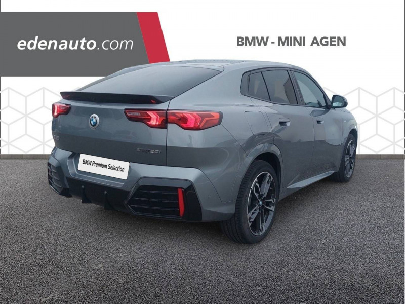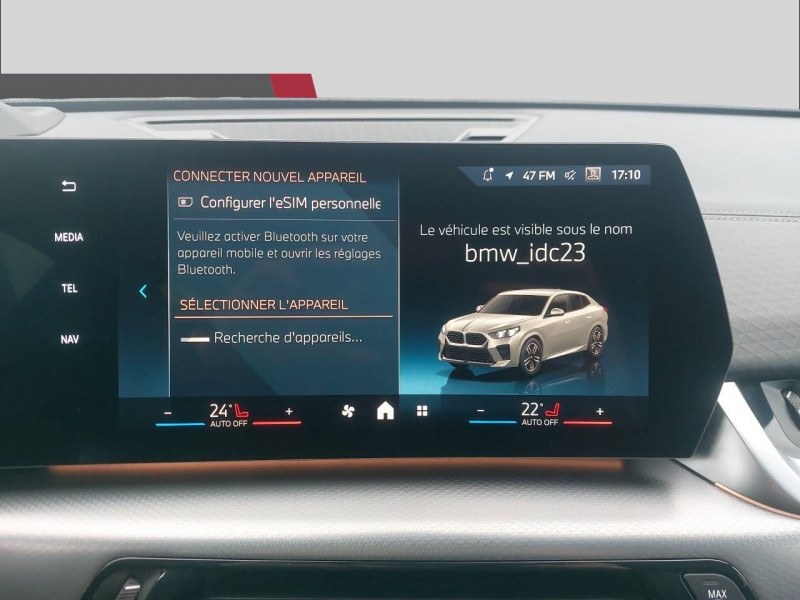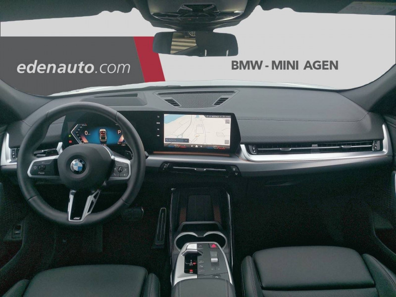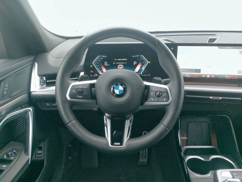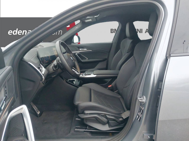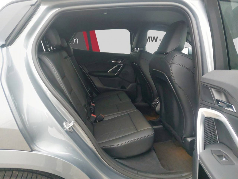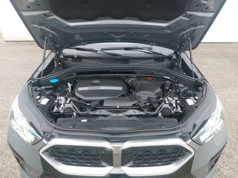 2 porte-gobelets sur la console centrale / 3ème feu stop LED intégré au hayon AR / 5 places / Accoudoir central AV avec panneau de commande intégré / Active Guard Avertissement de franchissement de ligne. Avertisseur de collision frontale. Avertisseur de présence d'un véhicule lors d'un changement de direction vers la gauche. Avertisseur d'intersection. Avertisseur présence piéton/cycliste lors d'un virage en intersection. Assistance de limitation de vitesse. Assistance d'évitement en cas de risque de collision frontale / Aides au stationnement Parking Assistant - Radars de stationnement AV et AR - Caméra de recul - Manoeuvres de stationnemment automatique en créneau et en bataille - Freinage automatique en marche AR - Assistant de marche AR/Auto-reverse / Airbag entre les deux sièges AV en cas de collision latérale / Airbag passager AV désactivable via la clé / Airbags de tête à l'AV et aux places latérales AR / Alarme antivol Surveillance des portes, coffre et capot moteur, protection de l'habitacle, détecteur de soulèvement et sirène. / Appel d'Urgence Intelligent (durée de vie de la voiture) Appel automatique vers le centre d'assistance BMW en cas d'accident. Touche SOS pour Appel d'Urgence manuel. Les données importantes sont automatiquement transmises aux secours : identification et localisation de la voiture, nombre de passagers à bord, statuts des airbags. Ce service utilise la carte SIM montée d'usine et ne requiert pas l'utilisation du smartphone. / Assistant dynamique de motricité (DTC) / BMW Digital (BMW Maps, RTTI sur itinéraire, Apple CarPlay, Android Auto, BMW Intelligent Personal Assistant) / BMW EfficientDynamics Système de récupération de l'énergie au freinage, Fonction d'arrêt et de redémarrage automatique du moteur, Direction à assistance électrique Servotronic (assistance variable selon la vitesse) / BMW Live Cockpit Navigation Plus avec Écran BMW Curved Display / Boîte de vitesses automatique 7 rapports avec palettes au volant / Buse de lave-glace pour caméra de recul / Capacité du reservoir augmentée Capacité augmentée de 9L / Capteur d'impact (Activation de l'airbag, des feux de détresse, de l'éclairage intérieur, Déverrouillage des portes, Activation de la borne batterie de sécurité) / Carte SIM 4G LTE pour les Services BMW ConnectedDrive / Ceintures de sécurité 3 points pour toutes les places / Ciel de pavillon M Anthracite / Clés radiocommandées à mémorisation automatique des réglages "Personal Profile" (x 2) / Clignotants LED intégrés aux feux de jour / Commande électrique du hayon / Compartiment à bagages : 2 crochets de sac, filet sur panneau gauche, prise 12V rangement additionel (volume spécifique au modèle) sous plancher amovible / Console centrale avec insert noir brillant / Contrôle de freinage en courbe CBC / Contrôle de stabilité dynamique (DSC) avec dotation élargie / Contrôle dynamique du freinage (DBC) / Désignation du modèle "X2" sur le hayon à gauche et version à droite / Détecteur de pluie et allumage automatique des projecteurs / Eclairage de bienvenue autour du véhicule / Eclairage de plaque d'immatriculation à LED / Ecran BMW Curved Display / Eléments extérieurs M Sport / Eléments intérieurs M Sport / Feux AR à LED intégrant les clignotants / Feux de sortie de porte AV (porte ouverte) / Fixations ISOFIX / i-Size pour les deux sièges AR extérieurs / Fonction cargo : Réglage de l'inclinaison de la banquette AR à 12 degrés (volume de chargement supplémentaire d' environ 85-100 litres) / Fonctionnalité "Follow Me Home" (éclairage d'accompagnement) : les feux de croisement restent allumés quelques instants une fois le contact coupé / Fonction Start&Stop automatique / Freinage de séchage / Frein de parking électromécanique avec fonction "Automatic Hold" / Grilles de calandre façon Mesh Effect avec contour cerclées de chrome / Hybridation légère (48V) / Inserts décoratifs Aluminium M Hexacube clair / Jantes en alliage léger 19" style 871 M 8 J x 19 / pneus 245/45 R 19 Gris foncé. Bicolore Montage chaînes à neige impossible. / Kit de mobilité Plus - Bouteille avec liquide anti-crevaison - Compresseur avec alimentation autonome via batterie rechargeable - Système se fixant au centre de la jante avec maintient de pression automatique du pneu crevé durant la conduite - Simple d'utilisation et réduction du temps passé sur le lieu de la panne / Kit éclairage : Lampes de courtoisie, Eclairage intérieur de l'accoudoir central AV, Eclairage habitacle AV et AR, éclairage plancher AV et AR, éclairage du miroir de courtoisie , lampes de lecture centrales, éclairage du coffre à bagages sur un côté / Kit rangement - bac de rangement dans les portes AV et AR avec porte-bouteille - compartiment de rangement central - compartiment de rangement avec couvercle rabattable sous l'accoudoir central AV - crochets de vêtements AR / Lève-vitres AV/AR électriques avec commande par impulsion et sécurité enfants / Mesure individuelle de pression des pneumatiques / Moteur TwinPower Turbo essence 3 cylindres - Turbocompresseur - Valvetronic (modification de la profondeur d'ouverture des soupapes d'admission) - Double VANOS (système de distribution variable) - Injection haute pression - Filtre à particules / My Modes: 5 modes de conduite (Personnel, Efficient, Sport, Relax, Expressive) / Norme General Safety Regulation 2 (GSR2) / Notice d'utilisation de la voiture intégrée et carnet d'entretien électronique avec BMW Service History / Ordinateur de bord avec Check-Control et indicateur de température extérieure / Performance control : contrôle du moteur et interventions freinage pour améliorer l'agilité et la neutralité en virage / Personal eSIM Personal eSIM est la version électronique, intégrée au véhicule, de la carte SIM traditionnelle. Vous l'utilisez via un abonnement souscrit auprès d'un opérateur téléphonique et transformez ainsi votre 