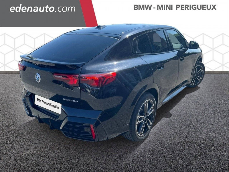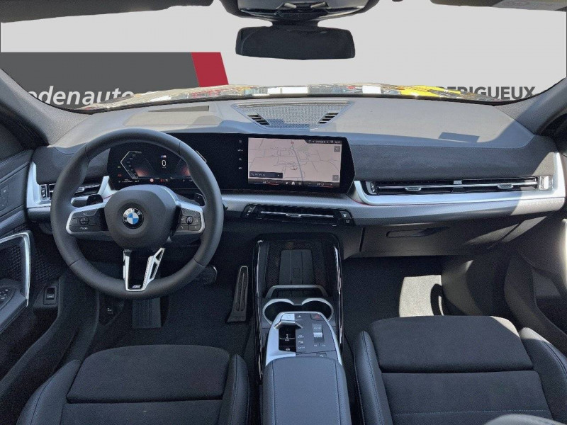 2 porte-gobelets sur la console centrale / 3ème feu stop LED intégré au hayon AR / 5 places / Accoudoir central AV avec panneau de commande intégré / Active Guard Avertissement de franchissement de ligne. Avertisseur de collision frontale. Avertisseur de présence d'un véhicule lors d'un changement de direction vers la gauche. Avertisseur d'intersection. Avertisseur présence piéton/cycliste lors d'un virage en intersection. Assistance de limitation de vitesse. Assistance d'évitement en cas de risque de collision frontale / Airbag entre les deux sièges AV en cas de collision latérale / Airbag passager AV désactivable via la clé / Airbags de tête à l'AV et aux places latérales AR / Alarme antivol Surveillance des portes, coffre et capot moteur, protection de l'habitacle, détecteur de soulèvement et sirène. / Appel d'Urgence Intelligent (durée de vie de la voiture) Appel automatique vers le centre d'assistance BMW en cas d'accident. Touche SOS pour Appel d'Urgence manuel. Les données importantes sont automatiquement transmises aux secours : identification et localisation de la voiture, nombre de passagers à bord, statuts des airbags. Ce service utilise la carte SIM montée d'usine et ne requiert pas l'utilisation du smartphone. / Assistant dynamique de motricité (DTC) / BMW Digital (BMW Maps, RTTI sur itinéraire, Apple CarPlay, Android Auto, BMW Intelligent Personal Assistant) / BMW EfficientDynamics Système de récupération de l'énergie au freinage, Fonction d'arrêt et de redémarrage automatique du moteur, Direction à assistance électrique Servotronic (assistance variable selon la vitesse) / BMW Live Cockpit Navigation Plus avec Écran BMW Curved Display / Boîte de vitesses automatique 7 rapports avec palettes au volant / Buse de lave-glace pour caméra de recul / Capacité du reservoir augmentée Capacité augmentée de 9L / Capteur d'impact (Activation de l'airbag, des feux de détresse, de l'éclairage intérieur, Déverrouillage des portes, Activation de la borne batterie de sécurité) / Carte SIM 4G LTE pour les Services BMW ConnectedDrive / Ceintures de sécurité 3 points pour toutes les places / Ciel de pavillon M Anthracite / Clés radiocommandées à mémorisation automatique des réglages "Personal Profile" (x 2) / Clignotants LED intégrés aux feux de jour / Commande électrique du hayon / Compartiment à bagages : 2 crochets de sac, filet sur panneau gauche, prise 12V rangement additionel (volume spécifique au modèle) sous plancher amovible / Console centrale avec insert noir brillant / Contrôle de freinage en courbe CBC / Contrôle de stabilité dynamique (DSC) avec dotation élargie / Contrôle dynamique du freinage (DBC) / Désignation du modèle "X2" sur le hayon à gauche et version à droite / Détecteur de pluie et allumage automatique des projecteurs / Eclairage de bienvenue autour du véhicule / Eclairage de plaque d'immatriculation à LED / Ecran BMW Curved Display / Eléments extérieurs M Sport / Eléments intérieurs M Sport / Feux AR à LED intégrant les clignotants / Feux de sortie de porte AV (porte ouverte) / Fixations ISOFIX / i-Size pour les deux sièges AR extérieurs / Fonction cargo : Réglage de l'inclinaison de la banquette AR à 12 degrés (volume de chargement supplémentaire d' environ 85-100 litres) / Fonctionnalité "Follow Me Home" (éclairage d'accompagnement) : les feux de croisement restent allumés quelques instants une fois le contact coupé / Fonction Start&Stop automatique / Freinage de séchage / Frein de parking électromécanique avec fonction "Automatic Hold" / Grilles de calandre façon Mesh Effect avec contour cerclées de chrome / Inserts décoratifs Aluminium M Hexacube clair / Jantes en alliage léger 19" style 871 M 8 J x 19 / pneus 245/45 R 19 Gris foncé. Bicolore Montage chaînes à neige impossible. / Kit de mobilité Plus - Bouteille avec liquide anti-crevaison - Compresseur avec alimentation autonome via batterie rechargeable - Système se fixant au centre de la jante avec maintient de pression automatique du pneu crevé durant la conduite - Simple d'utilisation et réduction du temps passé sur le lieu de la panne / Kit éclairage : Lampes de courtoisie, Eclairage intérieur de l'accoudoir central AV, Eclairage habitacle AV et AR, éclairage plancher AV et AR, éclairage du miroir de courtoisie , lampes de lecture centrales, éclairage du coffre à bagages sur un côté / Kit rangement - bac de rangement dans les portes AV et AR avec porte-bouteille - compartiment de rangement central - compartiment de rangement avec couvercle rabattable sous l'accoudoir central AV - crochets de vêtements AR / Lève-vitres AV/AR électriques avec commande par impulsion et sécurité enfants / Mesure individuelle de pression des pneumatiques / Moteur TwinPower Turbo diesel 4 cylindres Turbocompresseur,Injection directe Common Rail. Filtre à particule et catalyseur à oxydation. Réduction catalytique via injection d'AdBlue (SCR) .Réservoir 14L / My Modes: 5 modes de conduite (Personnel, Efficient, Sport, Relax, Expressive) / Norme General Safety Regulation 2 (GSR2) / Notice d'utilisation de la voiture intégrée et carnet d'entretien électronique avec BMW Service History / Ordinateur de bord avec Check-Control et indicateur de température extérieure / Parking Assistant Système de manoeuvres de stationnemment en créneau et en bataille automatique, Caméra de recul avec lignes interactives de trajectoires. Fonction zoom pour attelage, Radars de recul AV & AR (PDC). Fonction PDC actif et aide au parking latéral, Assistant de marche AR "Auto-Reverse" sur 50m / Performance control : contrôle du moteur et interventions freinage pour améliorer l'agilité et la neutralité en virage / Personal eSIM Personal eSIM est la version électronique, intégrée au véhicule, de la carte SIM traditionnelle. Vous l'utilisez via un abonnement souscrit auprès d'un opérateur téléphonique et transformez ainsi vo