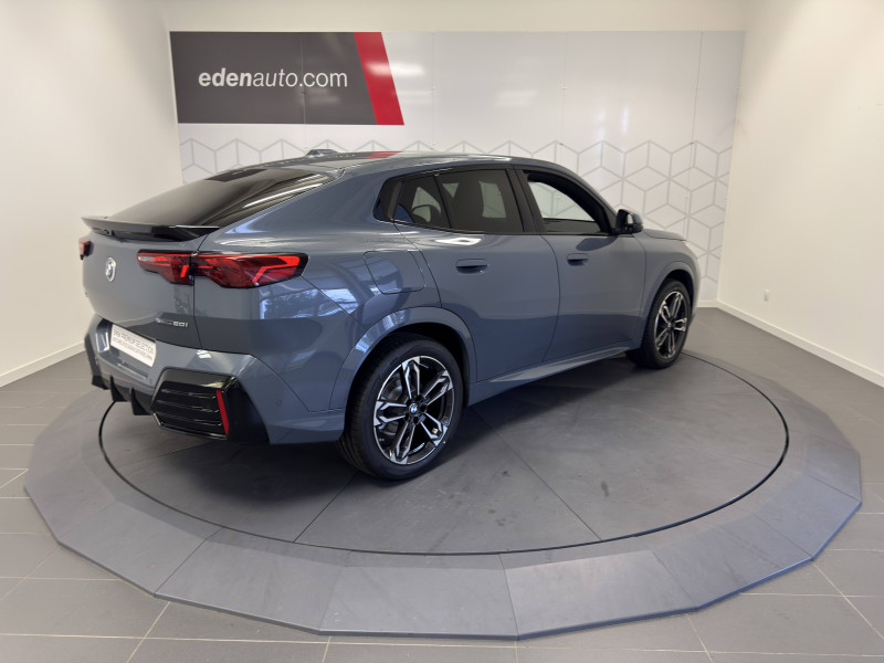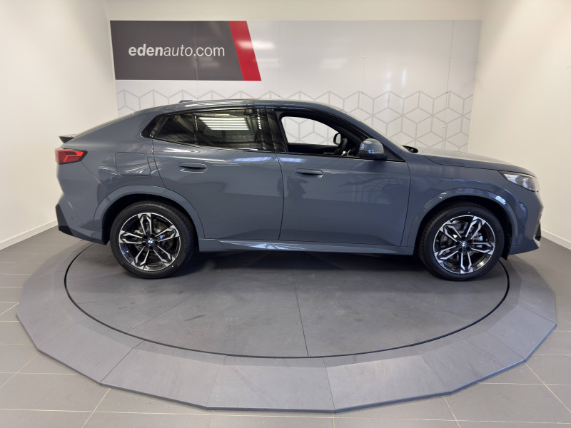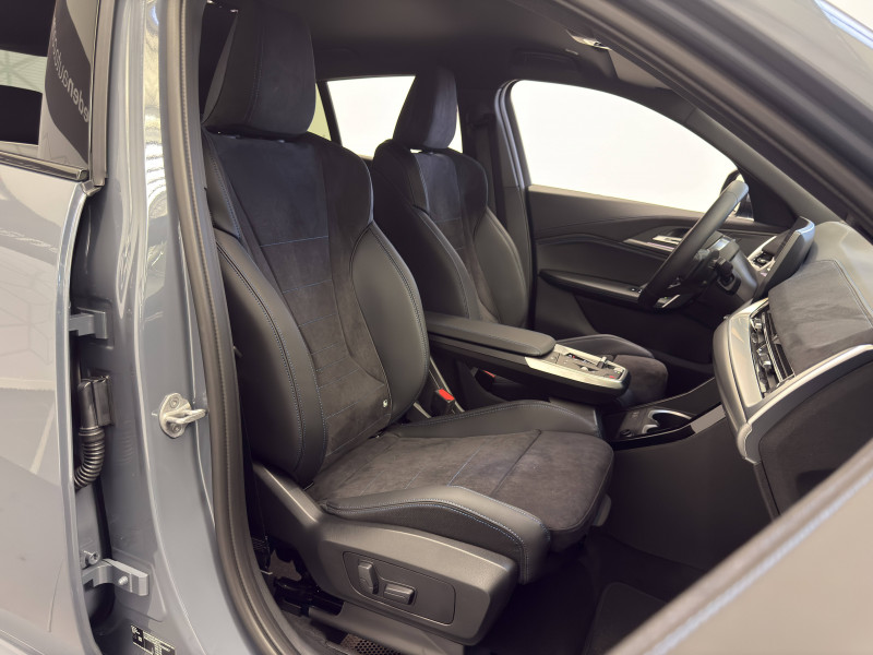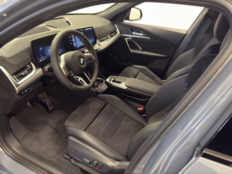 2 porte-gobelets sur la console centrale / 3ème feu stop LED intégré au hayon AR / 5 places / Accoudoir central AV avec panneau de commande intégré / Active Guard Avertissement de franchissement de ligne. Avertisseur de collision frontale. Avertisseur de présence d'un véhicule lors d'un changement de direction vers la gauche. Avertisseur d'intersection. Avertisseur présence piéton/cycliste lors d'un virage en intersection. Assistance de limitation de vitesse. Assistance d'évitement en cas de risque de collision frontale / Aides au stationnement Parking Assistant - Radars de stationnement AV et AR - Caméra de recul - Manoeuvres de stationnemment automatique en créneau et en bataille - Freinage automatique en marche AR - Assistant de marche AR/Auto-reverse / Airbag entre les deux sièges AV en cas de collision latérale / Airbag passager AV désactivable via la clé / Airbags de tête à l'AV et aux places latérales AR / Alarme antivol Surveillance des portes, coffre et capot moteur, protection de l'habitacle, détecteur de soulèvement et sirène. / Appel d'Urgence Intelligent (durée de vie de la voiture) Appel automatique vers le centre d'assistance BMW en cas d'accident. Touche SOS pour Appel d'Urgence manuel. Les données importantes sont automatiquement transmises aux secours : identification et localisation de la voiture, nombre de passagers à bord, statuts des airbags. Ce service utilise la carte SIM montée d'usine et ne requiert pas l'utilisation du smartphone. / Assistant dynamique de motricité (DTC) / BMW Digital (BMW Maps, RTTI sur itinéraire, Apple CarPlay, Android Auto, BMW Intelligent Personal Assistant) / BMW EfficientDynamics Système de récupération de l'énergie au freinage, Fonction d'arrêt et de redémarrage automatique du moteur, Direction à assistance électrique Servotronic (assistance variable selon la vitesse) / BMW Live Cockpit Navigation Plus avec Écran BMW Curved Display / Boîte de vitesses automatique 7 rapports avec palettes au volant / Buse de lave-glace pour caméra de recul / Capacité du reservoir augmentée Capacité augmentée de 9L / Capteur d'impact (Activation de l'airbag, des feux de détresse, de l'éclairage intérieur, Déverrouillage des portes, Activation de la borne batterie de sécurité) / Carte SIM 4G LTE pour les Services BMW ConnectedDrive / Ceintures de sécurité 3 points pour toutes les places / Ciel de pavillon M Anthracite / Clés radiocommandées à mémorisation automatique des réglages "Personal Profile" (x 2) / Clignotants LED intégrés aux feux de jour / Commande électrique du hayon / Compartiment à bagages : 2 crochets de sac, filet sur panneau gauche, prise 12V rangement additionel (volume spécifique au modèle) sous plancher amovible / Console centrale avec insert noir brillant / Contrôle de freinage en courbe CBC / Contrôle de stabilité dynamique (DSC) avec dotation élargie / Contrôle dynamique du freinage (DBC) / Désignation du modèle "X2" sur le hayon à gauche et version à droite / Détecteur de pluie et allumage automatique des projecteurs / Eclairage de bienvenue autour du véhicule / Eclairage de plaque d'immatriculation à LED / Ecran BMW Curved Display / Eléments extérieurs M Sport / Eléments intérieurs M Sport / Feux AR à LED intégrant les clignotants / Feux de sortie de porte AV (porte ouverte) / Fixations ISOFIX / i-Size pour les deux sièges AR extérieurs / Fonction cargo : Réglage de l'inclinaison de la banquette AR à 12 degrés (volume de chargement supplémentaire d' environ 85-100 litres) / Fonctionnalité "Follow Me Home" (éclairage d'accompagnement) : les feux de croisement restent allumés quelques instants une fois le contact coupé / Fonction Start&Stop automatique / Freinage de séchage / Frein de parking électromécanique avec fonction "Automatic Hold" / Grilles de calandre façon Mesh Effect avec contour cerclées de chrome / Hybridation légère (48V) / Inserts décoratifs Aluminium M Hexacube clair / Jantes en alliage léger 19" style 871 M 8 J x 19 / pneus 245/45 R 19 Gris foncé. Bicolore Montage chaînes à neige impossible. / Kit de mobilité Plus - Bouteille avec liquide anti-crevaison - Compresseur avec alimentation autonome via batterie rechargeable - Système se fixant au centre de la jante avec maintient de pression automatique du pneu crevé durant la conduite - Simple d'utilisation et réduction du temps passé sur le lieu de la panne / Kit éclairage : Lampes de courtoisie, Eclairage intérieur de l'accoudoir central AV, Eclairage habitacle AV et AR, éclairage plancher AV et AR, éclairage du miroir de courtoisie , lampes de lecture centrales, éclairage du coffre à bagages sur un côté / Kit rangement - bac de rangement dans les portes AV et AR avec porte-bouteille - compartiment de rangement central - compartiment de rangement avec couvercle rabattable sous l'accoudoir central AV - crochets de vêtements AR / Lève-vitres AV/AR électriques avec commande par impulsion et sécurité enfants / Mesure individuelle de pression des pneumatiques / Moteur TwinPower Turbo essence 3 cylindres - Turbocompresseur - Valvetronic (modification de la profondeur d'ouverture des soupapes d'admission) - Double VANOS (système de distribution variable) - Injection haute pression - Filtre à particules / My Modes: 5 modes de conduite (Personnel, Efficient, Sport, Relax, Expressive) / Norme General Safety Regulation 2 (GSR2) / Notice d'utilisation de la voiture intégrée et carnet d'entretien électronique avec BMW Service History / Ordinateur de bord avec Check-Control et indicateur de température extérieure / Performance control : contrôle du moteur et interventions freinage pour améliorer l'agilité et la neutralité en virage / Personal eSIM Personal eSIM est la version électronique, intégrée au véhicule, de la carte SIM traditionnelle. Vous l'utilisez via un abonnement souscrit auprès d'un opérateur téléphonique et transformez ainsi votre 