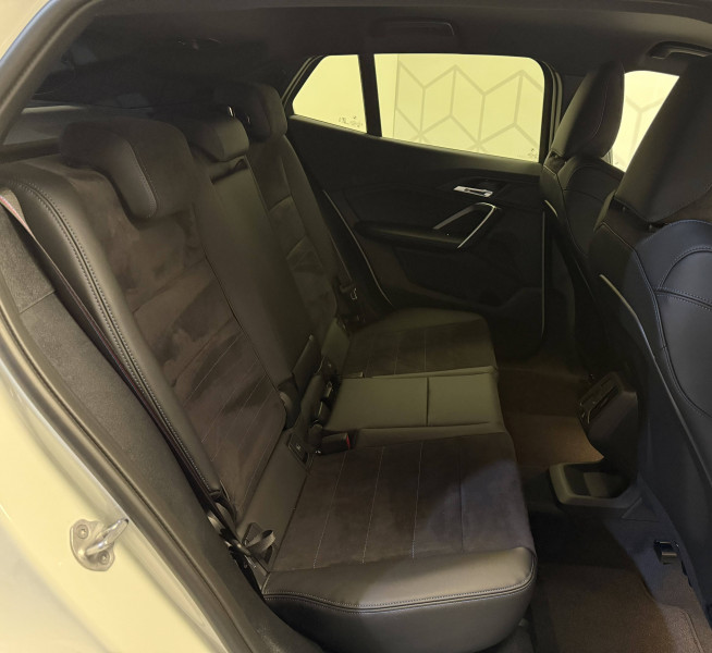 2 porte-gobelets sur la console centrale / 3ème feu stop LED intégré au hayon AR / 5 places / Accoudoir central AV avec panneau de commande intégré / Active Guard Avertissement de franchissement de ligne. Avertisseur de collision frontale. Avertisseur de présence d'un véhicule lors d'un changement de direction vers la gauche. Avertisseur d'intersection. Avertisseur présence piéton/cycliste lors d'un virage en intersection. Assistance de limitation de vitesse. Assistance d'évitement en cas de risque de collision frontale / Aides au stationnement Parking Assistant - Radars de stationnement AV et AR - Caméra de recul - Manoeuvres de stationnemment automatique en créneau et en bataille - Freinage automatique en marche AR - Assistant de marche AR/Auto-reverse / Airbag entre les deux sièges AV en cas de collision latérale / Airbag passager AV désactivable via la clé / Airbags de tête à l'AV et aux places latérales AR / Alarme antivol Surveillance des portes, coffre et capot moteur, protection de l'habitacle, détecteur de soulèvement et sirène. / Appel d'Urgence Intelligent (durée de vie de la voiture) Appel automatique vers le centre d'assistance BMW en cas d'accident. Touche SOS pour Appel d'Urgence manuel. Les données importantes sont automatiquement transmises aux secours : identification et localisation de la voiture, nombre de passagers à bord, statuts des airbags. Ce service utilise la carte SIM montée d'usine et ne requiert pas l'utilisation du smartphone. / Assistant dynamique de motricité (DTC) / BMW Digital (BMW Maps, RTTI sur itinéraire, Apple CarPlay, Android Auto, BMW Intelligent Personal Assistant) / BMW EfficientDynamics Système de récupération de l'énergie au freinage, Fonction d'arrêt et de redémarrage automatique du moteur, Direction à assistance électrique Servotronic (assistance variable selon la vitesse) / BMW Live Cockpit Navigation Plus avec Écran BMW Curved Display / Boîte de vitesses automatique 7 rapports avec palettes au volant / Buse de lave-glace pour caméra de recul / Capacité du reservoir augmentée Capacité augmentée de 9L / Capteur d'impact (Activation de l'airbag, des feux de détresse, de l'éclairage intérieur, Déverrouillage des portes, Activation de la borne batterie de sécurité) / Carte SIM 4G LTE pour les Services BMW ConnectedDrive / Ceintures de sécurité 3 points pour toutes les places / Ciel de pavillon M Anthracite / Clés radiocommandées à mémorisation automatique des réglages "Personal Profile" (x 2) / Clignotants LED intégrés aux feux de jour / Commande électrique du hayon / Compartiment à bagages : 2 crochets de sac, filet sur panneau gauche, prise 12V rangement additionel (volume spécifique au modèle) sous plancher amovible / Console centrale avec insert noir brillant / Contrôle de freinage en courbe CBC / Contrôle de stabilité dynamique (DSC) avec dotation élargie / Contrôle dynamique du freinage (DBC) / Désignation du modèle "X2" sur le hayon à gauche et version à droite / Détecteur de pluie et allumage automatique des projecteurs / Eclairage de bienvenue autour du véhicule / Eclairage de plaque d'immatriculation à LED / Ecran BMW Curved Display / Eléments extérieurs M Sport / Eléments intérieurs M Sport / Feux AR à LED intégrant les clignotants / Feux de sortie de porte AV (porte ouverte) / Fixations ISOFIX / i-Size pour les deux sièges AR extérieurs / Fonction cargo : Réglage de l'inclinaison de la banquette AR à 12 degrés (volume de chargement supplémentaire d' environ 85-100 litres) / Fonctionnalité "Follow Me Home" (éclairage d'accompagnement) : les feux de croisement restent allumés quelques instants une fois le contact coupé / Fonction Start&Stop automatique / Freinage de séchage / Frein de parking électromécanique avec fonction "Automatic Hold" / Grilles de calandre façon Mesh Effect avec contour cerclées de chrome / Hybridation légère (48V) / Inserts décoratifs Aluminium M Hexacube clair / Jantes en alliage léger 19" style 871 M 8 J x 19 / pneus 245/45 R 19 Gris foncé. Bicolore Montage chaînes à neige impossible. / Kit de mobilité Plus - Bouteille avec liquide anti-crevaison - Compresseur avec alimentation autonome via batterie rechargeable - Système se fixant au centre de la jante avec maintient de pression automatique du pneu crevé durant la conduite - Simple d'utilisation et réduction du temps passé sur le lieu de la panne / Kit éclairage : Lampes de courtoisie, Eclairage intérieur de l'accoudoir central AV, Eclairage habitacle AV et AR, éclairage plancher AV et AR, éclairage du miroir de courtoisie , lampes de lecture centrales, éclairage du coffre à bagages sur un côté / Kit rangement - bac de rangement dans les portes AV et AR avec porte-bouteille - compartiment de rangement central - compartiment de rangement avec couvercle rabattable sous l'accoudoir central AV - crochets de vêtements AR / Lève-vitres AV/AR électriques avec commande par impulsion et sécurité enfants / Mesure individuelle de pression des pneumatiques / Moteur TwinPower Turbo essence 3 cylindres - Turbocompresseur - Valvetronic (modification de la profondeur d'ouverture des soupapes d'admission) - Double VANOS (système de distribution variable) - Injection haute pression - Filtre à particules / My Modes: 5 modes de conduite (Personnel, Efficient, Sport, Relax, Expressive) / Norme General Safety Regulation 2 (GSR2) / Notice d'utilisation de la voiture intégrée et carnet d'entretien électronique avec BMW Service History / Ordinateur de bord avec Check-Control et indicateur de température extérieure / Performance control : contrôle du moteur et interventions freinage pour améliorer l'agilité et la neutralité en virage / Personal eSIM Personal eSIM est la version électronique, intégrée au véhicule, de la carte SIM traditionnelle. Vous l'utilisez via un abonnement souscrit auprès d'un opérateur téléphonique et transformez ainsi votre 
