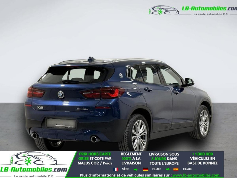 Référence : 1135539 Vos Avantages chez LB-AUTOMOBILES.com / Prix affiché TTC Livré hors carte grise / Livraison sous 10 jours dans toute la France hors 31 / Pas d?avance de frais paiement du véhicule 100% à la livraison par virement. BMW X2 Neuf remisée, BMW X2 Occasion Toulouse Beaupuy 31850, BMW X2 Véhicule sorti de réseau collaborateur, BMW X2 import, BMW X2 importateur, BMW X2 Livraison possible dans toute la France sous 5 jours, BMW X2, BMW X2 Location Option Achat, BMW X2 LLD, BMW X2 Longue Durée, BMW X2 TVA récupérable. Possibilité d'extension de garantie 12, 24,36 mois, Pour tout autres voitures import neufs ou occasions collaborateur fortement remisée, Mandataire Audi, Mandataire BMW, Mandataire Volkswagen, Mandataire Mercedes, Mandataire Peugeot Espagne, Mandataire Renault Espagne, Porsche import, Mandataire Citroën Espagne, Mandataire Seat Espagne, n'hésitez pas à nous contacter. « Sous réserve de vente préalable et erreur de saisie » Principaux équipements : - ABS - Accoudoir - Antidémarrage - Assistance au freinage d'urgence - Assistance de démarrage en côte - Attache remorque détachable - Bluetooth - Capteur de lumière - Capteur de pluie - Carnet d'entretien - Commande vocale - Contrôle de la pression des pneus - Diesel avec filtre à particules - Direction assistée - Éclairage adaptatif - Éclairage d'ambiance - ESP - Fermeture centralisée - Feux de jour LED - Galerie de toit - Garantie - GPS - Grille de protection pour coffre - Hayon électrique - Isofix - Jantes alliage - Kit mains libres - Ordinateur de bord - Phares LED - Pneus été - Port USB - Radio DAB - Régulateur de vitesse - Rétroviseur extérieur électrique - Rétroviseur intérieur anti-éblouissement automatique - Sièges chauffants - Sièges sport - Streaming musical intégré - Support lombaire - Système antipatinage - Système d'appel d'urgence - Système d'avertissement de la distance - Système de détection de la fatigue - Système de limitation de la vitesse - Système de reconnaissance des panneaux de signalisation - Système Stop & Start - Tuner/radio - Véhicule non-fumeur - Vitres électriques - Volant en cuir - Volant multifonction