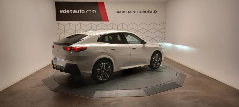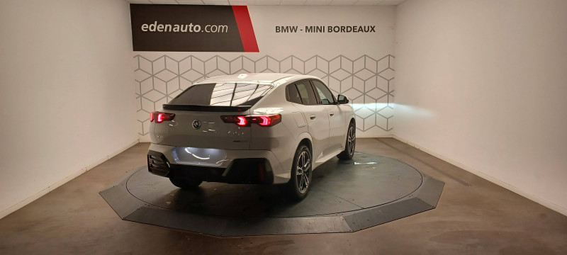 2 porte-gobelets sur la console centrale / 3ème feu stop LED intégré au hayon AR / 5 places / Accoudoir central AV avec panneau de commande intégré / Active Guard Avertissement de franchissement de ligne. Avertisseur de collision frontale. Avertisseur de présence d'un véhicule lors d'un changement de direction vers la gauche. Avertisseur d'intersection. Avertisseur présence piéton/cycliste lors d'un virage en intersection. Assistance de limitation de vitesse. Assistance d'évitement en cas de risque de collision frontale / Aides au stationnement Parking Assistant - Radars de stationnement AV et AR - Caméra de recul - Manoeuvres de stationnemment automatique en créneau et en bataille - Freinage automatique en marche AR - Assistant de marche AR/Auto-reverse / Airbag entre les deux sièges AV en cas de collision latérale / Airbag passager AV désactivable via la clé / Airbags de tête à l'AV et aux places latérales AR / Alarme antivol Surveillance des portes, coffre et capot moteur, protection de l'habitacle, détecteur de soulèvement et sirène. / Appel d'Urgence Intelligent (durée de vie de la voiture) Appel automatique vers le centre d'assistance BMW en cas d'accident. Touche SOS pour Appel d'Urgence manuel. Les données importantes sont automatiquement transmises aux secours : identification et localisation de la voiture, nombre de passagers à bord, statuts des airbags. Ce service utilise la carte SIM montée d'usine et ne requiert pas l'utilisation du smartphone. / Assistant dynamique de motricité (DTC) / BMW Digital (BMW Maps, RTTI sur itinéraire, Apple CarPlay, Android Auto, BMW Intelligent Personal Assistant) / BMW EfficientDynamics Système de récupération de l'énergie au freinage, Fonction d'arrêt et de redémarrage automatique du moteur, Direction à assistance électrique Servotronic (assistance variable selon la vitesse) / BMW Live Cockpit Navigation Plus avec Écran BMW Curved Display / Boîte de vitesses automatique 7 rapports avec palettes au volant / Boîte de vitesses automatique à double embrayage Sport DKG7 à 7 rapports avec palettes au volant / Buse de lave-glace pour caméra de recul / Capacité du reservoir augmentée Capacité augmentée de 9L / Capteur d'impact (Activation de l'airbag, des feux de détresse, de l'éclairage intérieur, Déverrouillage des portes, Activation de la borne batterie de sécurité) / Carte SIM 4G LTE pour les Services BMW ConnectedDrive / Ceintures de sécurité 3 points pour toutes les places / Ciel de pavillon M Anthracite / Clés radiocommandées à mémorisation automatique des réglages "Personal Profile" (x 2) / Clignotants LED intégrés aux feux de jour / Commande électrique du hayon / Compartiment à bagages : 2 crochets de sac, filet sur panneau gauche, prise 12V rangement additionel (volume spécifique au modèle) sous plancher amovible / Console centrale avec insert noir brillant / Contrôle de freinage en courbe CBC / Contrôle de stabilité dynamique (DSC) avec dotation élargie / Contrôle dynamique du freinage (DBC) / Désignation du modèle "X2" sur le hayon à gauche et version à droite / Détecteur de pluie et allumage automatique des projecteurs / Eclairage de bienvenue autour du véhicule / Eclairage de plaque d'immatriculation à LED / Ecran BMW Curved Display / Eléments extérieurs M Sport / Eléments intérieurs M Sport / Feux AR à LED intégrant les clignotants / Feux de sortie de porte AV (porte ouverte) / Fixations ISOFIX / i-Size pour les deux sièges AR extérieurs / Fonction cargo : Réglage de l'inclinaison de la banquette AR à 12 degrés (volume de chargement supplémentaire d' environ 85-100 litres) / Fonctionnalité "Follow Me Home" (éclairage d'accompagnement) : les feux de croisement restent allumés quelques instants une fois le contact coupé / Fonction Start&Stop automatique / Freinage de séchage / Frein de parking électromécanique avec fonction "Automatic Hold" / Grilles de calandre façon Mesh Effect avec contour cerclées de chrome / Hybridation légère (48V) / Inserts décoratifs Aluminium M Hexacube clair / Jantes en alliage léger 19" style 871 M 8 J x 19 / pneus 245/45 R 19 Gris foncé. Bicolore Montage chaînes à neige impossible. / Kit de mobilité Plus - Bouteille avec liquide anti-crevaison - Compresseur avec alimentation autonome via batterie rechargeable - Système se fixant au centre de la jante avec maintient de pression automatique du pneu crevé durant la conduite - Simple d'utilisation et réduction du temps passé sur le lieu de la panne / Kit éclairage : Lampes de courtoisie, Eclairage intérieur de l'accoudoir central AV, Eclairage habitacle AV et AR, éclairage plancher AV et AR, éclairage du miroir de courtoisie , lampes de lecture centrales, éclairage du coffre à bagages sur un côté / Kit rangement - bac de rangement dans les portes AV et AR avec porte-bouteille - compartiment de rangement central - compartiment de rangement avec couvercle rabattable sous l'accoudoir central AV - crochets de vêtements AR / Lève-vitres AV/AR électriques avec commande par impulsion et sécurité enfants / Mesure individuelle de pression des pneumatiques / Moteur TwinPower Turbo essence 3 cylindres - Turbocompresseur - Valvetronic (modification de la profondeur d'ouverture des soupapes d'admission) - Double VANOS (système de distribution variable) - Injection haute pression - Filtre à particules / My Modes: 5 modes de conduite (Personnel, Efficient, Sport, Relax, Expressive) / Norme General Safety Regulation 2 (GSR2) / Notice d'utilisation de la voiture intégrée et carnet d'entretien électronique avec BMW Service History / Ordinateur de bord avec Check-Control et indicateur de température extérieure / Performance control : contrôle du moteur et interventions freinage pour améliorer l'agilité et la neutralité en virage / Personal eSIM Personal eSIM est la version électronique, intégrée au véhicule, de la carte SIM traditionnelle. Vous l'