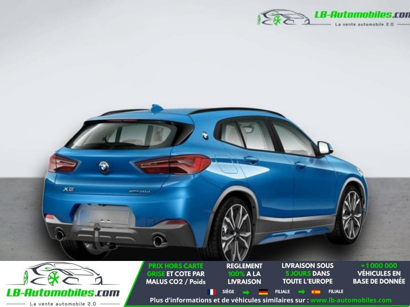 Référence : 1183053 Vos Avantages chez LB-AUTOMOBILES.com / Prix affiché TTC Livré hors carte grise / Livraison sous 10 jours dans toute la France hors 31 / Pas d?avance de frais paiement du véhicule 100% à la livraison par virement. BMW X2 Neuf remisée, BMW X2 Occasion Toulouse Beaupuy 31850, BMW X2 Véhicule sorti de réseau collaborateur, BMW X2 import, BMW X2 importateur, BMW X2 Livraison possible dans toute la France sous 5 jours, BMW X2, BMW X2 Location Option Achat, BMW X2 LLD, BMW X2 Longue Durée, BMW X2 TVA récupérable. Possibilité d'extension de garantie 12, 24,36 mois, Pour tout autres voitures import neufs ou occasions collaborateur fortement remisée, Mandataire Audi, Mandataire BMW, Mandataire Volkswagen, Mandataire Mercedes, Mandataire Peugeot Espagne, Mandataire Renault Espagne, Porsche import, Mandataire Citroën Espagne, Mandataire Seat Espagne, n'hésitez pas à nous contacter. « Sous réserve de vente préalable et erreur de saisie » Principaux équipements : - 4x4 - ABS - Accoudoir - Affichage tête haute - Antidémarrage - Assistance au freinage d'urgence - Assistance de démarrage en côte - Assistant feux de route - Attache remorque détachable - Avertisseur de franchissement de ligne - Bluetooth - Capteur de lumière - Capteur de pluie - Carnet d'entretien - Commande vocale - Contrôle de la pression des pneus - Diesel avec filtre à particules - Direction assistée - ESP - Fermeture centralisée - Feux de jour LED - Galerie de toit - Garantie - GPS - Hayon électrique - Isofix - Jantes alliage - Kit de préparation pour système de navigation - Kit mains libres - Lecteur CD - Ordinateur de bord - Phare antibrouillard - Phares LED - Port USB - Radio DAB - Réglage électrique des sièges - Réglage électrique des sièges avec fonction mémoire - Régulateur de vitesse adaptatif - Rétroviseur extérieur électrique - Rétroviseur intérieur anti-éblouissement automatique - Rétroviseurs extérieurs rabattables électriquement - Sièges chauffants - Sièges sport - Support lombaire - Suspension sport - Système antipatinage - Système d'alarme - Système d'appel d'urgence - Système d'avertissement de la distance - Système de détection de la fatigue - Système de limitation de la vitesse - Système de reconnaissance des panneaux de signalisation - Système de sonorisation - Système Stop & Start - Toit ouvrant - Toit panoramique - Tuner/radio - Véhicule non-fumeur - Vitres électriques - Volant en cuir - Volant multifonction