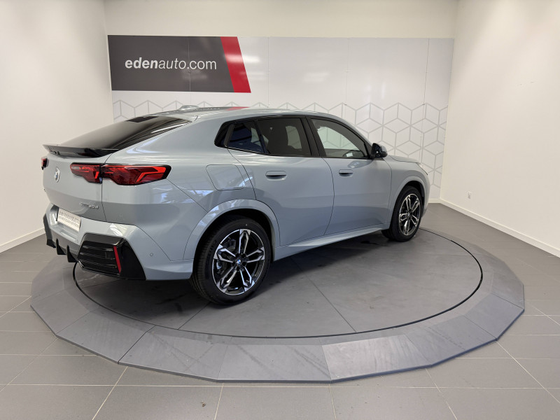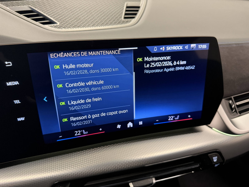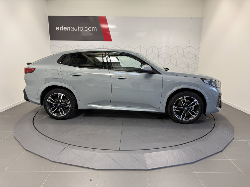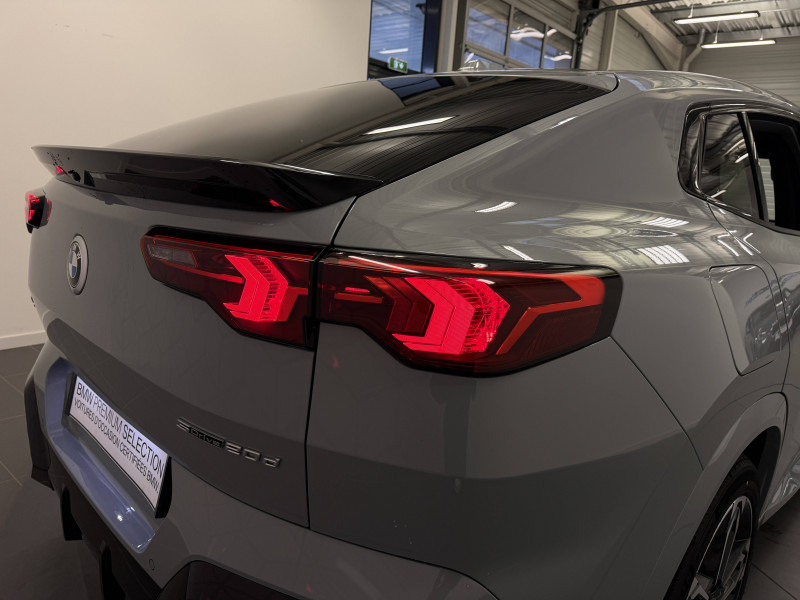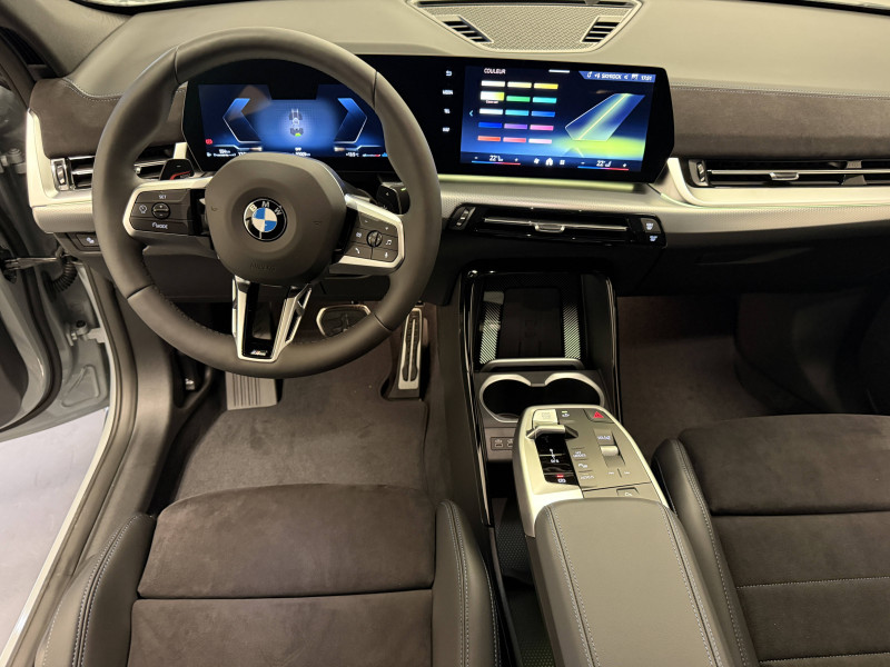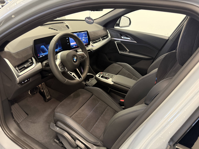 2 porte-gobelets sur la console centrale / 3ème feu stop LED intégré au hayon AR / 5 places / Accoudoir central AV avec panneau de commande intégré / Active Guard Avertissement de franchissement de ligne. Avertisseur de collision frontale. Avertisseur de présence d'un véhicule lors d'un changement de direction vers la gauche. Avertisseur d'intersection. Avertisseur présence piéton/cycliste lors d'un virage en intersection. Assistance de limitation de vitesse. Assistance d'évitement en cas de risque de collision frontale / Aides au stationnement Parking Assistant - Radars de stationnement AV et AR - Caméra de recul - Manoeuvres de stationnemment automatique en créneau et en bataille - Freinage automatique en marche AR - Assistant de marche AR/Auto-reverse / Airbag entre les deux sièges AV en cas de collision latérale / Airbag passager AV désactivable via la clé / Airbags de tête à l'AV et aux places latérales AR / Alarme antivol Surveillance des portes, coffre et capot moteur, protection de l'habitacle, détecteur de soulèvement et sirène. / Appel d'Urgence Intelligent (durée de vie de la voiture) Appel automatique vers le centre d'assistance BMW en cas d'accident. Touche SOS pour Appel d'Urgence manuel. Les données importantes sont automatiquement transmises aux secours : identification et localisation de la voiture, nombre de passagers à bord, statuts des airbags. Ce service utilise la carte SIM montée d'usine et ne requiert pas l'utilisation du smartphone. / Assistant dynamique de motricité (DTC) / BMW Digital (BMW Maps, RTTI sur itinéraire, Apple CarPlay, Android Auto, BMW Intelligent Personal Assistant) / BMW EfficientDynamics Système de récupération de l'énergie au freinage, Fonction d'arrêt et de redémarrage automatique du moteur, Direction à assistance électrique Servotronic (assistance variable selon la vitesse) / BMW Live Cockpit Navigation Plus avec Écran BMW Curved Display / Boîte de vitesses automatique 7 rapports avec palettes au volant / Boîte de vitesses automatique à double embrayage Sport DKG7 à 7 rapports avec palettes au volant / Buse de lave-glace pour caméra de recul / Capacité du reservoir augmentée Capacité augmentée de 9L / Capteur d'impact (Activation de l'airbag, des feux de détresse, de l'éclairage intérieur, Déverrouillage des portes, Activation de la borne batterie de sécurité) / Carte SIM 4G LTE pour les Services BMW ConnectedDrive / Ceintures de sécurité 3 points pour toutes les places / Ciel de pavillon M Anthracite / Clés radiocommandées à mémorisation automatique des réglages "Personal Profile" (x 2) / Clignotants LED intégrés aux feux de jour / Commande électrique du hayon / Compartiment à bagages : 2 crochets de sac, filet sur panneau gauche, prise 12V rangement additionel (volume spécifique au modèle) sous plancher amovible / Console centrale avec insert noir brillant / Contrôle de freinage en courbe CBC / Contrôle de stabilité dynamique (DSC) avec dotation élargie / Contrôle dynamique du freinage (DBC) / Désignation du modèle "X2" sur le hayon à gauche et version à droite / Détecteur de pluie et allumage automatique des projecteurs / Eclairage de bienvenue autour du véhicule / Eclairage de plaque d'immatriculation à LED / Ecran BMW Curved Display / Eléments extérieurs M Sport / Eléments intérieurs M Sport / Feux AR à LED intégrant les clignotants / Feux de sortie de porte AV (porte ouverte) / Fixations ISOFIX / i-Size pour les deux sièges AR extérieurs / Fonction cargo : Réglage de l'inclinaison de la banquette AR à 12 degrés (volume de chargement supplémentaire d' environ 85-100 litres) / Fonctionnalité "Follow Me Home" (éclairage d'accompagnement) : les feux de croisement restent allumés quelques instants une fois le contact coupé / Fonction Start&Stop automatique / Freinage de séchage / Frein de parking électromécanique avec fonction "Automatic Hold" / Grilles de calandre façon Mesh Effect avec contour cerclées de chrome / Hybridation légère (48V) / Inserts décoratifs Aluminium M Hexacube clair / Jantes en alliage léger 19" style 871 M 8 J x 19 / pneus 245/45 R 19 Gris foncé. Bicolore Montage chaînes à neige impossible. / Kit de mobilité Plus - Bouteille avec liquide anti-crevaison - Compresseur avec alimentation autonome via batterie rechargeable - Système se fixant au centre de la jante avec maintient de pression automatique du pneu crevé durant la conduite - Simple d'utilisation et réduction du temps passé sur le lieu de la panne / Kit éclairage : Lampes de courtoisie, Eclairage intérieur de l'accoudoir central AV, Eclairage habitacle AV et AR, éclairage plancher AV et AR, éclairage du miroir de courtoisie , lampes de lecture centrales, éclairage du coffre à bagages sur un côté / Kit rangement - bac de rangement dans les portes AV et AR avec porte-bouteille - compartiment de rangement central - compartiment de rangement avec couvercle rabattable sous l'accoudoir central AV - crochets de vêtements AR / Lève-vitres AV/AR électriques avec commande par impulsion et sécurité enfants / Mesure individuelle de pression des pneumatiques / My Modes: 5 modes de conduite (Personnel, Efficient, Sport, Relax, Expressive) / Norme General Safety Regulation 2 (GSR2) / Notice d'utilisation de la voiture intégrée et carnet d'entretien électronique avec BMW Service History / Ordinateur de bord avec Check-Control et indicateur de température extérieure / Performance control : contrôle du moteur et interventions freinage pour améliorer l'agilité et la neutralité en virage / Personal eSIM Personal eSIM est la version électronique, intégrée au véhicule, de la carte SIM traditionnelle. Vous l'utilisez via un abonnement souscrit auprès d'un opérateur téléphonique et transformez ainsi votre BMW en périphérique mobile supplémentaire : - Connectivité en 5G - Meilleure qualité de connexion grâce aux antennes de la voiture - Connexi
