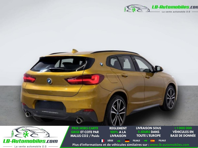 Référence : 1210063 Vos Avantages chez LB-AUTOMOBILES.com / Prix affiché TTC Livré hors carte grise / Livraison sous 10 jours dans toute la France hors 31 / Pas d?avance de frais paiement du véhicule 100% à la livraison par virement. BMW X2 Neuf remisée, BMW X2 Occasion Toulouse Beaupuy 31850, BMW X2 Véhicule sorti de réseau collaborateur, BMW X2 import, BMW X2 importateur, BMW X2 Livraison possible dans toute la France sous 5 jours, BMW X2, BMW X2 Location Option Achat, BMW X2 LLD, BMW X2 Longue Durée, BMW X2 TVA récupérable. Possibilité d'extension de garantie 12, 24,36 mois, Pour tout autres voitures import neufs ou occasions collaborateur fortement remisée, Mandataire Audi, Mandataire BMW, Mandataire Volkswagen, Mandataire Mercedes, Mandataire Peugeot Espagne, Mandataire Renault Espagne, Porsche import, Mandataire Citroën Espagne, Mandataire Seat Espagne, n'hésitez pas à nous contacter. « Sous réserve de vente préalable et erreur de saisie » Principaux équipements : - 4x4 - ABS - Accoudoir - Antidémarrage - Bluetooth - Capteur de lumière - Capteur de pluie - Contrôle de la pression des pneus - Diesel avec filtre à particules - Direction assistée - ESP - Fermeture centralisée - Feux de jour LED - Galerie de toit - Garantie - GPS - Hayon électrique - Isofix - Jantes alliage - Kit de réparation d'urgence des pneus - Kit mains libres - Ordinateur de bord - Pack sport - Phares LED - Point Isofix siège passager - Port USB - Radio DAB - Régulateur de vitesse - Rétroviseur extérieur électrique - Rétroviseur intérieur anti-éblouissement automatique - Sièges chauffants - Sièges sport - Support lombaire - Suspension sport - Système antipatinage - Système d'appel d'urgence - Système de détection de la fatigue - Système de reconnaissance des panneaux de signalisation - Système Stop & Start - Trappe à skis - Tuner/radio - Véhicule non-fumeur - Vitres électriques - Volant chauffant - Volant en cuir - Volant multifonction