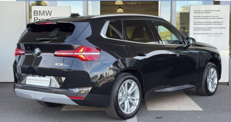 EQUIPEMENTS ================== - Accès Confort - Aides à la conduite Driving Assistant - Aides à la conduite Driving Assistant Plus - Aides au stationnement Parking Assistant Plus - Alarme antivol - Appel d'Urgence Intelligent - Appui lombaire ajustable - Attelage de remorque - Avertisseur de risque de collision et système anti collision à basse vitesse - BMW Live Cockpit Navigation Professional - Boîte de vitesses automatique avec palettes au volant - Calandre illuminée BMW Iconic Glow - Caméra d'habitacle - Climatisation automatique 3 zones - Compte-tours - Dalle de recharge par induction pour smartphone - Eclairage d'ambiance - Ecrous antivol de roues - Equipements spécifiques UE - Filet de séparation du coffre - Inserts décoratifs Dark Graphite - Kit de mobilité - Mesure individuelle de pression de pneumatiques - Pack Confort - Pack Innovation - Pack Premium - Personal eSim - Projecteurs Advanced Full LED - Saphirschwarz métallisé - Sellerie Veganza perforé avec surpiqûres - Schwarz - Services Apres-Vente connectes et ConnectedDrive - Sièges avant électriques à mémoires conducteur - Sièges avant et arrière chauffants - Sièges avant Sport - Sièges avant ventilés - Stores pare-soleil pour vitres latérales arrière - Système de voyage multifonction Travel & Comfort - Système Hi-Fi Harman Kardon - Toit panoramique en verre - Triangle de présignalisation et trousse de premiers secours - Tuner radio numerique DAB - Vitrage calorifuge