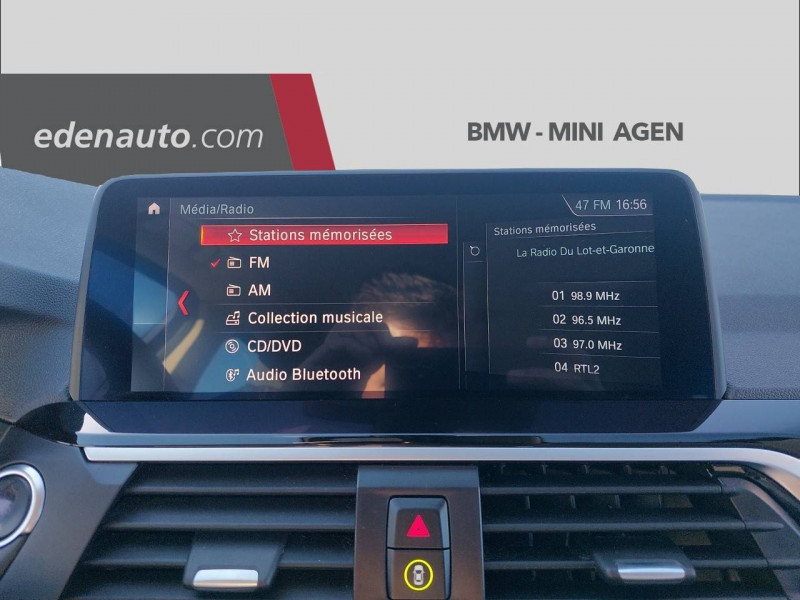 3ème feu stop / 5 sièges / Alarme antivol / Aluminium Line satiné / Antenne aileron de requin / Attention Assist: Signale la perte de vigilance du conducteur / Autoradio BMW Professional, 8 touches de favoris programmables et "Controller" iDrive avec touches de raccourci, compatibilité MP3, double Tuner RDS FM, info-route (TP), lecteur CD compatible avec divers formats de compression audio / Baguettes de seuil de porte AV / BMW Gesture Command / Boîte de vitesses automatique à 8 rapports / Bouton de démarrage Start/Stop sans manipulation de la clé / Buses de lave-glace chauffantes / Capacité du réservoir augmentée / Clé radiocommandée à mémorisation automatique des réglages "Personal Profil" / Commande automatique du hayon / Conciergerie (3 ans) / Connectivité avancée sans fil avec recharge par induction / Détecteur de pluie et allumage automatique des projecteurs / Déverrouillage électrique du hayon via la poignée ou la clé radiotélécommandée / Diffuseurs aérodynamiques AV "Air Curtain" / Direction à assistance électrique BMW Efficient Dynamics / Drive Assist / Eclairage d'ambiance / Eléments extérieurs (poignées de portes) couleur carrosserie / Equipements Finition xLine / Feux de route anti-éblouissement et éclairage dans les virages / Feux de stop dynamiques clignotants / Filet de séparation du coffre / Fonction d'arrêt et de redémarrage automatique du moteur BMW Efficient Dynamics / Fonction "Ma BMW à distance" (à vie) / Hotspot Wi-Fi / Information Trafic en Temps Réel RTTI (3 ans) / Inserts décoratifs brillants 'Schwarz' / Instrumentation "Black Panel" avancée / Jantes en alliage 19" style 694 à rayons en Y, 7.5Jx19" / pneus 245/50 R19 (comprend Ecrous antivol de roues) / Kit de mobilité BMW / Kit de rangement / Kit éclairage / Lève-vitres AV/AR électriques avec commande par impulsion et sécurité enfants / Limiteur et régulateur de vitesse avec maintien de la vitesse en descente / Mesure individuelle de pression des pneumatiques / Navigation multimédia Business / Navigation multimédia Professional / Notice d'utilisation de la voiture intégrée et carnet d'entretien électronique avec BMW Service History / Pack Advanced Full LED / Pack BMW ConnectedDrive / Pack Innovation / Projecteurs AV halogènes avec feux de jour à LED / Rails de toit Aluminium Line satiné / Rétroviseur intérieur électrochrome / Rétroviseurs extérieurs couleur carrosserie à réglages électriques et dégivrants, miroir asphérique côté conducteur, rappels de clignotants intégrés / Sélecteur de mode de conduite - 3 modes : ECO PRO, Comfort, Sport / Sellerie Tissu / Cuir "Vivus" / Services Après-vente connectés BMW Teleservices (durée de vie de la voiture) / Services ConnectedDrive comprend la fonctionnalité BMW Apps (3 ans) et BMW Apps (durée de vie du véhicule): / Sièges Advanced pour conducteur et passager AV / Sièges AV avec appui lombaire ajustable / Sortie d'échappement double 1 de chaque côté ronde et chromée / Système de manoeuvres entièrement automatiques "Park Assist" / Système de récuperation de l'énergie au freinage BMW Efficient Dynamics / Tapis de sol en velours / Technologie BMW TwinPower Turbo avec injection directe et rampe commune de 3ème génération et un turbocompresseur (BMW EfficientDynamics) / Teinte de carrosserie unie (Schwarz) / Touches multifonctions sur le volant / Triangle de présignalisation avec kit de premiers secours