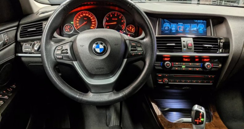 BMW X3 S-Drive28i 245Ch + Toit ouvrant + Alarme + Garantie 12 mois BMW / 25 Équipements - ABS - Système d'alarme - Transmission intégrale - Apple CarPlay - Accoudoir - Aide au démarrage en côte - Bluetooth - Ordinateur de bord - Lecteur CD - Barres de toit - Vitres électriques - Rétroviseurs électriques - Réglage électrique des sièges - Antidémarrage électrique - ESP - Kit mains libres - Garantie - Séparation du coffre - Isofix - Volant en cuir - Jantes en alliage léger - Capteur de luminosité - Soutien lombaire - Volant multifonctions - Système de navigation - Phares antibrouillard - Véhicule non-fumeur - Toit panoramique - Capteur de pluie - Palettes au volant - Carnet d'entretien à jour - Lave-phares - Toit ouvrant - Verrouillage centralisé sans clé (Keyless) - Direction assistée - Système Start/Stop automatique - Feux de jour - Régulateur de vitesse - Assistant d'angle mort - Contrôle de traction - Pneus hiver - Verrouillage centralisé Équipements spéciaux : - Pack rangement, - Système audio-navigation Professional, - Rétroviseurs extérieurs/intérieurs avec atténuation automatique, - Barres de toit en aluminium satiné, - Commande automatique du hayon, - Système de haut-parleurs hi-fi, Équipement intérieur : - Inserts décoratifs en bois précieux ronce de noyer, - Climatisation automatique bi-zone avec contrôle automatique de la recirculation d'air, - Soutien lombaire avant gauche et droit, réglable électriquement, - Volant (sport/cuir), - Peinture métallisée, - Toit panoramique (verre), Système de service : - Apple CarPlay Information (préparation), Système de service : - Services ConnectedDrive, Revêtement des sièges / rembourrage : - Cuir Nevada, - Sièges avant à réglage électrique (côté gauche avec mémoire), - Vitrage pare-soleil (arrière teinté), - Ouvre-porte de garage universel Équipements supplémentaires : - Airbag côté passager désactivable, - Airbags conducteur/passager, - Appuie-tête actifs, - Système d'échappement (double sortie) avec embouts chromés, - Prise AUX-IN (AUX-IN), - Rétroviseurs extérieurs réglables électriquement et chauffants, affichage de la température extérieure, - Clignotants intégrés dans les rétroviseurs extérieurs, - Clignotants blancs, - Ordinateur de bord, - Assistance au freinage, - Récupération d'énergie au freinage (système de récupération), - Système Check-Control, - Feux de freinage dynamiques, Système d'aide à la conduite : - Contrôle de descente (HDC), Système d'aide à la conduite : - Commutateur d'expérience de conduite, - Lève-vitres électriques à l'avant et à l'arrière, - Kit mains libres Bluetooth avec interface USB/audio, - Tapis de sol en velours, - Séparation du coffre (filet), - Porte-gobelets à l'avant et à l'arrière, - Essuie-glace arrière, Équipement intérieur : - Inserts décoratifs argent satiné, - Fixations Isofix pour siège enfant, Carrosserie : - 5 portes, système d'airbags de tête à l'arrière, - système d'airbags de tête à l'avant, - colonne de direction (volant) réglable mécaniquement, - pack éclairage, - accoudoir central à l'arrière, - modèle révisé, - moteur 2,0 l - 180 kW, - pack non-fumeur, - Frein de stationnement électrique, - Empattement 2810 mm, - Système de contrôle de la pression des pneus, - Indicateur de crevaison, - Système de pneus Run-Flat (avec propriétés de roulage à plat), - Dossier arrière divisé/rabattable, - Faible émission de polluants selon la norme Euro 6, - Gicleurs de lave-glace chauffants, - Airbags latéraux à l'avant, Système d'assistance : - Appel d'urgence intelligent avec TeleServices, - Bouton Start-Stop, - Système Start/Stop (fonction), - Vitrage athermique teinté