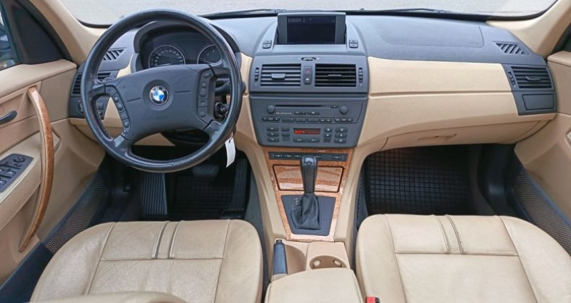 BMW X3 3.0i 231 ch Luxe *** Carnet d’entretien à jour *** Véhicule suivi *** Aucun frais à prévoir *** Révisé, contrôlé et nettoyé pour la vente *** Service carte grise sur place Possibilité d’extension de garantie jusqu’à 48 mois Motorisation : 3.0i 231ch - Boîte automatique Steptronic Transmission : 4x4 xDrive Fiscalité : 17 CV Couleur : Noir, intérieur cuir beige Garantie : 12 mois ? Confort & intérieur Toit panoramique ouvrant Sellerie cuir beige Siege électrique à mémoire Climatisation automatique Volant cuir multifonctions Sièges chauffants Accoudoir central Régulateur de vitesse Ordinateur de bord Isofix Système audio BMW Business Changeur 6 CD GPS / Navigation Professional ? Aides à la conduite & sécurité 4x4 xDrive Boîte automatique Steptronic ABS / ESP Airbags frontaux, latéraux et rideaux Radars de stationnement avant + arrière Allumage automatique des feux Capteur de pluie Indicateur de pression des pneus Contrôle de descente (HDC) ? Extérieur Jantes alliage avec pneus en très bon état Phares Xénon + lave-phares Barres de toit Rétroviseurs électriques dégivrants Feux antibrouillard Véhicule révisé, contrôlé et nettoyé avant la vente Possibilité d’extension de garantie jusqu’à 48 mois Service carte grise sur place Sauf erreur de saisie
