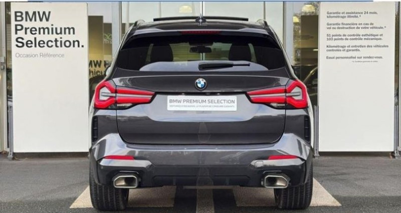 EQUIPEMENTS ================== - Boîte de vitesses automatique avec palettes au volant - Ciel de pavillon M anthracite - Finition M Sport - Inserts decoratifs M Aluminium Rhombicle fonce - Kit aérodynamique M - Pack Connected Professional (dont Apple CarPlay et Google Android Auto) - Rails de toit Shadow Line M brillant - Shadow Line M brillant - Suspensions DirectDrive - Volant M gainé cuir - Accès Confort - Affichage Tête Haute HUD couleur - Aides à la conduite Driving Assistant - Airbag passager désactivable via la clé - Alarme antivol - Appel d'Urgence Intelligent - Appui lombaire ajustable - Avertisseur de risque de collision et système anti collision à basse vitesse - BMW Live Cockpit Navigation Professional - Climatisation automatique bi-zone - Commande gestuelle BMW - Compte-tours - Connectivité avancée sans fil avec recharge par induction - Contrôle de la Transmission - Eclairage d'ambiance - Ecrous antivol de roues - Equipements spécifiques UE - Feux de route anti-éblouissement - Filet de séparation du coffre - Hotspot WiFi - Jantes alliage 20 style 699 M / pneus mixtes / RSC - Kit rangement - Mesure individuelle de pression de pneumatiques - Omission du badge extérieur - Omission sigle - Pack Confort - Pack ConnectedDrive - Pack Evasion - Pack Innovation - Parking Assistant Plus - Placage galvanisé pour éléments de commande - Pneumatiques RSC permettant le roulage a plat - Projecteurs Advanced Full LED - Réglage du dossier des sièges arrière - Réglage largeur du dossier coté conducteur - Régulateur de vitesse actif ACC Plus - Repair Inclusive - 3 ans/200.000 km - Rétroviseur intérieur anti-éblouissement - Rétroviseurs rabattables et intérieur et extérieur gauche antiéblouissement - Sellerie Cuir Vernasca Schwarz avec surpiqûres contrastantes Bleues - Services Apres-Vente connectes et ConnectedDrive - Services ConnectedDrive (Apps véhicule 3 ans) - Sièges avant chauffants - Sièges avant électriques à mémoires conducteur - Sièges avant Sport - Sophistograu métallisé - Stores pare-soleil pour vitres latérales arrière - Système Hi-Fi Harman Kardon - Tableau de bord en Similicuir Sensatec - Tapis de sol en velours - Toit ouvrant panoramique en verre - Triangle de présignalisation et trousse de premiers secours - Tuner radio numerique DAB - Vitrage calorifuge - Vitrage insonorisant
