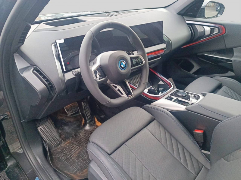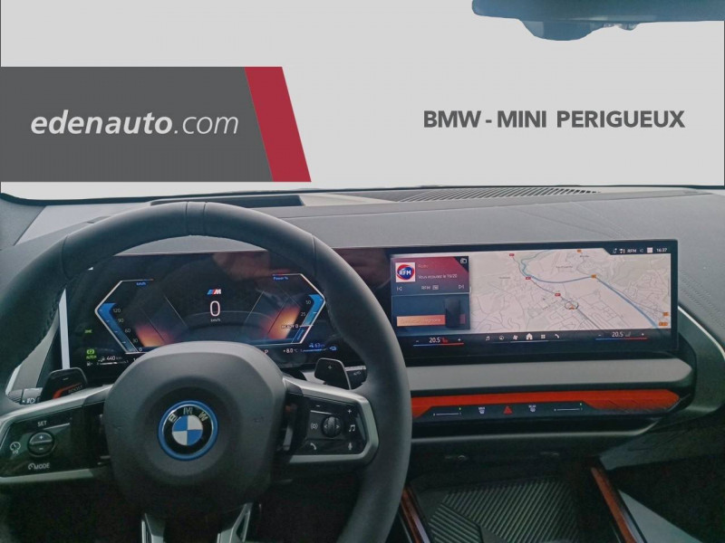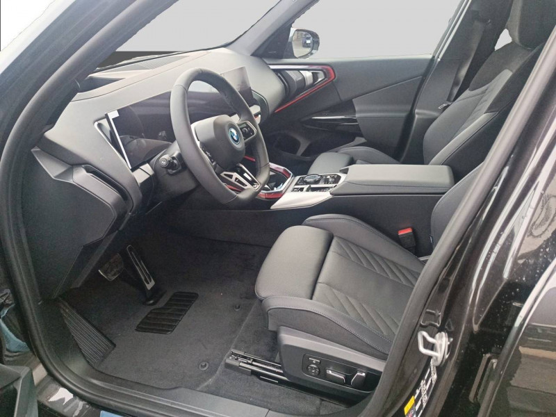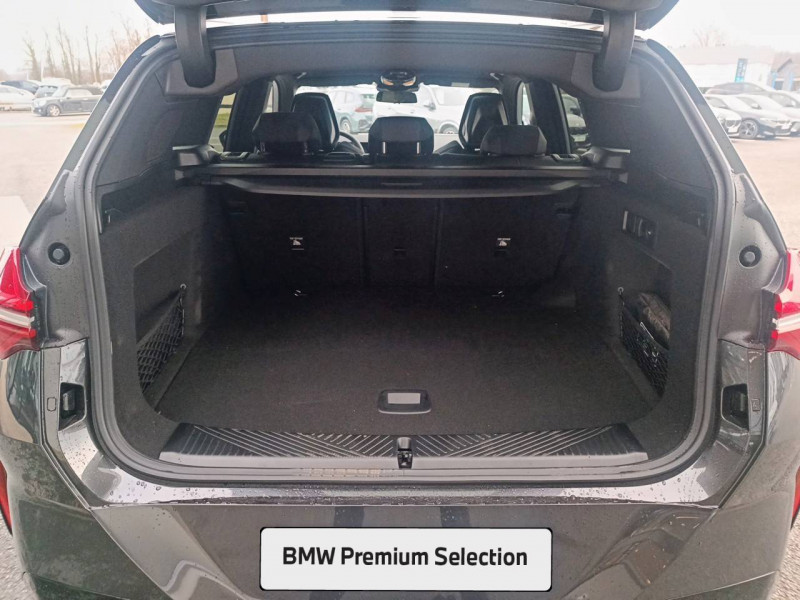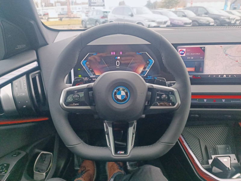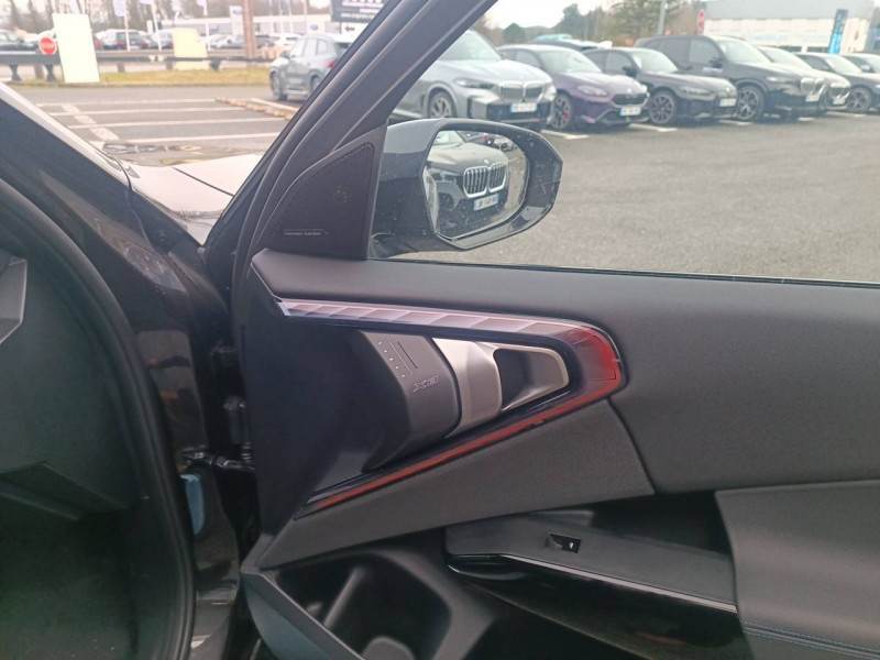1 clé radiocommandée à mémorisation automatique des réglages "Personal Profile" 1 Setup Card & 1 Service Card / 2 porte-gobelets sur la console centrale / 3ème feu stop LED intégré au hayon AR / 5 places / Accès confort avec préparation "BMW Digital Key Plus" - Ouverture et fermeture (des 4 portes et de la malle) et démarrage sans clé - Eclairage d'accueil lorsque le conducteur se situe à 2,5 m du véhicule - Déverrouillage automatique à partir de 0,5 m du véhicule - Verrouillage automatique lorsque le conducteur s'éloigne du véhicule, à partir de 3 m / Accoudoir central AV avec panneau de commande intégré / Active Guard Avertissement de franchissement de ligne avec impulsion sur la direction (>70km/h), Avertisseur de collision frontale avec intervention de freinage (3-210km/h), Avertisseur d'intersection (détection risque collision latérale 3-85km/h), Avertisseur présence piéton/cycliste lors d'un virage en intersection (3-35km/h), Assistance de limitation de vitesse avec informations de limite de vitesse. / Aides à la conduite Driving Assistant Plus - Fonction à la demande / Aides à la conduite Driving Assistant Regroupe de nombreuses technologies pour une sécurité optimale : Avertisseur d'angle mort (>20km/h avec voyant d'alerte et intervention sur la direction), Avertisseur de risque de collision AR (déclenchement automatique des warning avec fréquence doublée), Avertisseur de sortie (détecte les objets approchant (véhicule, cycliste) et alerte en cas d'ouverture de la portière du conducteur ou des passagers si risque de collision avec l'objet détecté). Avertisseur de trafic transversal AR / Aides au stationnement Parking Assistant Radars de stationnement AV et AR, Caméra de recul, Manoeuvres de stationnemment en créneau et en bataille facilitées par mesure automatique, fonction de freinage automatique (PDC actif) en marche AR en cas d'obstacle lors d'une manoeuvre de stationnement effectuée manuellement par le conducteur (jusqu'à 5km/h), Assistant de marche arrière/Auto-reverse. / Airbag central (siège conducteur) / Airbag entre les deux sièges AV en cas de collision latérale / Airbags de tête AV et aux places latérales AR / Alarme antivol Surveillance des portes, coffre et capot moteur, protection de l'habitacle, détecteur de soulèvement et sirène. / Appel d'Urgence Intelligent (durée de vie de la voiture) Appel automatique vers le centre d'assistance BMW en cas d'accident. Touche SOS pour Appel d'Urgence manuel. Les données importantes sont automatiquement transmises aux secours : identification et localisation de la voiture, nombre de passagers à bord, statuts des airbags. Ce service utilise la carte SIM montée d'usine et ne requiert pas l'utilisation du smartphone. / Assistance de direction assistée Servotronic / BMW Digital (BMW Maps, RTTI sur itinéraire, Apple CarPlay, Android Auto, BMW Intelligent Personal Assistant) / BMW EfficientDynamics Direction à assistance électrique Servotronic (assistance variable selon la vitesse), Fonction d'arrêt et de redémarrage automatique du moteur, Système de récupération de l'énergie au freinage. / BMW IconicSounds Electric Mise en scène du son de conduite électrique à l'intérieur et à l'extérieur du véhicule. Sélection du niveau via les modes du commutateur d'expérience de conduite personnalisée: Personal : confort acoustique modéré avec faible réponse de charge, Sport : nette réponse de charge, Efficient : confort acoustique élevé sans mise en scène supplémentaire, Expressive : acoustique de conduite d'avant-garde - une réinterprétation artistique du mouvement, Relax : paysage sonore vibrant et relaxant. / BMW Live Cockpit Navigation Plus avec Écran BMW Curved Display Nouveau système d'exploitation BMW Operating System 9 avec widgets variables configurables qui affichent des informations en temps réel, Remote Software Upgrade : mise à jour du logiciel de la BMW à distance, Connectivité 4G LTE, Mise à jour pour les données de carte de navigation Over the Air (OtA), BMW Maps : nouveau système de navigation, simplification de la recherche, calcul plus rapide, navigation apprenante. / BMW xDrive Transmission intégrale permanente avec répartition variable du couple, Inclus fonctionnalité DSC étendue pour la répartition de la motricité. / Boîte de vitesses automatique à 8 rapports avec palettes au volant Boîte de vitesses automatique à 8 rapports avec sélecteur électronique et palettes au volant. / Câble de recharge Professionnel Mode 3 (T2-T2) pour la recharge publique - 5 mètres Câble de recharge Professionnel de Mode 3 triphasé avec prises Type 2 - Type 2 destinéà la recharge sur bornes publiques ou privées. Peut être utilisé sur une borne de recharge raccordée en courant monophasé ou triphasé avec des puissances de charge maximales : 7,4 kW / 32 A (en monophasé) et de 22 kW / 32 A (en triphasé). Rangement dans le coffret à câbles sous le cache du compartiment à bagages. Couleur Gris basalte. / Calandre avec barreaux droits et obliques / Capteurs d'impact - Activation de l'airbag, des feux de détresse, de l'éclairage intérieur - Déverrouillage des portes - Activation de la borne batterie de sécurité / Carte BMW Charging / Ceintures de sécurité 3 points à toutes les places / Chargeur courant alternatif AC 11 kW / Ciel de pavillon M Anthracite / Clignotants LED intégrés aux feux de jour / Climatisation automatique 3 zones Contrôle individuel de la température pour le conducteur et le passager AV, Programme automatique avec 5 niveaux d'intensité, Fonction SYNC : les réglages du conducteur s'appliquent à toute la zone passagers, Recirculation automatique de l'air (SSC), Refroidissement maximal (MAX AC), pour le conducteur et le passager AV, Microfiltre à charbon, Pré-refroidissement, Aérateurs à l'AR dans la console centrale AR. / Compartiment à bagages : 2 crochets de sac, filet sur panneau gauche, pris
