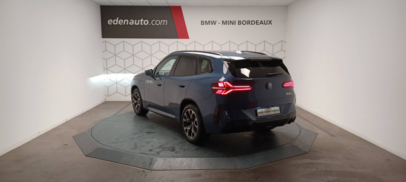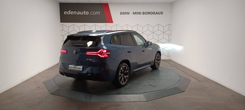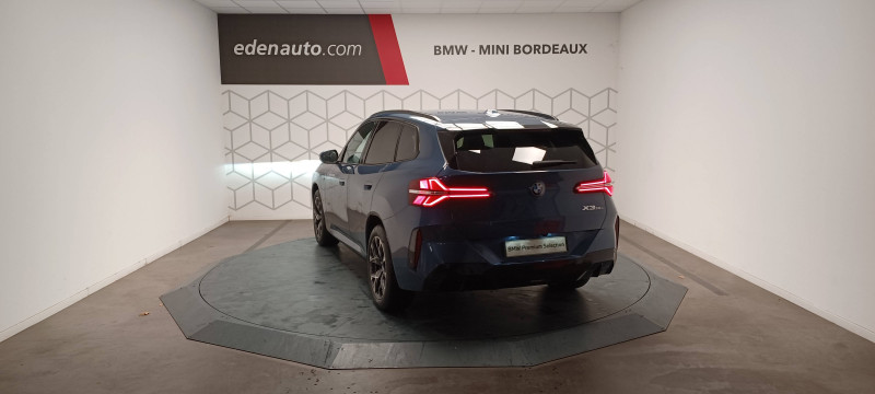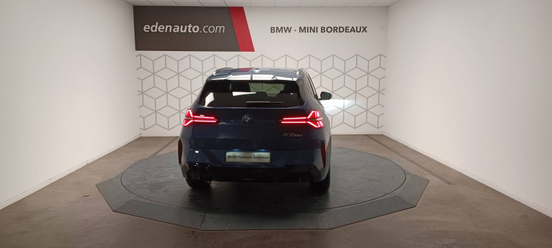 1 clé radiocommandée à mémorisation automatique des réglages "Personal Profile" 1 Setup Card & 1 Service Card / 2 porte-gobelets sur la console centrale / 3ème feu stop LED intégré au hayon AR / 5 places / Accès confort avec préparation "BMW Digital Key Plus" - Ouverture et fermeture (des 4 portes et de la malle) et démarrage sans clé - Eclairage d'accueil lorsque le conducteur se situe à 2,5 m du véhicule - Déverrouillage automatique à partir de 0,5 m du véhicule - Verrouillage automatique lorsque le conducteur s'éloigne du véhicule, à partir de 3 m / Accoudoir central AV avec panneau de commande intégré / Active Guard Avertissement de franchissement de ligne avec impulsion sur la direction (>70km/h), Avertisseur de collision frontale avec intervention de freinage (3-210km/h), Avertisseur d'intersection (détection risque collision latérale 3-85km/h), Avertisseur présence piéton/cycliste lors d'un virage en intersection (3-35km/h), Assistance de limitation de vitesse avec informations de limite de vitesse. / Aides à la conduite Driving Assistant Plus - Fonction à la demande / Aides à la conduite Driving Assistant Regroupe de nombreuses technologies pour une sécurité optimale : Avertisseur d'angle mort (>20km/h avec voyant d'alerte et intervention sur la direction), Avertisseur de risque de collision AR (déclenchement automatique des warning avec fréquence doublée), Avertisseur de sortie (détecte les objets approchant (véhicule, cycliste) et alerte en cas d'ouverture de la portière du conducteur ou des passagers si risque de collision avec l'objet détecté). Avertisseur de trafic transversal AR / Aides au stationnement Parking Assistant Radars de stationnement AV et AR, Caméra de recul, Manoeuvres de stationnemment en créneau et en bataille facilitées par mesure automatique, fonction de freinage automatique (PDC actif) en marche AR en cas d'obstacle lors d'une manoeuvre de stationnement effectuée manuellement par le conducteur (jusqu'à 5km/h), Assistant de marche arrière/Auto-reverse. / Airbag central (siège conducteur) / Airbag entre les deux sièges AV en cas de collision latérale / Airbags de tête AV et aux places latérales AR / Alarme antivol Surveillance des portes, coffre et capot moteur, protection de l'habitacle, détecteur de soulèvement et sirène. / Appel d'Urgence Intelligent (durée de vie de la voiture) Appel automatique vers le centre d'assistance BMW en cas d'accident. Touche SOS pour Appel d'Urgence manuel. Les données importantes sont automatiquement transmises aux secours : identification et localisation de la voiture, nombre de passagers à bord, statuts des airbags. Ce service utilise la carte SIM montée d'usine et ne requiert pas l'utilisation du smartphone. / Assistance de direction assistée Servotronic / BMW Digital (BMW Maps, RTTI sur itinéraire, Apple CarPlay, Android Auto, BMW Intelligent Personal Assistant) / BMW EfficientDynamics Direction à assistance électrique Servotronic (assistance variable selon la vitesse), Fonction d'arrêt et de redémarrage automatique du moteur, Système de récupération de l'énergie au freinage. / BMW IconicSounds Electric Mise en scène du son de conduite électrique à l'intérieur et à l'extérieur du véhicule. Sélection du niveau via les modes du commutateur d'expérience de conduite personnalisée: Personal : confort acoustique modéré avec faible réponse de charge, Sport : nette réponse de charge, Efficient : confort acoustique élevé sans mise en scène supplémentaire, Expressive : acoustique de conduite d'avant-garde - une réinterprétation artistique du mouvement, Relax : paysage sonore vibrant et relaxant. / BMW Live Cockpit Navigation Plus avec Écran BMW Curved Display Nouveau système d'exploitation BMW Operating System 9 avec widgets variables configurables qui affichent des informations en temps réel, Remote Software Upgrade : mise à jour du logiciel de la BMW à distance, Connectivité 4G LTE, Mise à jour pour les données de carte de navigation Over the Air (OtA), BMW Maps : nouveau système de navigation, simplification de la recherche, calcul plus rapide, navigation apprenante. / BMW xDrive Transmission intégrale permanente avec répartition variable du couple, Inclus fonctionnalité DSC étendue pour la répartition de la motricité. / Boîte de vitesses automatique à 8 rapports avec palettes au volant Boîte de vitesses automatique à 8 rapports avec sélecteur électronique et palettes au volant. / Câble de recharge Professionnel Mode 3 (T2-T2) pour la recharge publique - 5 mètres Câble de recharge Professionnel de Mode 3 triphasé avec prises Type 2 - Type 2 destinéà la recharge sur bornes publiques ou privées. Peut être utilisé sur une borne de recharge raccordée en courant monophasé ou triphasé avec des puissances de charge maximales : 7,4 kW / 32 A (en monophasé) et de 22 kW / 32 A (en triphasé). Rangement dans le coffret à câbles sous le cache du compartiment à bagages. Couleur Gris basalte. / Calandre avec barreaux droits et obliques / Capteurs d'impact - Activation de l'airbag, des feux de détresse, de l'éclairage intérieur - Déverrouillage des portes - Activation de la borne batterie de sécurité / Carte BMW Charging / Ceintures de sécurité 3 points à toutes les places / Chargeur courant alternatif AC 11 kW / Ciel de pavillon M Anthracite / Clignotants LED intégrés aux feux de jour / Climatisation automatique 3 zones Contrôle individuel de la température pour le conducteur et le passager AV, Programme automatique avec 5 niveaux d'intensité, Fonction SYNC : les réglages du conducteur s'appliquent à toute la zone passagers, Recirculation automatique de l'air (SSC), Refroidissement maximal (MAX AC), pour le conducteur et le passager AV, Microfiltre à charbon, Pré-refroidissement, Aérateurs à l'AR dans la console centrale AR. / Compartiment à bagages : 2 crochets de sac, filet sur panneau gauche, pris