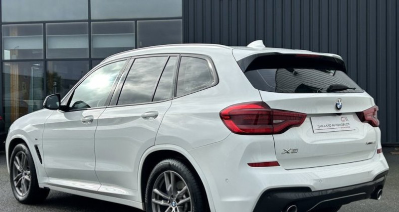 //// GUILLARD AUTOMOBILES VOUS PROPOSE A LA VENTE CE TRES BEAU BMW X3 XDRIVE 30 d M-SPORT 286ch (G01) BVA8 //// -Mise en circulation : 28/01/2021 -Puissance fiscale : 17ch -Couleur extérieur : Blanc Alpin Unie *Description du véhicule : -Sièges sport en cuir / tissu noir avec surpiqûres bleues -Sièges chauffants à l'avant -Accoudoirs de portières en cuir avec surpiqûres bleues -Volant sport M cuir / alu multifonctions -Ordinateur de bord digital -Système Hi-Fi -Régulateur + limiteur de vitesse -Protection active des occupants : système détection de collision active protection, prétensionneurs ceintures, freinage multi-collision, dossier actif avant -Avertisseur piétons actif -Allumage automatique des feux -Détecteur de pluie -Climatisation automatique bizone -GPS couleur tactile -Prises USB / mini USB -Chargeur à induction -Bluetooth audio -Connexion téléphone mains-libres Bluetooth -Apple CarPlay / Android Auto -Pavé tactile -Commande vocale -4 vitres électriques -Rétroviseurs rabattables électriquement -Rétroviseurs extérieurs électrochromes -Verrouillage centralisé à distance -Démarrage sans clé -Fonction START & STOP -Modes de conduite ( Eco Pro / Comfort / Sport / Sport + ) -Boîte de vitesse automatique à 8 rapports séquentielle avec palettes au volant -Accoudoir central en cuir avec surpiqûres bleues -Inserts décoratifs en alu rhombicle souligné de chrome perlé -Eclairage d'ambiance -Rétroviseur intérieur électrochrome -Ciel de pavillon noir -Toit ouvrant panoramique électrique en verre -Vitrage surteinté à l'arrière -Hayon électrique -Seuils de portes en alu avec inscription M -Repose pied + pédalier sport en acier inoxydable -Tapis de sol -Assistance de parking à l'avant et à l'arrière -Caméra de recul -Phares FULL LED -LED de jour -Antibrouillards -Jantes alu 19 -Calandre noire -Rétroviseurs noirs -Rails de toit en aluminium line satiné -Kit de mobilité BMW Entretien suivi à jour. Véhicule en très bon état. Véhicule révisé et garanti 6 mois (Extension possible de la garantie 12 mois ou 24 mois) // REPRISE POSSIBLE DE VOTRE VEHICULE // // TOUS NOS VEHICULES SONT VISIBLES SUR RENDEZ-VOUS A PLEUMELEUC // SARL GUILLARD AUTOMOBILES 6 RUE LAENNEC 35137 PLEUMELEUC // HORAIRES D'OUVERTURE SEULEMENT SUR RENDEZ-VOUS //: -DU LUNDI au VENDREDI : 9h00-12h00 14h00-18h00 -LE SAMEDI : 9h00-12h00