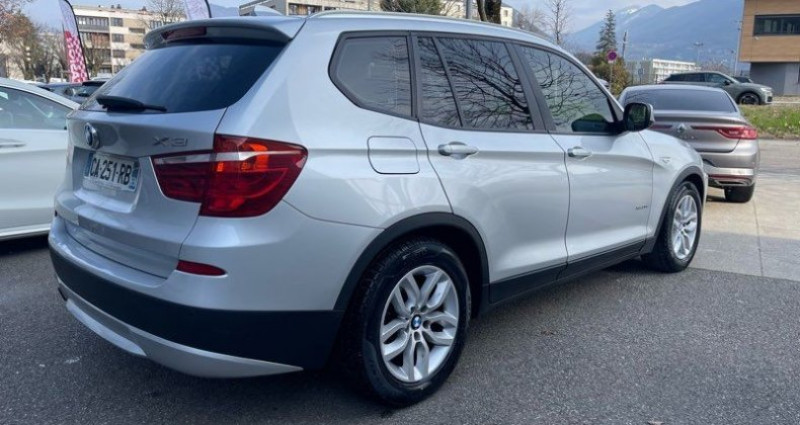 BMW X3 F25 xDrive30dA 258ch Confort BVA8, Suv/4X4, 16cv, Gris argent métal, mise en circulation le 25-01-2012, garantie 6 mois. Options & équipements Extérieur Phares à allumage automatique Rétroviseurs extérieurs chauffants Ampoules de phares halogènes Rétroviseurs extérieurs réglage électrique Antibrouillards avant 4 roues motrices Aide parking Frein de parking automatique Jantes alu 17 Lunette arrière dégivrante Projecteurs bi-xénon Intérieur GPS Système audio i Ordinateur de bord Air conditionné auto Bluetooth 6 haut-parleurs Régulateur de vitesse Air conditionné 3 zones Réglage du volant en hauteur, en profondeur Système audio lecteur CD et MP3 Sécurité Indicateur de sous-gonflage des pneus Assistance au freinage d'urgence ESP Contrôle de freinage en courbe Antipatinage ABS Airbags latéraux Essuie glace capteur de pluie Aide au démarrage en côte Autre Crochet d'attelage entièrement électrique Jantes alliage léger 17 ' style 304 à rayons en V Pack Advanced Xenon Phares Bi-Xenon Teinte de carrosserie métallisée Origine France Historique complet Excellent état Reprise possible IDEAL AUTO 9 Boulevard Paul Langevin 38600 Fontaine