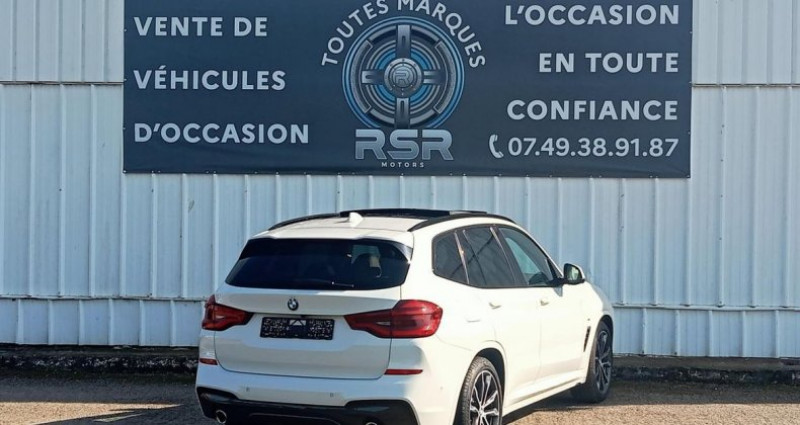 BMW X3 G01 xDrive30d 265ch BVA8 M Sport tout-terrain, blanc, 16 cv, 5 portes, couleur intérieure : noir, première mise en circulation le 02/05/2018, garantie 6 mois. Rien à prévoir, suivi complet BMW. Prix de la CARTE GRISE ET MALUS INCLUS dans le prix pour ce véhicule. Chez RSR MOTORS, l'achat de votre véhicule est simplifié : nous prenons en charge toutes les formalités d'immatriculation, rapidement et gratuitement. Sous réserve d'erreur dans l'annonce. 5 places OPTIONS ET ÉQUIPEMENTS : Audio - Télécommunications : - Appel d'Urgence Intelligent - Autoradio BMW Professional - Conciergerie (3 ans) - Connectivite avancee sans fil avec recharge par induction - Fonction Ma BMW a distance (a vie) - Hotspot Wi-Fi - Information Trafic en Temps Reel RTTI (3 ans) - Navigation multimedia Professional - Pack BMW ConnectedDrive - Pack Connected Pro - Services Apres-vente connectes BMW Teleservices (duree de vie de la voiture) - Services ConnectedDrive - CD - GPS Conduite : - Controle Dynamique de stabilite DSC - Drive Assist - Fonction d'arret et de redemarrage automatique du moteur - Pack Innovation - Suspension DirectDrive - Systeme de recuperation de l'energie au freinage - Sélection du mode de conduite - affichage tête haute - allumage automatique des feux - détecteur de pluie - palettes au volant - régulateur de vitesse Couleur : - noir Extérieur : - Buses de lave-glace chauffantes - Commande automatique du hayon - Feux de stop dynamiques clignotants - Kit eclairage - Radars de stationnement AV/AR PDC - Rails de toit Shadow Line brillant - Sortie d'echappement double 1 de chaque cote ronde et chromee - Systeme de manoeuvres entierement automatiques Park Assist Plus - Systeme de manoeuvres entierement automatiques Park Assist - Vitrage calorifuge - Vitrage insonorisant - jantes : alliage - rétroviseurs électriques - toit ouvrant - toit ouvrant panoramique Intérieur : - 5 sieges - Colone de direction reglable en hauteur et profondeur - Direction a assistance electrique - Eclairage d'ambiance - Filet de separation du coffre - Inclinaison des dossiers des sieges AR - Instrumentation Black Panel avancee - Kit de rangement - Sieges AV avec appui lombaire ajustable - Sieges AV chauffants - Sieges Advanced pour conducteur et passager AV - Touches multifonctions sur le volant - Volant M gaine cuir - accoudoir central - climatisation : automatique - intérieur : cuir - prise 12V - rétroviseur interieur electrochrome - volant sport Pack : - Application galvanise - BMW Gesture Command - Baguettes de seuil de porte AV - Capacite du reservoir augmentee - Ceintures de securite 3 points - Ciel de pavillon Anthrazit - Controle dynamique de traction DTC - Direction DirectDrive a demultiplication variable - Ecrous antivol de roues - Elements exterieurs (poignees de portes) couleur carrosserie - Freins M Sport - Kit aerodynamique M - Planche de bord en Sensatec - Retroviseurs exterieurs couleur carrosserie a reglages electriques et degivrants - Shadow Line brillant - Triangle de presignalisation avec kit de premiers secours - Sieges arrières rabattable - anti démarrage - tapis de sol Sellerie : - Sellerie Tissu / Cuir Vernasca Sécurité : - Airbags conducteur et passager AV - Airbags de tete AV/AR - Controle de la transmission - Feux de route anti-eblouissement - Kit de mobilite BMW - Projecteurs antibrouillard AV a LED - ABS - airbag coté passager - airbags latéraux - alarme - fixations ISOFIX - phares antibrouillard Autres équipements et informations : - 8 touches de favoris programmables et Controller iDrive avec touches - Antenne aileron de requin - Attention Assist: Signale la perte de vigilance du conducteur - BMW Live Cockpit Navigation Pro - Bouton de demarrage Start/Stop sans manipulation de la cle - Cle radiocommandee a memorisation automatique des reglages Personal Profil - Deverrouillage electrique du hayon via la poignee ou la cle radiotelecommandee - Diffuseurs aerodynamiques AV Air Curtain - Equipements Finition M Sport - Inserts decoratifs en Aluminium Rhombicle souligne de chrome perle - Jantes en alliage 20 style 699 M a rayons doubles avec pneumatiques mixtes / RSC - Leve-vitres AV/AR electriques avec commande par impulsion et securite enfants - Mesure individuelle de pression des pneumatiques - Notice d'utilisation de la voiture integree et carnet d'entretien electronique avec BMW Service - Pack Advanced Full LED - Pack Advanced Safety (En relation Pack Innovation) - Pack Advanced Safety avec Pilote semi-automatique - Teinte de carrosserie unie (Alpinweiss) - miroir aspherique - 3eme feu stop - Classe Crit'air : 2 - Puissance kilowatt : 195 kw - consommation extra urbaine : 5,40 litres - consommation mixte : 6,00 litres - consommation urbaine : 7,00 litres - dimension des jantes : 19 pouces - feux de circulation diurne - puissance réelle : 265 ch - turbo - émission CO2 : 158 g/km Référence annonce : 3p8vnk5
