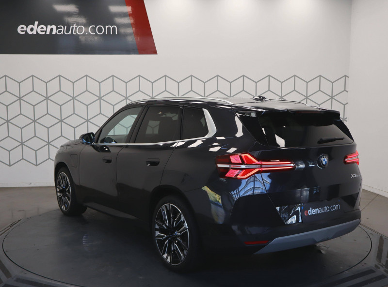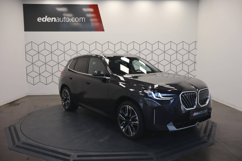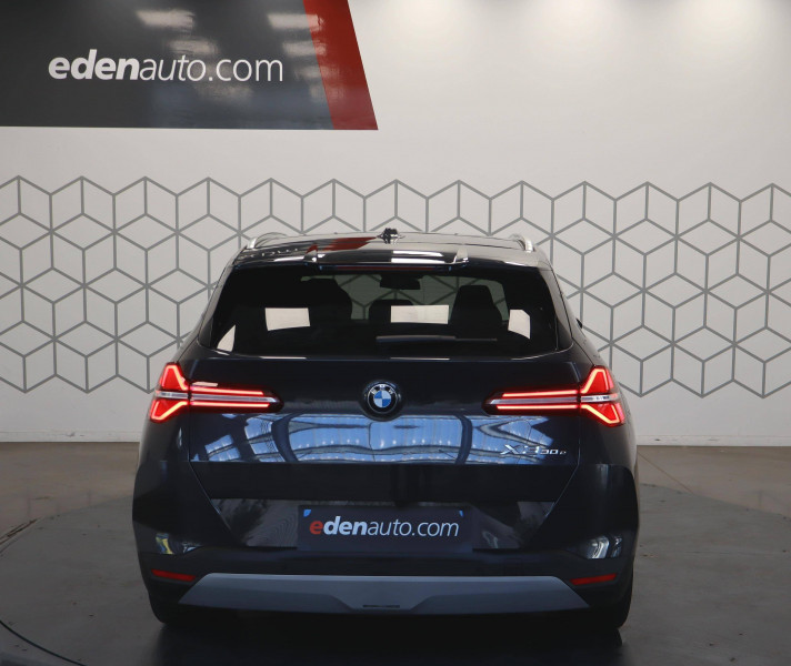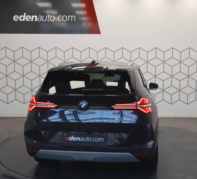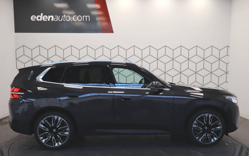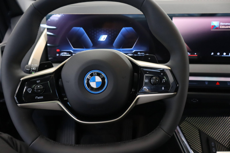 2 porte-gobelets sur la console centrale / 3ème feu stop LED intégré au hayon AR / 5 places / Accès confort avec préparation "BMW Digital Key Plus" - Ouverture et fermeture (des 4 portes et de la malle) et démarrage sans clé - Eclairage d'accueil lorsque le conducteur se situe à 2,5 m du véhicule - Déverrouillage automatique à partir de 0,5 m du véhicule - Verrouillage automatique lorsque le conducteur s'éloigne du véhicule, à partir de 3 m / Accoudoir central AV avec panneau de commande intégré / Active Guard Avertissement de franchissement de ligne avec impulsion sur la direction (>70km/h), Avertisseur de collision frontale avec intervention de freinage (3-210km/h), Avertisseur d'intersection (détection risque collision latérale 3-85km/h), Avertisseur présence piéton/cycliste lors d'un virage en intersection (3-35km/h), Assistance de limitation de vitesse avec informations de limite de vitesse. / Aides à la conduite Driving Assistant Plus - Fonction à la demande / Aides à la conduite Driving Assistant Regroupe de nombreuses technologies pour une sécurité optimale : Avertisseur d'angle mort (>20km/h avec voyant d'alerte et intervention sur la direction), Avertisseur de risque de collision AR (déclenchement automatique des warning avec fréquence doublée), Avertisseur de sortie (détecte les objets approchant (véhicule, cycliste) et alerte en cas d'ouverture de la portière du conducteur ou des passagers si risque de collision avec l'objet détecté). Avertisseur de trafic transversal AR / Aides au stationnement Parking Assistant Radars de stationnement AV et AR, Caméra de recul, Manoeuvres de stationnemment en créneau et en bataille facilitées par mesure automatique, fonction de freinage automatique (PDC actif) en marche AR en cas d'obstacle lors d'une manoeuvre de stationnement effectuée manuellement par le conducteur (jusqu'à 5km/h), Assistant de marche arrière/Auto-reverse. / Airbag central (siège conducteur) / Airbag entre les deux sièges AV en cas de collision latérale / Airbags de tête AV et aux places latérales AR / Alarme antivol Surveillance des portes, coffre et capot moteur, protection de l'habitacle, détecteur de soulèvement et sirène. / Aluminium Line / Appel d'Urgence Intelligent (durée de vie de la voiture) Appel automatique vers le centre d'assistance BMW en cas d'accident. Touche SOS pour Appel d'Urgence manuel. Les données importantes sont automatiquement transmises aux secours : identification et localisation de la voiture, nombre de passagers à bord, statuts des airbags. Ce service utilise la carte SIM montée d'usine et ne requiert pas l'utilisation du smartphone. / BMW Digital (BMW Maps, RTTI sur itinéraire, Apple CarPlay, Android Auto, BMW Intelligent Personal Assistant) / BMW EfficientDynamics Direction à assistance électrique Servotronic (assistance variable selon la vitesse), Fonction d'arrêt et de redémarrage automatique du moteur, Système de récupération de l'énergie au freinage. / BMW IconicSounds Electric Mise en scène du son de conduite électrique à l'intérieur et à l'extérieur du véhicule. Sélection du niveau via les modes du commutateur d'expérience de conduite personnalisée: Personal : confort acoustique modéré avec faible réponse de charge, Sport : nette réponse de charge, Efficient : confort acoustique élevé sans mise en scène supplémentaire, Expressive : acoustique de conduite d'avant-garde - une réinterprétation artistique du mouvement, Relax : paysage sonore vibrant et relaxant. / BMW Live Cockpit Navigation Plus avec Écran BMW Curved Display Nouveau système d'exploitation BMW Operating System 9 avec widgets variables configurables qui affichent des informations en temps réel, Remote Software Upgrade : mise à jour du logiciel de la BMW à distance, Connectivité 4G LTE, Mise à jour pour les données de carte de navigation Over the Air (OtA), BMW Maps : nouveau système de navigation, simplification de la recherche, calcul plus rapide, navigation apprenante. / BMW xDrive Transmission intégrale permanente avec répartition variable du couple, Inclus fonctionnalité DSC étendue pour la répartition de la motricité. / Boîte de vitesses automatique à 8 rapports avec palettes au volant Boîte de vitesses automatique à 8 rapports avec sélecteur électronique et palettes au volant. / Câble de recharge Professionnel Mode 3 (T2-T2) pour la recharge publique - 5 mètres Câble de recharge Professionnel de Mode 3 triphasé avec prises Type 2 - Type 2 destinéà la recharge sur bornes publiques ou privées. Peut être utilisé sur une borne de recharge raccordée en courant monophasé ou triphasé avec des puissances de charge maximales : 7,4 kW / 32 A (en monophasé) et de 22 kW / 32 A (en triphasé). Rangement dans le coffret à câbles sous le cache du compartiment à bagages. Couleur Gris basalte. / Calandre avec barreaux droits et obliques / Capteurs d'impact - Activation de l'airbag, des feux de détresse, de l'éclairage intérieur - Déverrouillage des portes - Activation de la borne batterie de sécurité / Ceintures de sécurité 3 points à toutes les places / Chargeur courant alternatif AC 11 kW / Clignotants LED intégrés aux feux de jour / Climatisation automatique 3 zones Contrôle individuel de la température pour le conducteur et le passager AV, Programme automatique avec 5 niveaux d'intensité, Fonction SYNC : les réglages du conducteur s'appliquent à toute la zone passagers, Recirculation automatique de l'air (SSC), Refroidissement maximal (MAX AC), pour le conducteur et le passager AV, Microfiltre à charbon, Pré-refroidissement, Aérateurs à l'AR dans la console centrale AR. / Compartiment à bagages : 2 crochets de sac, filet sur panneau gauche, prise 12V rangement additionel (volume spécifique au modèle) sous plancher amovible / Console centrale avec insert noir brillant / Contrôle de stabilité dynamique (DSC) avec dotation élargie Contrôle