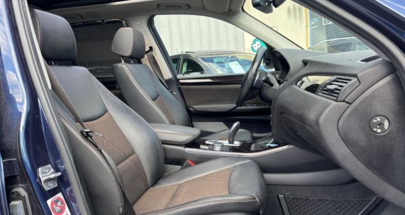 BMW X3 (F25) (2) XDRIVE20DA 190 XLINE Boîte de vitesse : Automatique Énergie : Diesel Kilométrage : 247 500 km Mise en circulation : 31/07/2015 Couleur : bleu metal Sellerie : cuir/tissu noir Nombre de portes : 5 Nombre de places : 5 Puissance fiscale : 10 CV Puissance DIN : 190 ch Norme euro EURO6 Crit'Air 2 Options ; Boîte de vitesses automatique avec palettes au volant Caméra de recul avec fonction Top View Feux de route anti-éblouissement Surround View Toit ouvrant panoramique en verre Phares à allumage automatique Ampoules de phares bi-xénon Feux arrières à LED Antibrouillards avant Rétroviseurs extérieurs réglage électrique Rétroviseurs extérieurs chauffants Rétroviseurs rabattables électriquement 4 roues motrices Aide parking av/ar Hayon électrique Jantes alu Lunette arrière dégivrante Toit ouvrant panoramique Fermerture électrique du coffre Système de navigation Système audio lecteur CD et MP3 Bluetooth inclut musique en streaming, connexion téléphone DVD/VCD Régulateur de vitesse Smart card / Smart key Volant cuir Système audio inclut DVD Ordinateur de bord Siège avant électrique Tapis de sol Ouverture du coffre à distance Lecteur MP3 Taille écran navigation 8.8 pouces Accoudoir central arrière, avant Volant multi-fonction Bluetooth Réglage du volant en hauteur, en profondeur Taille écran multi-fonctions 8.8 pouces 4 vitres électriques Banquette rabattable Boite automatique Climatisation automatique multi zone Direction assistée Fermeture électrique GPS 16/9 Régulateur limiteur de vitesse Sièges électrique à mémoire Système audio MP3 ESP Contrôle de freinage en courbe ABS Affichage tête haute Airbags Projecteurs antibrouillard Essuie-glaces automatiques Feux ar. à LED Feux et essuie-glaces automatiques Fixations ISOFIX Phares av. de jour à LED Reprise Possible SAS IDEAL AUTO 4 RUE DU PRE BLANCHET 38400 ST-MARTIN-D'HERES