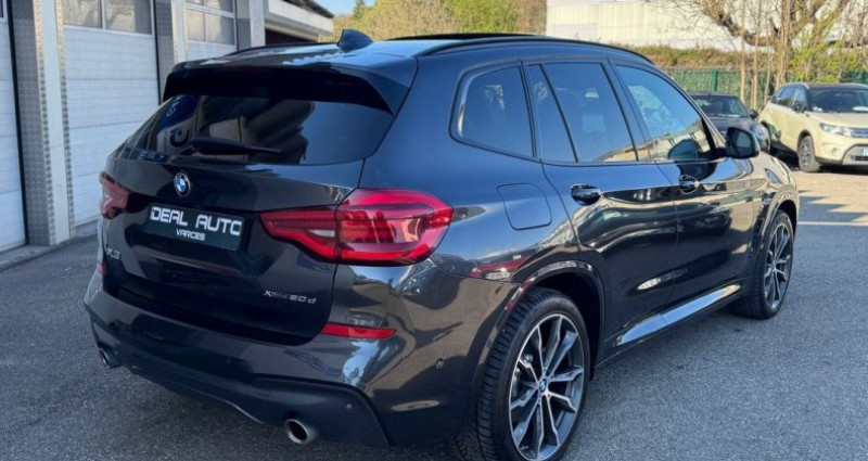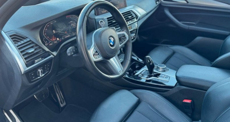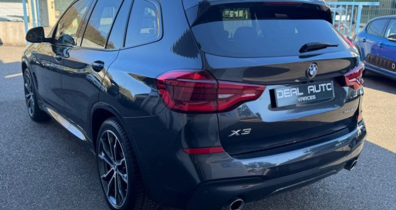 Bmw X3 xDrive20dA 190ch M Sport, (S.U.V.), Sophistograu métallisé, 10cv, 5 portes, mise en circulation le 27-12-2019, garantie 6 mois. 5 places, longueur : 4,71 mètres, poids en charge 2500 Kg, boîte de vitesse : automatique OPTIONS ET EQUIPEMENTS : Audio - Télécommunications - Appel d'Assistance Localisé - Appel d'Urgence Localisé - Borne Wi-Fi - Commandes du système audio au volant - Commandes vocales - Disque dur multimédia - Ecran tactile - Fonction MP3 - GPS Cartographique - Kit mains-libres Bluetooth - Lecteur DVD - Prise USB - Radio - Radio numérique DAB - Services connectés - TMC Conduite - Affichage tête-haute - Arrêt et redémarrage auto. du moteur - Capteur de luminosité - Capteur de pluie - Commande du comportement dynamique - Démarrage sans clé - Indicateur de limitation de vitesse - Limiteur de vitesse - Palettes changement vitesses au volant - Régulateur de vitesse - Suspensions Sport - Système d'accès sans clé - Système d'assistance à la descente Extérieur - Barres de toit - Becquet arrière - Boucliers AV et AR couleur caisse - Buses de lave-glace chauffantes - Coffre assisté électriquement - Echappement à double sortie - Eclairage au sol - Essuie-glace arrière - Feux arrière à LED - Feux de jour à LED - Filtre à particules - JA 20 style 699M à rayons dbl/RSC - Jantes Alu - Ouverture du coffre mains-libres - Phares avant LED - Phares directionnels - Radar de stationnement AR - Radar de stationnement AV - Répétiteurs de clignotant dans rétro ext - Rétroviseurs dégivrants - Rétroviseurs ext. indexés à la marche AR - Rétroviseurs extérieurs électrochromes - Rétroviseurs rabattables électriquement - Rétroviseurs électriques - Sortie d'échappement chromée - Système d'assistance au stationnement - Système d'éclairage intelligent - Système de mesure de place disponible - Toit ouvrant panoramique en verre Intérieur - Accoudoir arrière - Accoudoir central AV avec rangement - Bacs de portes avant - Banquette 40/20/40 - Banquette AR rabattable - Banquette arrière 3 places - Boite à gants éclairée et réfrigérable - Clim automatique tri-zones - Commande Climatisation AR - Compte tours - Eclairage d'ambiance - Ecran multifonction couleur - Fixations Isofix aux places arrières - Inclinaison des dossiers des sièges AR - Inserts de porte métal - Inserts de tableau de bord métal - Lampes de lecture à l'arrière - Lampes de lecture à l'avant - Miroir de courtoisie conducteur éclairé - Miroir de courtoisie passager éclairé - Ordinateur de bord - Ouverture des vitres séquentielle - Pack Confort - Poches d'aumonières - Porte-gobelets avant - Prise 12V - Rétroviseur intérieur électrochrome - Siège conducteur avec réglage lombaire - Siège conducteur réglable en hauteur - Siège conducteur à mémoire - Siège conducteur électrique - Siège passager avec réglage lombaire - Siège passager réglable en hauteur - Siège passager à réglages électriques - Sièges avant chauffants - Sièges avant sport - Sièges avant électriques+mém conducteur - Tablette cache bagages - Température extérieure - Verrouillage auto. des portes en roulant - Verrouillage centralisé à distance - Vitrage calorifuge - Vitres arrière électriques - Vitres avant électriques - Volant cuir - Volant multifonction - Volant réglable en profondeur et hauteur - Volant sport Sécurité - ABS - Aide au freinage d'urgence - Airbag conducteur - Airbag passager déconnectable - Airbags latéraux avant - Airbags rideaux AV et AR - Alarme - Antidémarrage électronique - Antipatinage - BAS - Contrôle élect. de la pression des pneus - EBD - ESP - Phares antibrouillard LED - Système de détection de somnolence - Troisième ceinture de sécurité Autres équipements et informations : - Sophistograu métallisé - Accès confort - Shadow Line M brillant étendu - Tissu/Cuir Vernasca Schwarz+spq bleues Ideal Auto Varces 34 rue du Peuil 38760 Varces