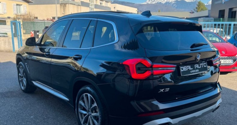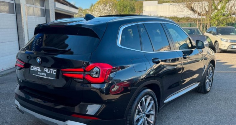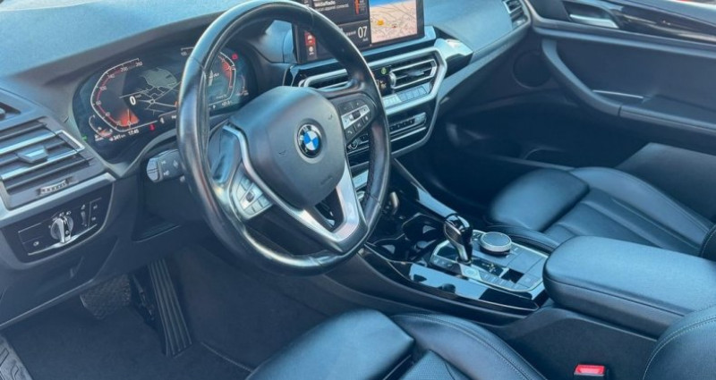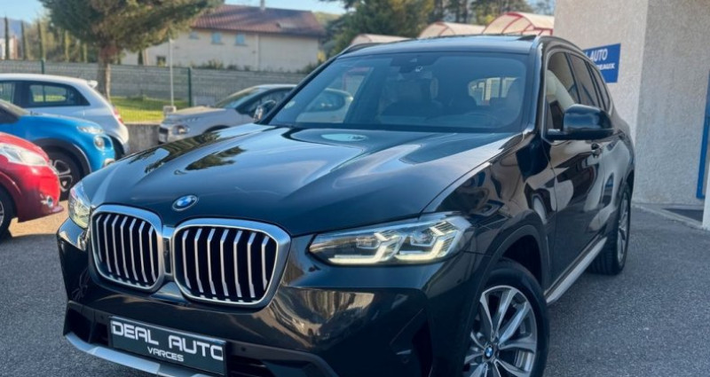 Bmw X3 sDrive18d 150ch xLine, (S.U.V.), Saphirschwarz métallisée, 8cv, 5 portes, mise en circulation le 15-06-2022, première main, garantie 6 mois. 5 places, longueur : 4,71 mètres, poids en charge 2410 Kg, boîte de vitesse : automatique OPTIONS ET EQUIPEMENTS : Audio - Télécommunications - Appel d'Assistance Localisé - Appel d'Urgence Localisé - Borne Wi-Fi - Commandes du système audio au volant - Commandes vocales - Ecran tactile - Fonction MP3 - GPS Cartographique - Interface Media - Kit mains-libres Bluetooth - Prise USB - Radio - Radio numérique DAB - Services connectés - TMC Conduite - Arrêt et redémarrage auto. du moteur - Capteur de luminosité - Capteur de pluie - Commande Mode ECO - Commande du comportement dynamique - Démarrage sans clé - Limiteur de vitesse - Régulateur de vitesse - Système d'assistance à la descente Extérieur - Buses de lave-glace chauffantes - Caméra de recul 360° - Ceinture de vitrage chromée - Coffre assisté électriquement - Echappement à double sortie - Filtre à particules - Jantes Alu - Phares avant LED - Poignées ton carrosserie - Radar de stationnement AR - Radar de stationnement AV - Répétiteurs de clignotant dans rétro ext - Rétroviseurs dégivrants - Rétroviseurs ext. indexés à la marche AR - Rétroviseurs extérieurs électrochromes - Rétroviseurs rabattables électriquement - Rétroviseurs électriques - Sortie d'échappement chromée - Système d'assistance au stationnement - Système de mesure de place disponible - Toit ouvrant panoramique Intérieur - Accoudoir arrière - Accoudoir central AV - Bacs de portes avant - Banquette 40/20/40 - Banquette AR rabattable - Banquette arrière 3 places - Clim automatique tri-zones - Commande Climatisation AR - Compte tours - Ecran multifonction couleur - Filtre à Pollen - Fixations Isofix aux places arrières - Miroir de courtoisie conducteur - Miroir de courtoisie passager - Ordinateur de bord - Ouverture des vitres séquentielle - Porte-gobelets avant - Prise 12V - Rétroviseur intérieur électrochrome - Siège conducteur réglable en hauteur - Siège passager réglable en hauteur - Sièges avant chauffants - Tablette cache bagages - Température extérieure - Vitres arrière électriques - Vitres avant électriques - Volant cuir - Volant multifonction - Volant réglable en profondeur et hauteur - Volant sport Sécurité - ABS - Aide au freinage d'urgence - Airbag conducteur - Airbag passager déconnectable - Airbags latéraux avant - Airbags rideaux - Airbags rideaux AR - Antidémarrage électronique - Antipatinage - Contrôle de Traction - Contrôle élect. de la pression des pneus - EBD - ESP - Freinage automatique d'urgence - Système de détection de somnolence - Système de prévention des collisions - Troisième ceinture de sécurité Autres équipements et informations : - Saphirschwarz métallisée - Cuir noir - Toit ouvrant panoramique Ideal Auto Varces 34 rue du Peuil 38760 Varces