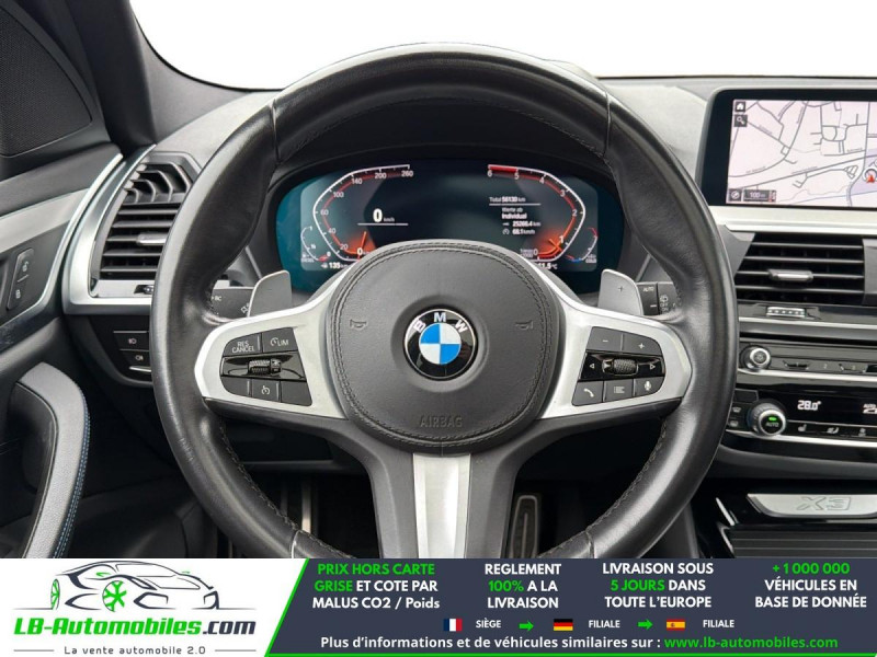 Référence : 1190464 Vos Avantages chez LB-AUTOMOBILES.com / Prix affiché TTC Livré hors carte grise / Livraison sous 10 jours dans toute la France hors 31 / Pas d?avance de frais paiement du véhicule 100% à la livraison par virement. BMW X3 Neuf remisée, BMW X3 Occasion Toulouse Beaupuy 31850, BMW X3 Véhicule sorti de réseau collaborateur, BMW X3 import, BMW X3 importateur, BMW X3 Livraison possible dans toute la France sous 5 jours, BMW X3, BMW X3 Location Option Achat, BMW X3 LLD, BMW X3 Longue Durée, BMW X3 TVA récupérable. Possibilité d'extension de garantie 12, 24,36 mois, Pour tout autres voitures import neufs ou occasions collaborateur fortement remisée, Mandataire Audi, Mandataire BMW, Mandataire Volkswagen, Mandataire Mercedes, Mandataire Peugeot Espagne, Mandataire Renault Espagne, Porsche import, Mandataire Citroën Espagne, Mandataire Seat Espagne, n'hésitez pas à nous contacter. « Sous réserve de vente préalable et erreur de saisie » Principaux équipements : - 4x4 - ABS - Accoudoir - Affichage tête haute - Android Auto - Antidémarrage - Apple CarPlay - Assistance au freinage d'urgence - Assistance de démarrage en côte - Assistant d'angle mort - Assistant de sortie de stationnement - Assistant feux de route - Attache remorque pivotante - Avertisseur de franchissement de ligne - Bluetooth - Boîte de vitesses robotisée - Capteur de lumière - Capteur de pluie - Carnet d'entretien - Cockpit numérique - Commande vocale - Contrôle de la pression des pneus - Diesel avec filtre à particules - Direction assistée - Éclairage adaptatif de virage - Éclairage d'ambiance - Éclairage route non éblouissant - Écran tactile - ESP - Fermeture centralisée - Feux de jour LED - Galerie de toit - Garantie - GPS - Grille de protection pour coffre - Hayon électrique - Isofix - Jantes alliage - Kit mains libres - Ordinateur de bord - Pack sport - Phare antibrouillard - Phares laser - Pneus été - Port USB - Radio DAB - Régulateur de vitesse - Rétroviseur extérieur électrique - Rétroviseur intérieur anti-éblouissement automatique - Rétroviseurs extérieurs rabattables électriquement - Sièges chauffants - Sièges sport - Streaming musical intégré - Support lombaire - Suspension sport - Système antipatinage - Système d'alarme - Système d'appel d'urgence - Système d'avertissement de la distance - Système de détection de la fatigue - Système de reconnaissance des panneaux de signalisation - Système de sonorisation - Système Stop & Start - Toit panoramique - Tuner/radio - Véhicule non-fumeur - Verrouillage centralisé sans clé - Vitres électriques - Vitres teintées - Volant en cuir - Volant multifonction - WLAN / point d'accès Wi-Fi