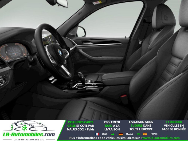 Référence : 1183082 Vos Avantages chez LB-AUTOMOBILES.com / Prix affiché TTC Livré hors carte grise / Livraison sous 10 jours dans toute la France hors 31 / Pas d?avance de frais paiement du véhicule 100% à la livraison par virement. BMW X3 Neuf remisée, BMW X3 Occasion Toulouse Beaupuy 31850, BMW X3 Véhicule sorti de réseau collaborateur, BMW X3 import, BMW X3 importateur, BMW X3 Livraison possible dans toute la France sous 5 jours, BMW X3, BMW X3 Location Option Achat, BMW X3 LLD, BMW X3 Longue Durée, BMW X3 TVA récupérable. Possibilité d'extension de garantie 12, 24,36 mois, Pour tout autres voitures import neufs ou occasions collaborateur fortement remisée, Mandataire Audi, Mandataire BMW, Mandataire Volkswagen, Mandataire Mercedes, Mandataire Peugeot Espagne, Mandataire Renault Espagne, Porsche import, Mandataire Citroën Espagne, Mandataire Seat Espagne, n'hésitez pas à nous contacter. « Sous réserve de vente préalable et erreur de saisie » Principaux équipements : - 4x4 - ABS - Accoudoir - Affichage tête haute - Antidémarrage - Assistance au freinage d'urgence - Assistance de démarrage en côte - Assistant feux de route - Attache remorque pivotante - Avertisseur de franchissement de ligne - Bluetooth - Boîte de vitesses robotisée - Capteur de lumière - Capteur de pluie - Carnet d'entretien - Chargement par induction pour smartphones - Cockpit numérique - Commande vocale - Contrôle de la pression des pneus - Diesel avec filtre à particules - Direction assistée - Éclairage adaptatif de virage - Éclairage d'ambiance - Éclairage route non éblouissant - Écran tactile - ESP - Fermeture centralisée - Feux de jour LED - Galerie de toit - Garantie - GPS - Grille de protection pour coffre - Hayon électrique - Isofix - Jantes alliage - Kit mains libres - Lecteur CD - Ordinateur de bord - Phare antibrouillard - Phares LED - Port USB - Radio DAB - Réglage électrique des sièges - Régulateur de vitesse adaptatif - Rétroviseur extérieur électrique - Rétroviseur intérieur anti-éblouissement automatique - Sièges chauffants - Sièges sport - Support lombaire - Système antipatinage - Système d'alarme - Système d'appel d'urgence - Système d'avertissement de la distance - Système de détection de la fatigue - Système de reconnaissance des panneaux de signalisation - Système de sonorisation - Système Stop & Start - Tuner/radio - Véhicule non-fumeur - Verrouillage centralisé sans clé - Vitres électriques - Vitres teintées - Volant en cuir - Volant multifonction - WLAN / point d'accès Wi-Fi
