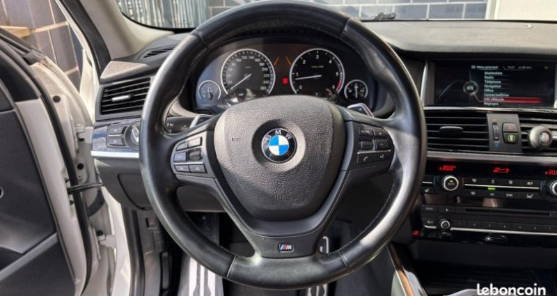 BMW X4 30d 258ch X-LINE XDRIVE - Toit ouvrant Harman Kardon Caméra 360 crossover, suv, blanc, 16 cv, 5 portes, première mise en circulation le 29/05/2015, garantie 6 mois. - NOS SERVICES ET PRESTATIONS COMPLÉMENTAIRES - - Visite virtuelle : avant de vous déplacer, visualisez votre futur véhicule sous toutes ses coutures . Contactez-nous pour en voir plus ! - Extension de garantie jusqu'à 60 mois. - Solutions de Financement de 12 à 84 mois. - Livraison dans toute la France métropolitaine (sur devis). - Reprise possible de votre ancien véhicule. - Les informations délivrées par cette annonce sont non contractuelles et données à titre indicatif. Packs disponibles (véhicules éligibles au Label) - Pack Clés en Main - 691 € TTC(¹)(²) Démarches (hors carte grise) | 1/4 de carburant | Nettoyage First | Garantie 6 mois | Label inclus? - Pack Sérénité - 891 € TTC(¹)(²)- Démarches (hors carte grise) | 1/2 de carburant | Nettoyage Confort | Garantie 12 mois | Label inclus? - Pack Prestige - 1.091 € TTC(¹)(²) Démarches (hors carte grise) | Plein complet | Nettoyage Prestige | Garantie 12 mois | Label inclus? + Surprise du chef - (¹) Les véhicules non éligibles au Label bénéficient de tarifs préférentiels. Veuillez contacter votre conseiller pour obtenir les conditions tarifaires applicables. (²) Tarif pour les véhicules deux roues motrices dont la valeur de vente est inférieure à 60 000 € TTC. - - Véhicule visible uniquement sur rendez-vous. - Nous sommes ouverts du lundi au samedi de 9h00 à 18h00. 5 places OPTIONS ET ÉQUIPEMENTS : Audio - Télécommunications : - Radio - Système audio Harman Kardon - Système d'avertissement de distance - Bluetooth - GPS - Prise audio usb - prise audio auxiliaire - système de navigation Conduite : - Choix du mode de conduite - Essuies glaces automatiques - Frein de parking auto - Frein de parking électrique - Front assist - Stop & Start - affichage tête haute - allumage automatique des feux - démarrage sans clé - détecteur de pluie - limiteur de vitesse - palettes au volant - régulateur de vitesse Couleur : - Peinture métallisée Extérieur : - Capteurs d'aide au stationnement arrière - Capteurs d'aide au stationnement avant - Ceinture de vitrage chromée - Hayon électrique - Phares AR à led - Phares AV de jour à LED - Phares Full LED - camera 360 - jantes : aluminium - jantes alliage - phares à LED - rétroviseurs rabattables - système d'aide au stationnement - toit ouvrant - toit ouvrant électrique Intérieur : - Pédalier sport - Siège conducteur à mémoire - Sièges AV électriques - climatisation : automatique - climatisation multi zone - direction assistée - fermeture centralisée - non fumeur - ordinateur de bord - rétroviseur interieur electrochrome - sièges chauffants - trappe à ski - verrouillage à distance - vitres surteintées - vitres électriques - volant réglable hauteur - volant réglable profondeur Pack : - Boîte de vitesse automatique - Finition M sport - Mode Eco - Mode sport - Mode sport + - Pneus été - 4 roues motrices - GPS couleur - anti démarrage - détecteur de lumière - nombre de rapports : 8 vitesses - soundsystem - volant multifonctions - volant réglable - Écran multifonction Sellerie : - Sellerie cuir Sécurité : - Airbags - Lecture des panneaux - Radar anti-collision - ABS - Aide au demarrage en pente - ESP - airbag coté passager - airbags latéraux - anti-patinage - fixations ISOFIX Autres équipements et informations : - Double des clés - Factures d'entretien - Mode normal - Classe Crit'air : 2 - Puissance kilowatt : 190 kw - USB - dimension des jantes : 19 pouces - puissance réelle : 258 ch - émission CO2 : 156 g/km - état : excellent Référence annonce : d147508