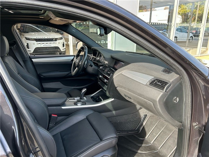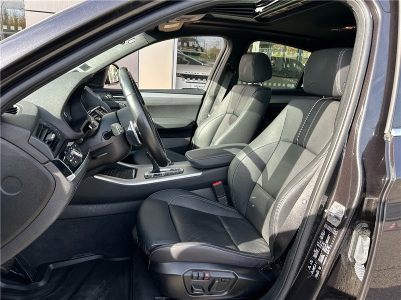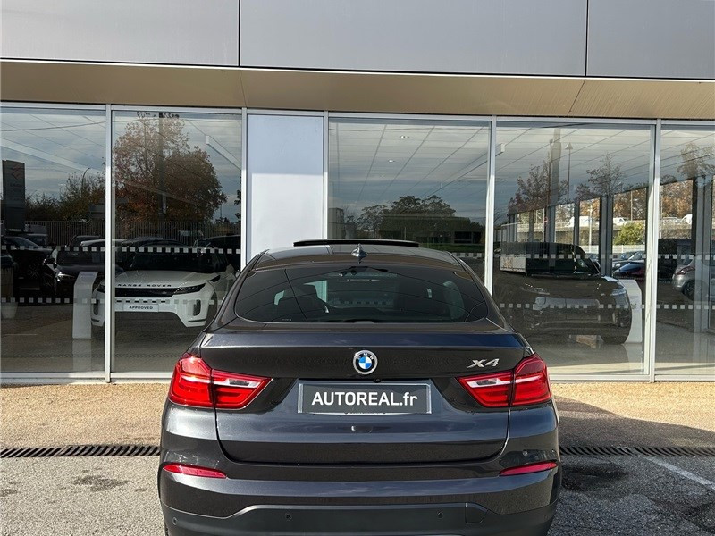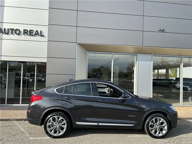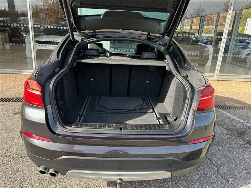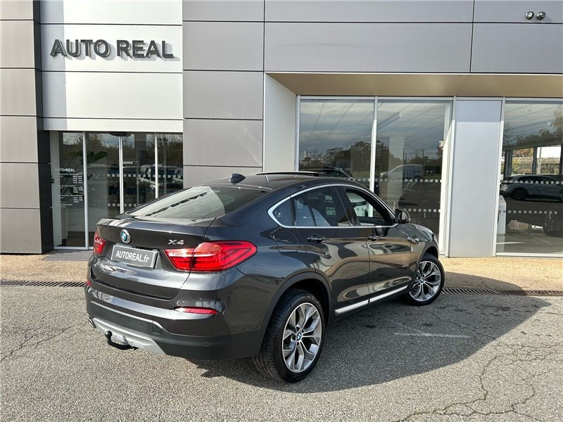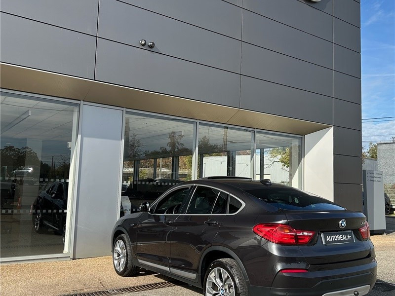 3ème feu de stop dans le becquet de hayon / 5 places / ABS, y compris assistant de freinage et Contrôle de freinage en courbe CBC / Accoudoir chauffant au niveau des portières et de la console centrale AV / Accoudoirs chauffants au niveau des portières et de la console centrale à l'AV. / Affichage BMW EfficientDynamics dans le cadran d'instrumentation / Affichage "xDrive" avec affichage de l'inclinaison longitudinale/transversale et de l'angle de / Airbags conducteur et passager AV + latéraux + airbag de tête AV/AR / Application brillante "schwarz" au niveau de la console centrale et autour des commandes audio / Appuis-tête à toutes les places (actifs et réglables manuellement en hauteur et profondeur à l'AV) / BMW Apps / Boîte de vitesses automatique avec palettes au volant / Boîte de vitesses automatique Sport à 8 rapports / Bouton Start/Stop avec démarrage sans actionner la clé / Buses de lave-glace chauffantes (non visibles) / Capteur d'impact (déverouillage du véhicule, allumage de l'éclairage de l'habitacle et activation / Catadioptres rétro-réfléchissants intégrés à l'AR (gauche et droite) / Ceintures de sécurité AV avec prétensionneur pyrotechnique et limiteur de tension à l'AV / Chrome Line extérieur / Commande de verrouillage des portes dans les portes (conducteur + passager) / Commande électrique du hayon avec ouverture/fermeture possible via un bouton dans le poste de / Compartiments de rangement dans les portes AV/AR avec porte-bouteilles (1,5L à l'AV et 1,0L à l'AR) / Console centrale type F15 (commandes des systèmes de climatisation + audio) avec application / Construction allégée intelligente / Contrôle de la Transmission / Contrôle de motrice en descente (HDC) / Contrôle Dynamique de Stabilité DSC+ avec fonctionnalités étendues (y compris assistant de démarrage / Controller iDrive avec touches d'accès direct et 8 touches de raccourci programmables / Désactivation de l'airbag passager avec témoin lumineux dans la console de toit / Détecteur de pluie et allumage automatique des projecteurs / Direction assistée avec Servotronic / Direction DirectDrive à démultiplication variable / Direction Servotronic à assistance variable en fonction de la vitesse / Eclairage de bienvenue soft-on/soft-off (ciel de pavillon à l'AV et à l'AR) / Eclairage du coffre (à gauche et à droite) / Eclairage intérieur soft-on/soft-off (ciel de pavillon à l'AV et à l' AR) / Ecran d'information central couleur 6,5'' (800x480 pixels) pour affichage des données de / Ecran d'information de 2,7" (6,8 cm) dans le combiné d'instrumentation / Ecran d'information de 5,7" dans le combiné d'instrumentation / Eléments extérieurs couleur carrosserie, pare-chocs partiellement peints / Encadrement des vitres latérales en Aluminium Line satiné / Equipements Fintion Lounge Plus / Feux AR avec conduits lumineux à LED / Feux stop AR dynamique / Finition xLine / Fonction "Ma BMW à distance" (à vie) / Fonction "roue libre" du mode ECO PRO / Frein de parking électromécanique avec fonction "Automatic Hold" / Freins à disques ventilés AV/AR / Grille de calandre chromée avec barres couleur titane / Information Trafic en Temps Réel RTTI (3 ans) / Inscription du modèle "X4" à l'AR (hayon) et de la motorisation sur les flancs latéraux / Inserts décoratifs en Aluminium brossé / Instrumentation de bord avec technologie LCD pour la partie basse / Interface Bluetooth et port USB / Jantes en alliage léger 18'' style 607 à rayons en Y, 8Jx18" / pneus 245/50 R18 / Kit de mobilité BMW / Kit de rangement / Kit éclairage / Lève-vitres AV/AR électriques à commande à impulsion et protection anti-coincement / Lève-vitres électriques AVet AR, commande par impulsion et protection anti-coincement / Ligne xLine / Mesure individuelle de pression des pneumatiques / Mode ECO PRO avec fonction "roue libre" pour les vitesses comprises entre 50 et 160 km/h / Mode ECO PRO sur le sélecteur de mode de conduite / Motorisations BMW TwinPower Turbo: Diesel : composé d'un turbocompresseur à géométrie variable, de / Navigation multimédia Professional / Ordinateur de bord avec Check-Control et indicateur de temperature extérieure / Pare-soleil AV avec miroir de courtoisie / Pneumatiques à faible résistance au roulement / Pneumatiques RSC permettant le roulage à plat / Port audio USB et prise AUX IN dans l'accoudoir central AV / Porte-boissons (2 dans la console centrale AV) / Prises 12V (1 x dans la console centrale AV et 1 x dans le coffre) / Projecteurs bi-Xenon avec lave-projecteurs / Protection contre les impacts latéraux / Réglages individualisés Personal Profile mémorisés dans la radiocommande / Régulateur de vitesse avec fonction freinage / Renforcements noirs pour les pare-chocs, les seuils latéraux et les passages de roues / Respect de la norme EU6 / Rétroviseur intérieur électrochrome / Sélecteur de mode de conduite - 4 modes : "ECO PRO", "Comfort", "Sport" et "Sport +" / Sellerie cuir Nevada avec empiècement dans le dossier et embossage "X" sur les appuis-tête / Services Après-vente connectés BMW TeleServices / Services BMW ConnectedDrive : Services ConnectedDrive (3 ans), Information Trafic en Temps Réel RTTI / Sièges Advanced pour conducteur et passager AV / Sièges AV électriques à mémoires conducteur / Sortie d'echappement ronde double (gauche) chromée / Système de récuperation de l'énergie au freinage / Tapis de sol en velours / Technologie 4 roues motrices intelligente xDrive / Touches multifonctions sur le volant / Train AV à double articulation des pivots de fusée et train AR à 5 bras / Triangle de présignalisation avec trousse de premiers secours