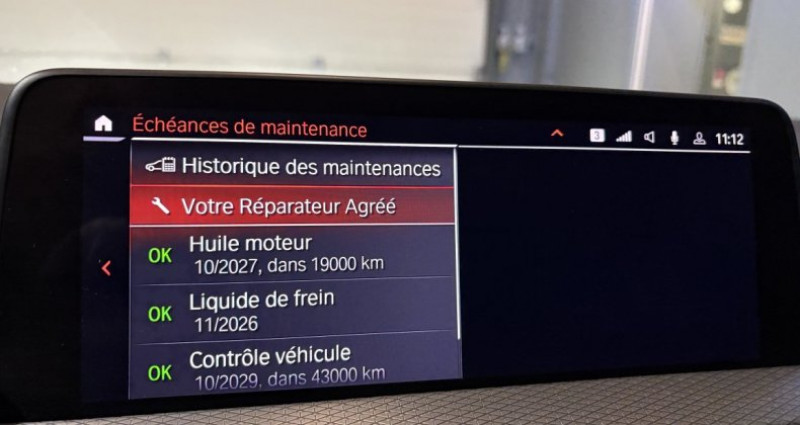 Cylindrée : 1995 cm3 Nb. Vitesse : 8 - 3ème feu stop à LED - 5 sièges - ABS avec assistant de freinage d'urgence - Accoudoir central AV/AR - Airbag passager AV déconnectable - Airbags conducteur et passager AV - Airbags de tête AV/AR - Airbags latéraux AV - Alarme antivol - Antidémarrage électronique EWS IV - Appel d'Urgence Intelligent (durée de vie de la voiture) - Appuis-tête AV/AR - Attention Assist: Signale la perte de vigilance du conducteur - Autoradio BMW Professional - Baguettes de seuil de porte AV - Banquette AR rabattable 40/20/40 - Bluetooth - BMW Gesture Command - BMW Live Cockpit Navigation Pro - Boîte de vitesses automatique avec palettes au volant - Bouton de démarrage Start/Stop sans manipulation de la clé - Buses de lave-glace chauffantes - Capacité du réservoir augmentée - Ceintures de sécurité 3 points - Ciel de pavillon 'Anthrazit' - Ciel de pavillon M anthracite - Clé radiocommandée à mémorisation automatique des réglages 'Personal Profil' - Climatisation automatique 3 zones - Colone de direction réglable en hauteur et profondeur - Commande électrique du hayon - Connectivité avancée sans fil avec recharge par induction - Contrôle de la transmission - Contrôle Dynamique de stabilité DSC - Contrôle dynamique de traction DTC - Désignation du modèle - Détecteur de pluie et allumage automatique des projecteurs - Déverrouillage électrique du hayon via la poignée ou la clé radiotélécommandée - Direction DirectDrive à démultiplication variable - Eclairage d'ambiance - Ecrous antivol de roues - Ecrous de roues antivol - Eléments extérieurs (poignées de portes) couleur carrosserie - Equipements Finition M Sport - Feu de brouillard AR - Feux antibrouillard AR - Feux AR à LED - Feux de route anti-éblouissement - Feux de stop dynamiques clignotants - Finition M Sport - Fixation ISOFIX aux places latérales AR - Fonction d'arrêt et de redémarrage automatique du moteur BMW Efficient Dynamics - Frein de parking électromécanique - Hotspot Wi-Fi - Inserts décoratifs en Aluminium Rhombicle souligné de chrome perlé - Inserts décoratifs M Aluminium Rhombicle - Jantes en alliage 19' style 698 M à rayons doubles - Kit aérodynamique M - Kit de rangement - Kit éclairage - Lève-vitres AV/AR électriques avec commande par impulsion et sécurité enfants - Limiteur et régulateur de vitesse avec maintien de la vitesse en descente - Mesure individuelle de pression des pneumatiques - Notice d'utilisation de la voiture intégrée et carnet d'entretien électronique avec BMW Service History - Pack Advanced Full LED - Pack BMW ConnectedDrive - Pack Connected Pro - Prise 12V - Projecteurs antibrouillard AV à LED - Projecteurs AV à LED - Radars de stationnement AV/AR PDC - Rétroviseur intérieur électrochrome - Rétroviseurs extérieurs couleur carrosserie à réglages électriques et dégivrants - Rétroviseurs extérieurs électrochromes (côté conducteur) et rabattables électriquement - Sélecteur de mode de conduite- 3 modes : ECO PRO, Comfort, Sport - Sellerie Tissu / Cuir 'Vernasca' - Services Après-vente connectés BMW Teleservices (durée de vie de la voiture) - Services ConnectedDrive (3 ans) - Shadow Line brillant - Shadow Line M brillant - Sièges Advanced pour conducteur et passager AV - Sièges AV avec appui lombaire ajustable - Sortie d'echappement double (une de chaque côté) chromée - Sortie d'echappement double chromée - Suspension DirectDrive - Système de manoeuvres entièrement automatiques 'Park Assist' - Système de récuperation de l'énergie au freinage BMW Efficient Dynamics - Tapis de sol en velours - Technologie 4 roues motrices xDrive - Technologie BMW TwinPower Turbo avec injection directe et turbocompresseur Twin Scroll et commande Double VANOS et Valvetronic (BMW EfficientDynamics) - Teinte de carrosserie unie (Alpinweiss) - Touches multifonctions sur le volant - Triangle de présignalisation avec kit de premiers secours - Tuner DAB - Volant M gainé cuir - Volant Sport Cuir