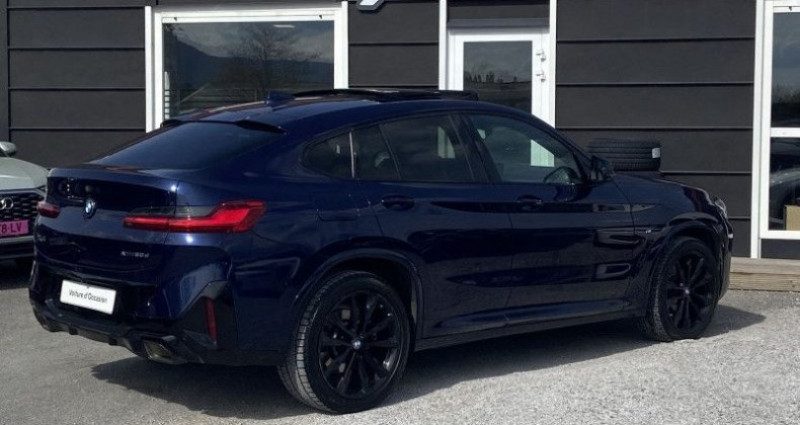 Bmw X4 (G02) XDRIVE20D 190CH M SPORT, (S.U.V.), BLEU F, 10cv, 5 portes, mise en circulation le 01-12-2022. 5 places, longueur : 4,75 mètres, boîte de vitesse : automatique OPTIONS ET EQUIPEMENTS : Audio - Télécommunications - Appel d'Assistance Localisé - Appel d'Urgence Localisé - Borne Wi-Fi - Commandes du système audio au volant - Commandes vocales - Disque dur multimédia - Ecran tactile - Fonction MP3 - GPS Cartographique - Kit mains-libres Bluetooth - Prise USB - Radio - Radio numérique DAB - Services connectés - TMC Conduite - Arrêt et redémarrage auto. du moteur - Capteur de luminosité - Capteur de pluie - Commande du comportement dynamique - Démarrage sans clé - Limiteur de vitesse - Palettes changement vitesses au volant - Régulateur de vitesse - Suspensions Sport Extérieur - Buses de lave-glace chauffantes - Caméra de recul - Coffre assisté électriquement - Echappement à double sortie - Eclairage au sol - Eclairage statique d'intersection - Feux arrière à LED - Feux de jour à LED - Feux de position à LED - Filtre à particules - Jantes Alu - Park Assist Plus - Phares avant LED - Phares directionnels - Poignées ton carrosserie - Radar de stationnement AR - Radar de stationnement AV - Répétiteurs de clignotant dans rétro ext - Rétroviseurs dégivrants - Rétroviseurs ext. indexés à la marche AR - Rétroviseurs extérieurs électrochromes - Rétroviseurs rabattables électriquement - Rétroviseurs électriques - Sortie d'échappement chromée - Système d'assistance au stationnement - Système d'éclairage intelligent - Système de mesure de place disponible - Toit ouvrant panoramique en verre Intérieur - Accoudoir arrière - Accoudoir central AV avec rangement - Appui-tête conducteur réglable hauteur - Appui-tête passager réglable en hauteur - Bacs de portes arrière - Bacs de portes avant - Banquette 40/20/40 - Banquette AR rabattable - Banquette arrière 3 places - Boite à gants fermée - Clim automatique tri-zones - Compte tours - Eclairage d'ambiance - Ecran multifonction couleur - Filtre à Pollen - Fixations Isofix aux places arrières - Lampes de lecture à l'avant - Lunette arrière - Miroir de courtoisie conducteur - Miroir de courtoisie passager - Ordinateur de bord - Ouverture des vitres séquentielle - Pack Hiver - Porte-gobelets arrière - Porte-gobelets avant - Prise 12V - Rétroviseur intérieur électrochrome - Siège conducteur réglable en hauteur - Siège passager réglable en hauteur - Sièges AV ac appui lombaire ajustable - Sièges AV chauffants - Sièges avant sport - Température extérieure - Verrouillage centralisé à distance - Vitres arrière électriques - Vitres avant électriques - Vitres teintées - Volant Chauffant - Volant cuir - Volant multifonction - Volant réglable en profondeur et hauteur - Volant sport Sécurité - ABS - Aide au freinage d'urgence - Airbag conducteur - Airbag passager - Airbag passager déconnectable - Airbags latéraux avant - Airbags rideaux - Airbags rideaux AR - Alarme antivol - Alarme périmétrique - Antidémarrage électronique - Antipatinage - Contrôle de Traction - Contrôle de couple en courbe - Contrôle de freinage en courbe - Contrôle élect. de la pression des pneus - Drive Assist - EBD - ESP - Régulateur de vitesse actif ACC+ - Système de détection de somnolence - Troisième ceinture de sécurité Autres équipements et informations : - Alpinweiss - Accès confort avec BMW Digital Key - Commande gestuelle BMW - Connect avancée+rech induction si ZCD Kilométrage non garanti. Référence annonce : 7795