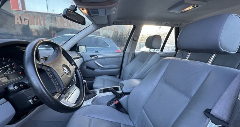Bmw X5 (E53) 3.0IA 231CH PACK LUXE, (4×4 Tout terrain), GRIS F, 17cv, mise en circulation le 19-06-2003, garantie 6 mois (GARANTIE COMMERCIALE OFFERTE).   couleur intérieur : GRIS, longueur : 4,67 mètres, boîte de vitesse : automatique  OPTIONS ET EQUIPEMENTS : Audio - Télécommunications - GPS Cartographique - Radio CD  Conduite - Régulateur de vitesse  Extérieur - Jantes Alu - Pack Nord - Peinture métal - Phares xénon  Intérieur - Clim automatique - Direction assistée - Pack électrique  Sécurité - Airbags latéraux avant - ESP  Autres équipements et informations : - Sellerie cuir  Kilométrage non garanti.  Référence annonce : 9976