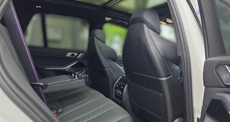 ======= OPTIONS ======= Attelage de remorque Assistance parking avant et arrière avec caméra de recul et vue 360° BMW Drive Recorder Ciel de pavillon en alcantara BMW Individual Clé intelligente BMW Display Key Fermeture assistée des portes « Soft Close » Fonction massage des sièges avant Jantes en alliage 21? 22? style 809 M bicolores à rayons en étoile avec pneumatiques mixtes Régulateur de vitesse adaptatif (ACC) Recouvrement moteur M Carbone Sièges arrières chauffants Sièges avant à ventilation active Système Hi-Fi Bowers & Wilkins Surround Sound System Télécommande universelle intégrée Teinte de carrosserie métallisée Toit ouvrant panoramique en verre Sky Lounge ======= EQUIPEMENTS DE SERIE ======= Accès Confort avec préparation BMW Digital Key Affichage tête haute couleur Climatisation automatique 4 zones Commande gestuelle BMW Eclairage d ambiance Shadow Line M brillant étendu Sièges AV électriques à mémoires Sièges avant chauffants Sièges M multifonctions Suspensions SelectDrive M Pro Nb. Vitesses : 8 Conso Mixte : l/100