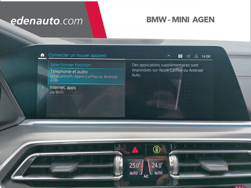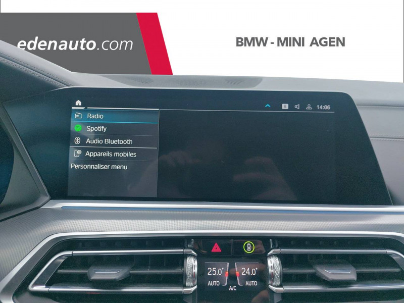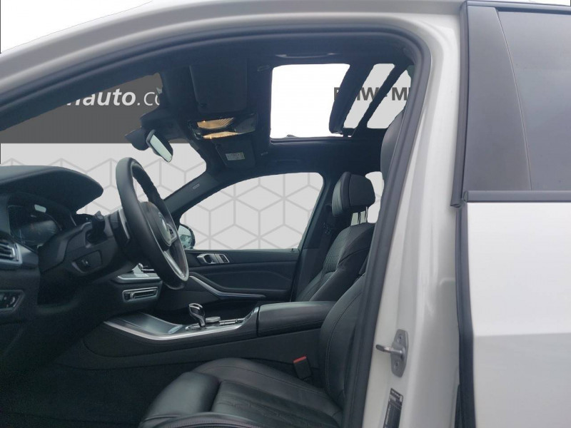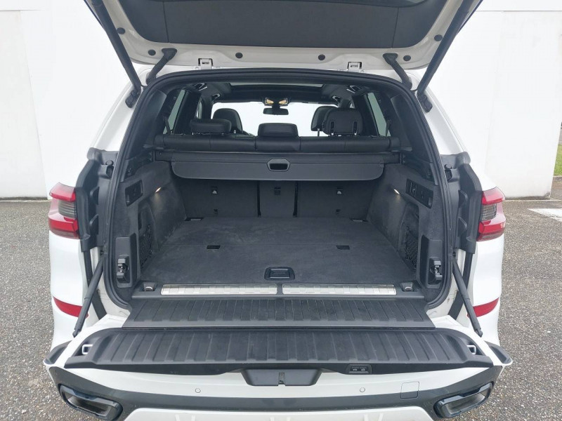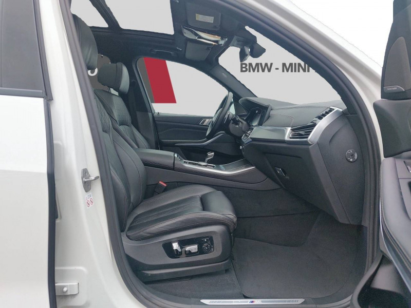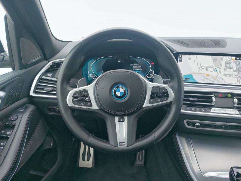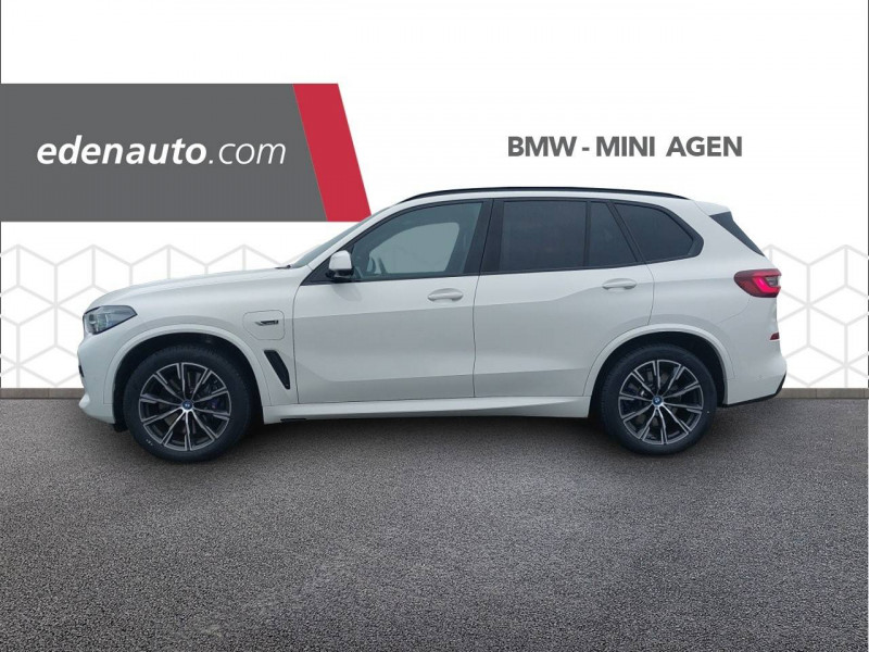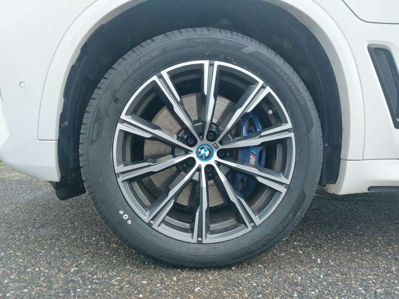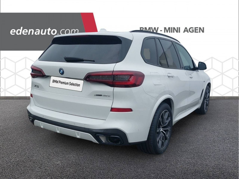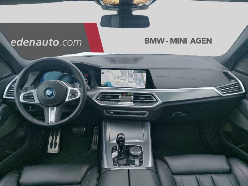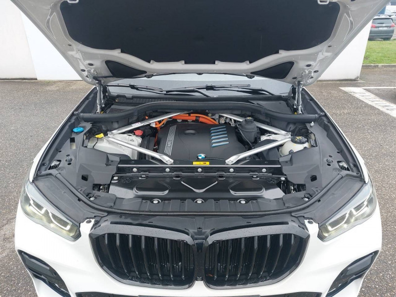3ème feu stop / 5 sièges / Accoudoir central AR avec 2 portes boissons et un compartiment de rangement / Accoudoir dans la console centrale et dans les portes AV et AR / Active Guard Plus / Airbags de tête pour la 1ère et la 2ème rangée / Alarme antivol / Appel d'Urgence Intelligent (durée de vie de la voiture) / Arches des roues noir grainé / Attention Assist: Signale la perte de vigilance du conducteur / Aumonières au dos des sièges AV / Autoradio BMW Professional 7 touches de favoris programmables et "Controller" iDrive avec touches de raccourci, Tuner RDS, info-route / Avertisseur sonore pour piétons / Baguettes de seuil de porte avec l'inscription BMW à l'AV et à l'AR illuminées / BMW Connected + (3 ans) / BMW Live Cockpit Navigation Pro / Boîte de vitesses automatique Sport avec palettes au volant / Bouton de démarrage Start/Stop sans manipulation de la clé / Buses de lave-glace chauffantes / Câble de recharge T2-T2 (1 phase - 5 mètres) / Ciel de pavillon M anthracite / Clés radiocommandées à mémorisation automatique des réglages "Personal Profile" / Connection USB type A (zone des porte-boissons) / Connection USB type C (dans l'accoudoir central AV) / Connectivité avancée sans fil avec recharge par induction / Désignation du modèle "X5" à gauche et "xDrive" à droite sur le hayon / Détecteur de pluie et allumage automatique des projecteurs / Direction à assistance électrique Servotronic BMW Efficient Dynamics / Eclairage d'accueil / Eclairage d'ambiance / Ecrous de roues antivol / Entourage des vitres en aluminium satiné / Equipements Finition M Sport / Feux de stop dynamiques clignotants / Fonction d'arrêt et de redémarrage automatique du moteur BMW Efficient Dynamics / Freins à disques ventilés AV/AR / Freins M Sport Etriers de freins bleus avec désignation M / Grille de calandre chromée en une seule pièce / Hayon ouvrant en deux parties avec commande électrique de la partie supérieure / Hotspot Wi-Fi / Insert de côté en noir grainé / Inserts décoratifs M Aluminium Tetragon / Instrumentation avec 4 combinés ronds haute résolution 5,7" couleur / Jantes en alliage 19" style 734 à rayons en V (comprend Ecrous antivol de roues) / Kit aérodynamique M / Kit de rangement / Kit éclairage / Lève-vitres AV/AR électriques avec commande par impulsion et sécurité enfants / Limiteur et régulateur de vitesse avec maintien de la vitesse en descente / Mesure individuelle de pression des pneumatiques / Notice d'utilisation de la voiture intégrée et carnet d'entretien électronique avec BMW Service History / Pack Connected Pro / Planche de bord en Sensatec / Poches de porte AV/AR (1 bouteille de 1,0 l peut être placée confortablement dans la poche de porte) / Prises 12V (2 dans la planche de bord/console centrale et 1 dans le compartiment à bagage) / Protection contre les impacts latéraux / Rails de toit Shadow Line M brillant / Rétroviseurs extérieurs à réglages électriques et dégivrants, miroir asphérique côté conducteur, rappels de clignotants intégrés / Rétroviseurs extérieurs rabattables électriquement, rétroviseurs intérieur et extérieur (côté conducteur) électrochromes / Sélecteur de mode de conduite - 3 modes : ECO PRO, Comfort, Sport / Sellerie Simili-Cuir Sensafin / Services Après-vente connectés BMW Teleservices (durée de vie de la voiture) / Services ConnectedDrive (3 ans) comprend la fonctionnalité BMW Apps / Shadow Line M brillant / Sièges Advanced pour conducteur et passager AV / Sièges AV électriques à mémoires conducteur / Sortie d'echappement double chromée / Soubassement AV et AR noir grainé / Suspension pneumatique à l'AV et à l'AR avec correcteur d'assiette / Système de manoeuvres entièrement automatiques "Park Assist" / Système de récuperation de l'énergie au freinage BMW Efficient Dynamics / Tapis de sol en velours / Technologie 4 roues motrices intelligente xDrive / Teinte de carrosserie unie (Alpinweiss) / Trappe de recharge électrique coté conducteur avec badge "electrified by i" et signal lumineux de l'état de charge / Triangle de présignalisation avec kit de premiers secours / Tuner DAB / Vitres avec protection contre la chaleur et le soleil / Welcome Pack BMW avec carte BMW Charging