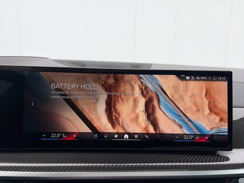 1 clé radiocommandée à mémorisation automatique des réglages "Personal Profile" / 1 Setup Card & 1 / 5 sièges / Accès Confort avec préparation "BMW Digital Key" / Accoudoir central AR avec 2 portes boissons et un compartiment de rangement / Accoudoir dans la console centrale et dans les portes AV et AR / Active Guard - Avertissement de franchissement de ligne avec impulsion sur la direction - Avertisseur de collision frontale avec intervention de freinage - Avertisseur de présence d'un véhicule lors d'un changement de direction vers la gauche avec action sur les freins - Avertisseur d'intersection - Avertisseur présence piéton/cycliste lors d'un virage en intersection - Assistance d'évitement en cas de risque de collision frontale / Airbags de tête pour la 1ère et la 2ème rangée / Airbags latéraux pour la 1ère et la 2ème rangée / Alarme antivol / Aluminium Line satiné / Appel d'Urgence Intelligent (durée de vie de la voiture) / Appui lombaire ajustable / Appuis-tête pour tous les sièges / Attention Assist: Signale la perte de vigilance du conducteur / Aumonières au dos des sièges AV / Avertisseur sonore pour piétons / Baguette de seuil de porte avec l'inscription BMW AV et AR illuminées / BMW IconicSounds Electric / BMW Live Cockpit Navigation Plus / Boîte de vitesses automatique Sport avec palettes au volant / Bouton de démarrage Start/Stop sans manipulation de la clé / Câble de recharge Professionnel Mode 3 (T2-T2) pour la recharge publique - 5 mètres / Chargeur rapide AC Plus 11kW / Ciel de pavillon M anthracite / Controller molette iDrive / Dalle de recharge par induction / Désignation de la motorisation sur le hayon à droite / Désignation du modèle sur le hayon à gauche / Détecteur de pluie et allumage automatique des projecteurs / Diffuseur AR en gris glacier / Direction à assistance électrique Servotronic / Drive Assistant / Eclairage au sol (Welcome Light Carpet) / Eclairage d'ambiance / Eclairage de jour / Ecrous de roues antivol / Fermeture du véhicule avec verrouillage centralisée / Feux de route anti-éblouissement et éclairage dans les virages / Filet de séparation du coffre / Fonctionnalité Plug&Charge / Freins à disques ventilés AV/AR / Grille de calandre chromée en une seule pièce / Hayon ouvrant en deux parties avec commande électrique de la partie supérieure / Inserts décoratifs en bois précieux "Fineline Stripe" brun brillant / Insert sur le côté en chrome et noir brillant / Jantes en alliage 20" style 740 M avec pneus mixtes / RSC 9 J x 20 / pneus 275/45 R 20 10,5 J x 20 / pneus 305/40 R 20 / Kit de mobilité BMW / Kit rangement - boîte à gants - bac de rangement dans les portes AV et AR (une bouteille de 1L peut y prendre place) - rangement avec couvercle dans la console centrale - rangement devant les portes boissonss / Lève-vitres AV/AR électriques avec commande par impulsion et sécurité enfants / Limiteur et régulateur de vitesse avec maintien de la vitesse en descente / Mesure individuelle de pression des pneumatiques / Normes GSR2 (General Safety Regulation) / Notice d'utilisation de la voiture intégrée et carnet d'entretien électronique avec BMW Service History / Pack aérodynamique M / Pack Connected Professional Fonctions "Ma BMW à distance" (durée indéfinie) Remote 3D View (Vue 3D à distance) (3 ans) In-Car Experiences (3 ans) Connected Navigation (3 ans) Information Trafic en Temps Réel (RTTI) (3 ans) Divertissement à bord (offert pendant 1 an puis disponible dans le BMW ConnectedDrive Store) Youtube (durée indéterminée) Smartphone intégration (durée illimitée) Connected Music (3 ans) Amazon Alexa (3 ans) Services eDrive (3 ans) / Parking Assistant / Personal eSim / Planche de bord en similicuir Sensatec / Portes boissons à l'AV (x2) / Prises 12 V : 1 x dans la console centrale AV, 1 x dans la console centrale AR, 1 x dans le coffre à bagages à droite / Projecteurs Advanced Full LED Comprend les fonctionnalités: Eclairage adaptatif, Feux de route anti-éblouissement permanents BMW Selective Beam. Intensité proche de la lumière du jour pour un éclairage clair et harmonieux. Éléments de design bleu / Protection active des occupants / Protection contre les impacts latéraux / Rails de toit Aluminium Line satiné / Rétroviseurs extérieurs rabattables électriquement, rétroviseurs intérieur et extérieur (côté conducteur) électrochromes / Sélecteur d'expériences de conduite My Modes / Sellerie Simili-Cuir Sensafin Schwarz / Services Après-vente connectés BMW Teleservices (durée de vie de la voiture) / Services ConnectedDrive (Apps véhicule 3 ans) / Shadow Line M brillant / Sièges AV électriques à mémoires conducteur / Sortie d'echappement double (une de chaque côté) chromée / Soubassement AV et AR noir grainé / Suspensions pneumatiques AV et AR / Système de récuperation de l'énergie au freinage / Système Hi-Fi / Tapis de sol velours AV/AR / Technologie 4 roues motrices intelligente xDrive / Teinte de carrosserie unie / Trappe de recharge électrique coté conducteur et signal lumineux de l'état de charge / Triangle de présignalisation avec kit de premiers secours / Tuner DAB / Vitres avec protection contre la chaleur et le soleil