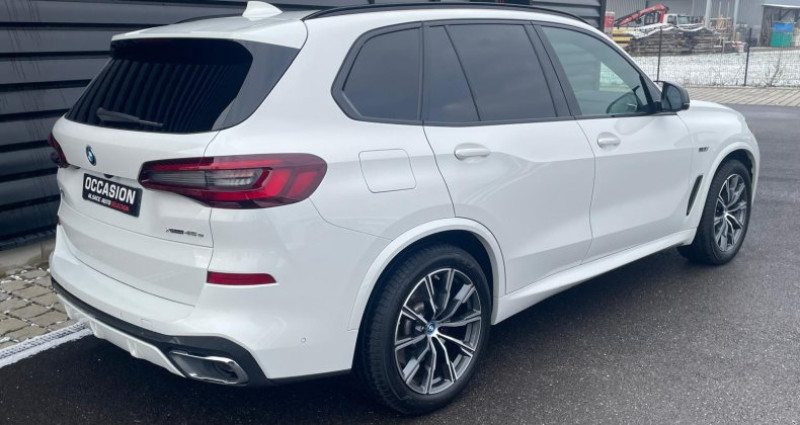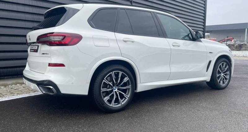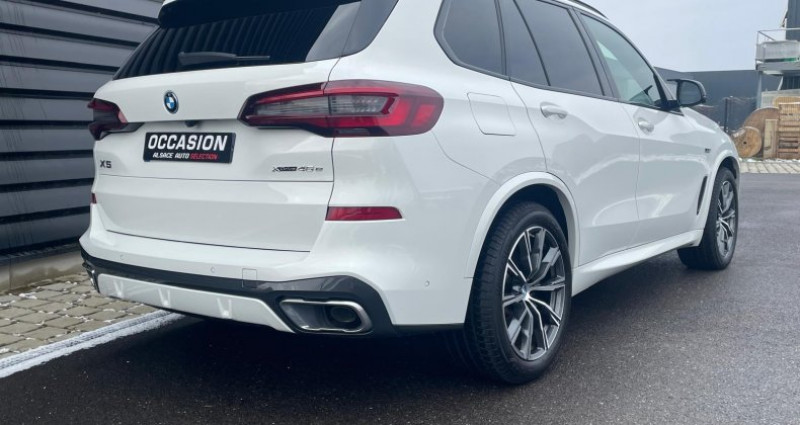 Alsace Auto Sélection vous propose cette BMW X5 en version hybride rechargeable Entretien à jour chez BMW 4 pneus neufs Marque : BMW Modèle : X5 G05 Kilométrage : 50 000 kms Carburant : Essence + Electrique Boite de vitesse : Automatique 8 Rapports Couleur extérieur : ALPIN WEISS - 300 Couleur Intérieure: Leder Vernasca Schwarz Naht Braun (MAH9) Puissance : 394 ch DIN ( 17 CV fiscaux ) Prix : 63 900€ TTC Extérieur et Chassis : Phares à allumage automatique Ampoules de phares LED Freins régénérateurs Feux arrières à LED Antibrouillards avant Différentiel à glissement limité avant Rétroviseurs extérieurs réglage électrique Feux de route à LED Feux clignotants à LED Feux de croisement à LED Rétroviseurs extérieurs chauffants Rétroviseurs rabattables électriquement Intérieur : Système audio écran tactile Bouton démarrage Fermerture électrique du coffre Air conditionné auto Système de navigation Bluetooth inclut musique en streaming Régulateur de vitesse Smart card / Smart key Volant alu & cuir Aide au stationnement arrière Ordinateur de bord Siège avant électrique Tapis de sol Ouverture du coffre à distance Taille écran navigation 12.3 pouces Accoudoir central arrière, avant Système de navigation info trafic Limiteur de vitesse Rétroviseur jour/nuit Volant multi-fonction Réseau Wifi Bluetooth Reconnaissance vocale 6 haut-parleurs Air conditionné 3 zones Réglage du volant en hauteur, électrique, en profondeur Taille écran multi-fonctions 12.3 pouces Sécurité : 8 airbags ESP Airbags rideaux Contrôle de freinage en courbe Système détection de collision Pneus roulage à plat Indicateur de sous-gonflage des pneus Assistance au freinage d'urgence Kit anticrevaison Essuie glace capteur de pluie Antipatinage ABS Avertisseur de franchissement de ligne Airbags latéraux Aide au démarrage en côte Alarme Options : Affichage tête haute HUD couleur Boîte de vitesses automatique Sport avec palettes au volant Clé intelligente BMW Display Key Feux de route anti-éblouissement Filet de séparation du coffre Freins Sport M rouges Pack M aérodynamique Jantes en alliage léger 20 style 740 M à rayons en étoile bicolores avec pneumatiques mixtes, RSC Suspension air comprimé Protection active des occupants Régulateur de vitesse actif ACC+ avec fonction Stop&Go Sellerie cuir Vernasca Shadow Line M brillant étendu Pack M aérodyna Sièges avant chauffants, éléctrique a mémoire Eclairage d'ambiance Système Hi-Fi BMW Live Cockpit Professional Vitres teintés ARR Toit ouvrant panoramique en verre