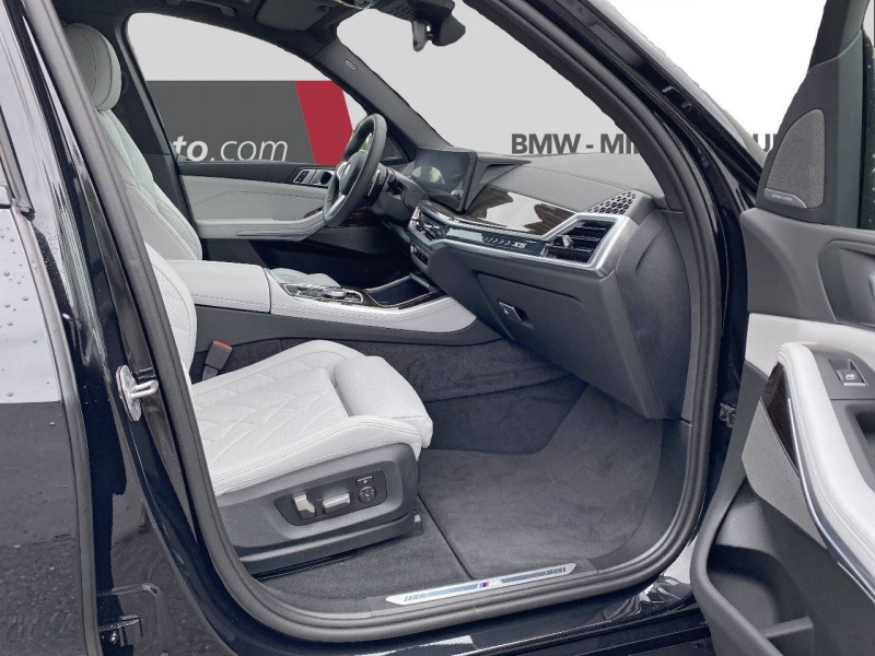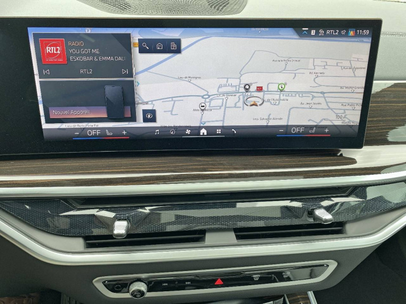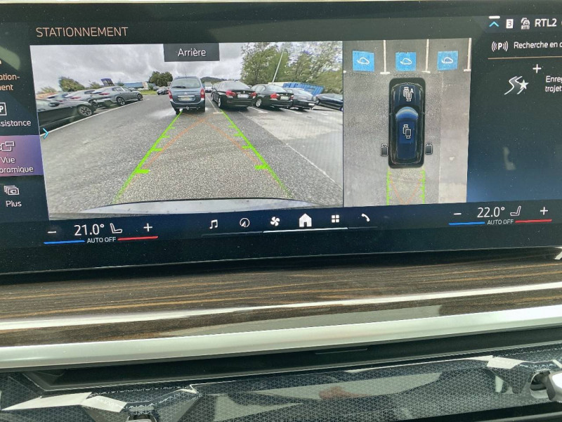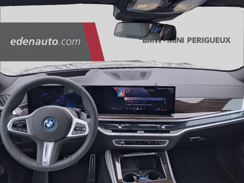 5 sièges / Accès Confort avec préparation "BMW Digital Key" / Accoudoir central AR avec 2 porte-boissons et compartiment de rangement intégrés / Accoudoir dans la console centrale et dans les portes AV et AR / Active Guard : avertisseur de collision AV avec fonction freinage ainsi que de collision avec protection active des piétons et des cyclistes / Airbags de tête pour la 1ère et la 2ème rangée / Airbags latéraux pour la 1ère et la 2ème rangée / Alarme antivol / Aluminium Line satiné / Appui lombaire ajustable / Appuis-tête pour tous les sièges / Attention Assist: Signale la perte de vigilance du conducteur / Aumonières au dos des sièges AV / Avertisseur sonore pour piétons / Baguette de seuil de porte avec l'inscription BMW AV et AR illuminées / BMW IconicSounds Electric / BMW Live Cockpit Navigation Plus / Boîte de vitesses automatique Sport Steptronic à 8 rapports avec fonction Hold et palettes de changement de vitesse au volant / Bouton de démarrage Start/Stop sans manipulation de la clé / Câble de recharge Professionnel Mode 3 (T2-T2) pour la recharge publique - 5 mètres / Clés radiocommandées à mémorisation automatique des réglages "Personal Profile" / Controller molette iDrive / Dalle de recharge par induction / Désignation de la motorisation sur le hayon à droite / Désignation du modèle sur le hayon à gauche / Détecteur de pluie et allumage automatique des projecteurs / Diffuseur AR en gris glacier / Direction à assistance électrique Servotronic / Eclairage au sol (Welcome Light Carpet) / Eclairage d'ambiance / Eclairage de jour / Ecrous de roues antivol / Fermeture du véhicule avec verrouillage centralisée / Feux de route anti-éblouissement et éclairage dans les virages / Filet de séparation du coffre / Fonction d'arrêt et de redémarrage automatique du moteur BMW Efficient Dynamics / Freins à disques ventilés AV/AR / Grille de calandre chromée en une seule pièce / Hayon ouvrant en deux parties avec commande électrique de la partie supérieure / Inserts décoratifs en bois précieux "Fineline Stripe" brun brillant / Insert sur le côté en chrome et noir brillant / Jantes en alliage 19" style 734 à rayons en V 9J x 19/pneus 265/50 R 19 / Kit rangement / Lève-vitres AV/AR électriques avec commande par impulsion et sécurité enfants / Ligne xLine / Limiteur et régulateur de vitesse avec maintien de la vitesse en descente / Mesure individuelle de pression des pneumatiques / Notice d'utilisation de la voiture intégrée et carnet d'entretien électronique avec BMW Service History / Pack Connected Pro / Park Assist / Personal eSim / Planche de bord en similicuir Sensatec / Portes boissons à l'AV (x2) / Prises 12 V : 1 x dans la console centrale AV, 1 x dans la console centrale AR, 1 x dans le coffre à bagages à droite / Protection active des occupants / Protection contre les impacts latéraux / Rails de toit Aluminium Line satiné / Rétroviseurs extérieurs rabattables électriquement, rétroviseurs intérieur et extérieur (côté conducteur) électrochromes / Sélecteur d'expériences de conduite My Modes / Sellerie Simili-Cuir Sensafin Schwarz / Services Après-vente connectés BMW Teleservices (durée de vie de la voiture) / Services ConnectedDrive (Apps véhicule 3 ans) / Sièges AV électriques à mémoires conducteur / Sortie d'echappement double (une de chaque côté) chromée / Soubassement AV et AR noir grainé / Suspensions pneumatiques AV et AR / Système Hi-Fi / Tapis de sol velours AV/AR / Technologie 4 roues motrices intelligente xDrive / Teinte de carrosserie unie / Trappe de recharge électrique coté conducteur et signal lumineux / Triangle de présignalisation avec kit de premiers secours / Tuner DAB / Vitres avec protection contre la chaleur et le soleil / Welcome Pack BMW avec carte BMW Charging
