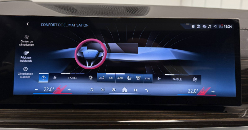 1 clé radiocommandée à mémorisation automatique des réglages "Personal Profile" / 1 Setup Card & 1 / 5 sièges / Accès Confort avec préparation "BMW Digital Key" / Accoudoir central AR avec 2 portes boissons et un compartiment de rangement / Accoudoir dans la console centrale et dans les portes AV et AR / Active Guard - Avertissement de franchissement de ligne avec impulsion sur la direction - Avertisseur de collision frontale avec intervention de freinage - Avertisseur de présence d'un véhicule lors d'un changement de direction vers la gauche avec action sur les freins - Avertisseur d'intersection - Avertisseur présence piéton/cycliste lors d'un virage en intersection - Assistance d'évitement en cas de risque de collision frontale / Airbags de tête pour la 1ère et la 2ème rangée / Airbags latéraux pour la 1ère et la 2ème rangée / Alarme antivol / Aluminium Line satiné / Appel d'Urgence Intelligent (durée de vie de la voiture) / Appui lombaire ajustable / Appuis-tête pour tous les sièges / Attention Assist: Signale la perte de vigilance du conducteur / Aumonières au dos des sièges AV / Avertisseur sonore pour piétons / Baguette de seuil de porte avec l'inscription BMW AV et AR illuminées / BMW IconicSounds Electric / BMW Live Cockpit Navigation Plus / Boîte de vitesses automatique Sport avec palettes au volant / Bouton de démarrage Start/Stop sans manipulation de la clé / Câble de recharge Professionnel Mode 3 (T2-T2) pour la recharge publique - 5 mètres / Chargeur rapide AC Plus 11kW / Ciel de pavillon M anthracite / Controller molette iDrive / Dalle de recharge par induction / Désignation de la motorisation sur le hayon à droite / Désignation du modèle sur le hayon à gauche / Détecteur de pluie et allumage automatique des projecteurs / Diffuseur AR en gris glacier / Direction à assistance électrique Servotronic / Drive Assistant / Eclairage au sol (Welcome Light Carpet) / Eclairage d'ambiance / Eclairage de jour / Ecrous de roues antivol / Fermeture du véhicule avec verrouillage centralisée / Feux de route anti-éblouissement et éclairage dans les virages / Filet de séparation du coffre / Fonctionnalité Plug&Charge / Freins à disques ventilés AV/AR / Grille de calandre chromée en une seule pièce / Hayon ouvrant en deux parties avec commande électrique de la partie supérieure / Inserts décoratifs en bois précieux "Fineline Stripe" brun brillant / Insert sur le côté en chrome et noir brillant / Jantes en alliage 20" style 740 M avec pneus mixtes / RSC 9 J x 20 / pneus 275/45 R 20 10,5 J x 20 / pneus 305/40 R 20 / Kit de mobilité BMW / Kit rangement - boîte à gants - bac de rangement dans les portes AV et AR (une bouteille de 1L peut y prendre place) - rangement avec couvercle dans la console centrale - rangement devant les portes boissonss / Lève-vitres AV/AR électriques avec commande par impulsion et sécurité enfants / Limiteur et régulateur de vitesse avec maintien de la vitesse en descente / Mesure individuelle de pression des pneumatiques / Normes GSR2 (General Safety Regulation) / Notice d'utilisation de la voiture intégrée et carnet d'entretien électronique avec BMW Service History / Pack aérodynamique M / Pack Connected Professional Fonctions "Ma BMW à distance" (durée indéfinie) Remote 3D View (Vue 3D à distance) (3 ans) In-Car Experiences (3 ans) Connected Navigation (3 ans) Information Trafic en Temps Réel (RTTI) (3 ans) Divertissement à bord (offert pendant 1 an puis disponible dans le BMW ConnectedDrive Store) Youtube (durée indéterminée) Smartphone intégration (durée illimitée) Connected Music (3 ans) Amazon Alexa (3 ans) Services eDrive (3 ans) / Parking Assistant / Personal eSim / Planche de bord en similicuir Sensatec / Portes boissons à l'AV (x2) / Prises 12 V : 1 x dans la console centrale AV, 1 x dans la console centrale AR, 1 x dans le coffre à bagages à droite / Projecteurs Advanced Full LED Comprend les fonctionnalités: Eclairage adaptatif, Feux de route anti-éblouissement permanents BMW Selective Beam. Intensité proche de la lumière du jour pour un éclairage clair et harmonieux. Éléments de design bleu / Protection active des occupants / Protection contre les impacts latéraux / Rails de toit Aluminium Line satiné / Rétroviseurs extérieurs rabattables électriquement, rétroviseurs intérieur et extérieur (côté conducteur) électrochromes / Sélecteur d'expériences de conduite My Modes / Sellerie Simili-Cuir Sensafin Schwarz / Services Après-vente connectés BMW Teleservices (durée de vie de la voiture) / Services ConnectedDrive (Apps véhicule 3 ans) / Shadow Line M brillant / Sièges AV électriques à mémoires conducteur / Sortie d'echappement double (une de chaque côté) chromée / Soubassement AV et AR noir grainé / Suspensions pneumatiques AV et AR / Système de récuperation de l'énergie au freinage / Système Hi-Fi / Tapis de sol velours AV/AR / Technologie 4 roues motrices intelligente xDrive / Teinte de carrosserie unie / Trappe de recharge électrique coté conducteur et signal lumineux de l'état de charge / Triangle de présignalisation avec kit de premiers secours / Tuner DAB / Vitres avec protection contre la chaleur et le soleil